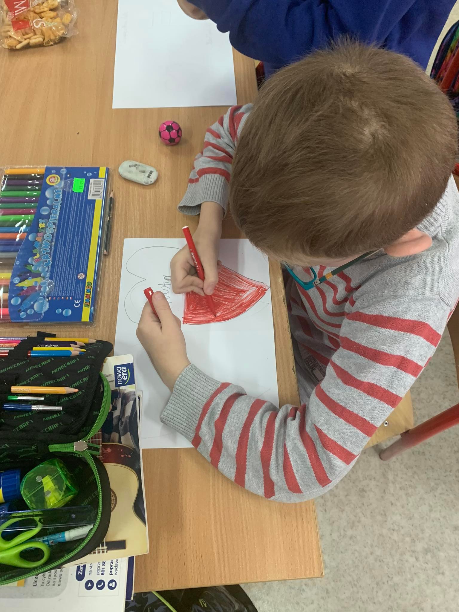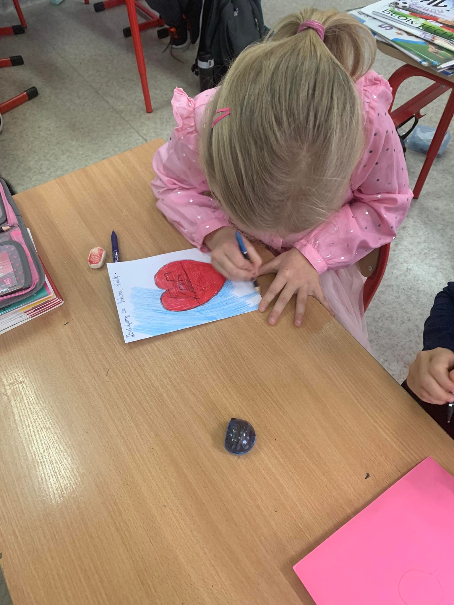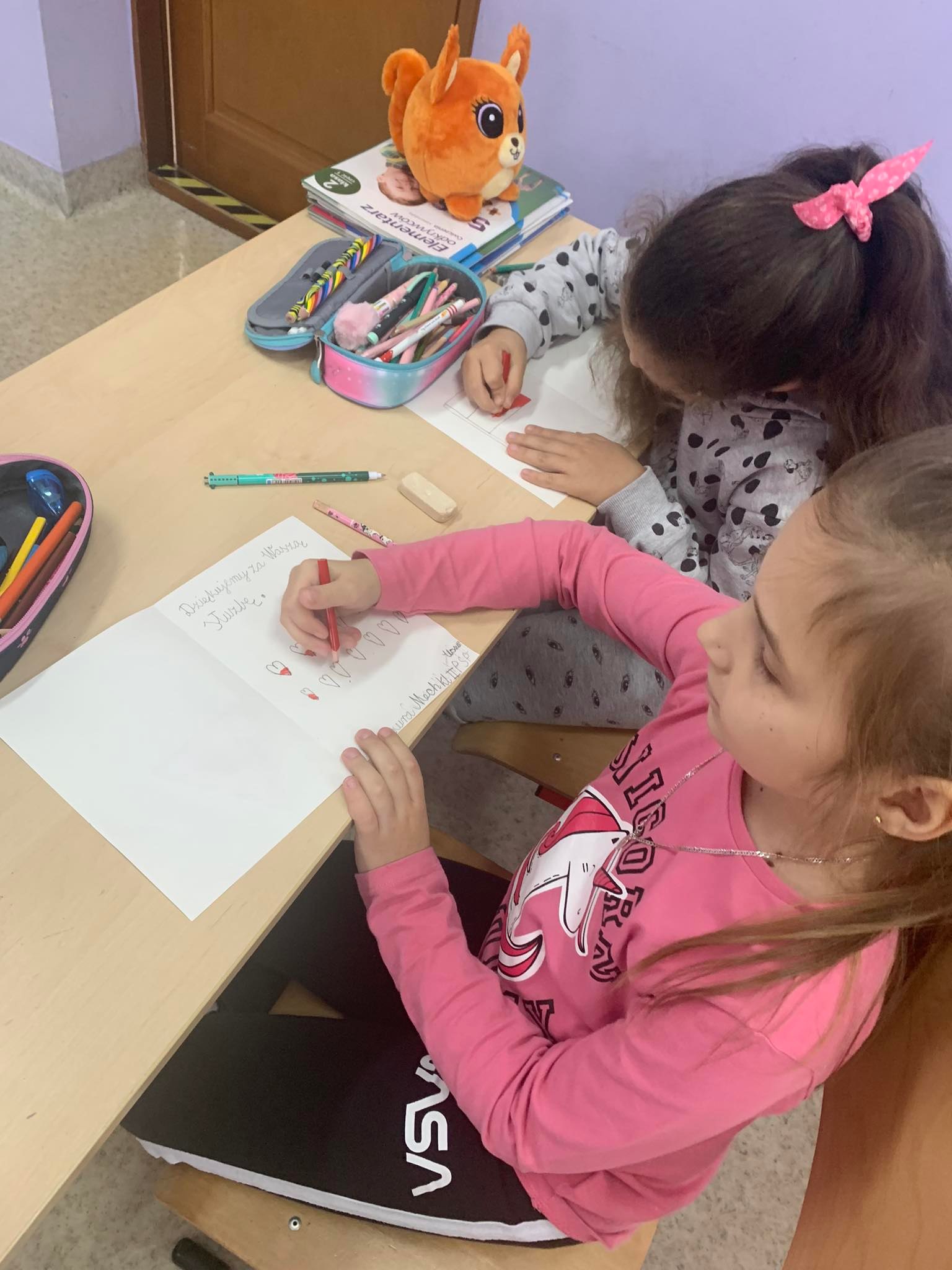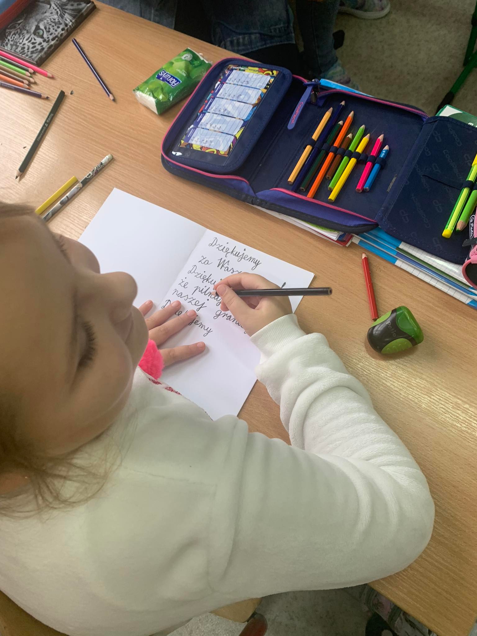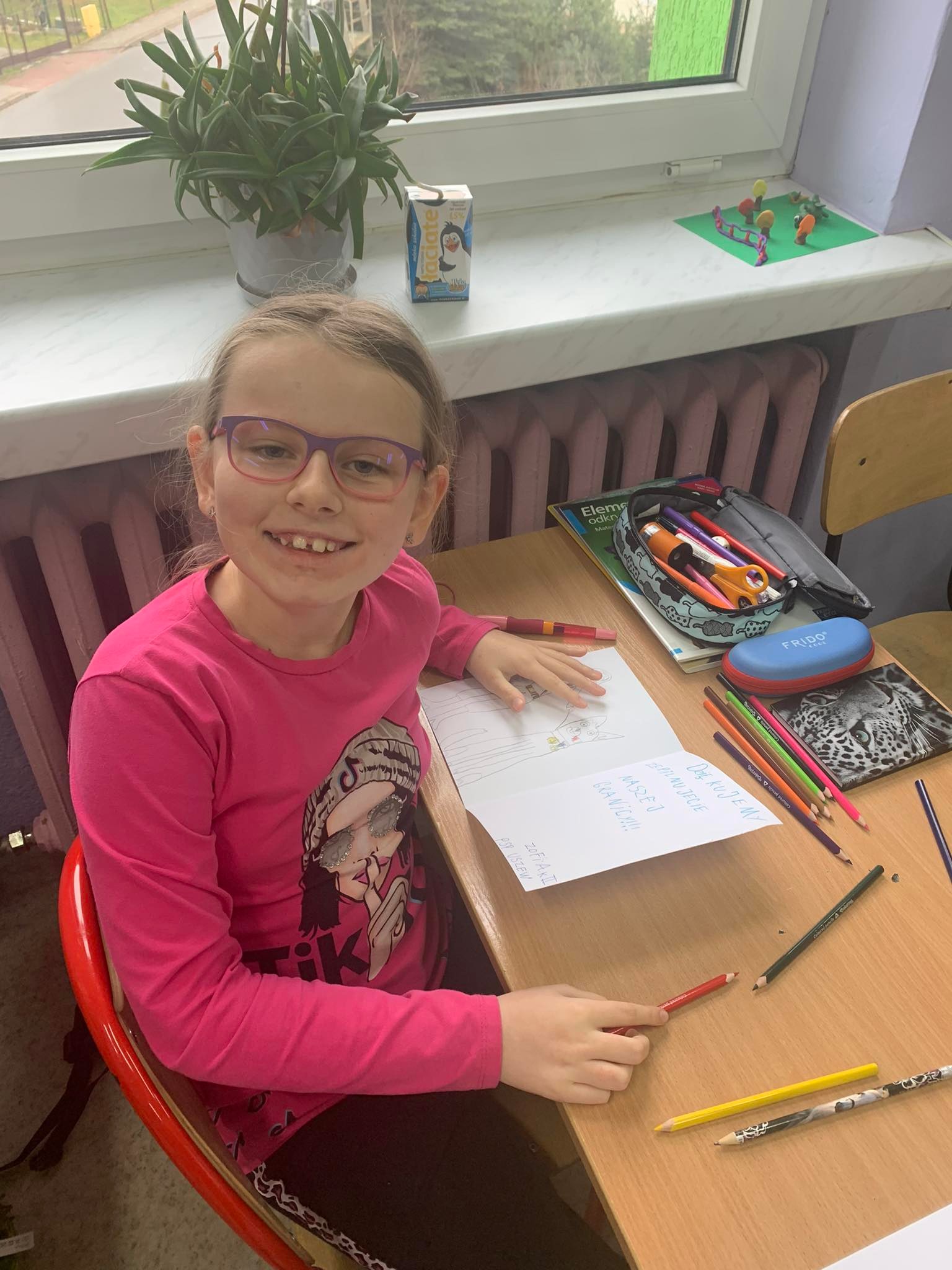 Młodsi uczniowie naszej szkoły bardzo chętnie i z wielkim zapałem włączyli się do tej szczytnej akcji poprzez własnoręczne wykonanie laurek z wyrazami wsparcia, wdzięczności i podziękowania służbom mundurowym. Stworzyli piękne prace, które trafią do polskich służb broniących wschodniej granicy.