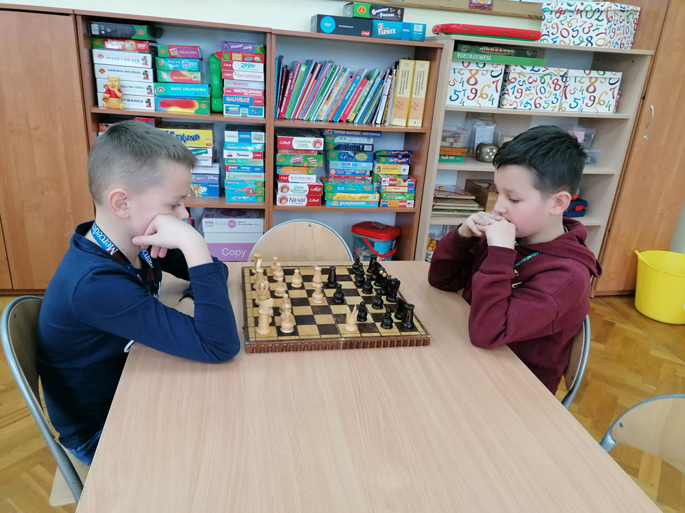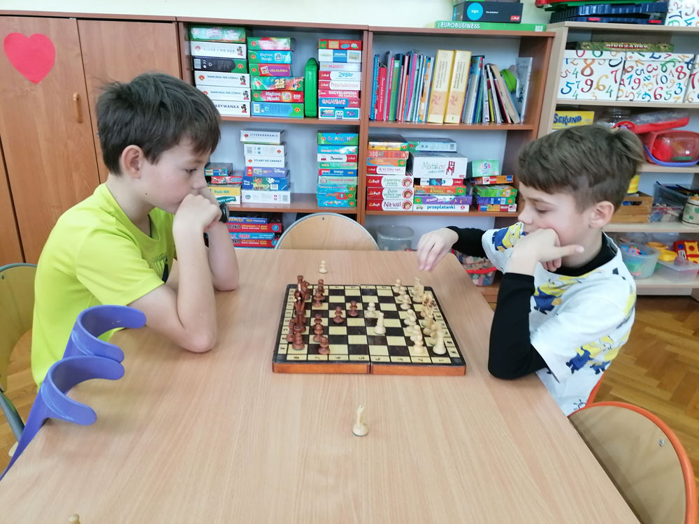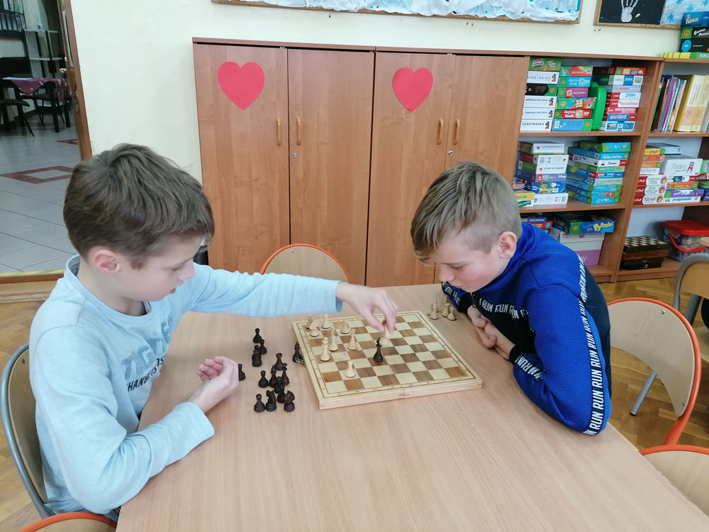 Pasjonaci królewskiej gry z klas I-IV mieli okazję zaprezentować swoje umiejętności i wziąć udział w Szkolnym Turnieju, do którego zgłosiło się 21 miłośników szachów. Większość to jeszcze początkujący gracze, którzy będą dopiero rozwijać swój talent.