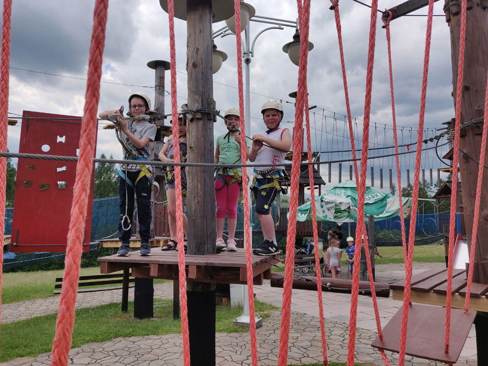 Następnie udaliśmy się do rodzinnego parku rozrywki „Spiska Kraina”. Tutaj czekała na dzieci wielogodzinna zabawa. Mogły korzystać z parku linowego oraz dmuchanych zjeżdżalni w kształcie zamków. Podziwialiśmy również Park Miniatur, w którym znajduje się ponad dwadzieścia replik największych sanktuariów maryjnych na świecie i obejrzeliśmy krótki film 7D.