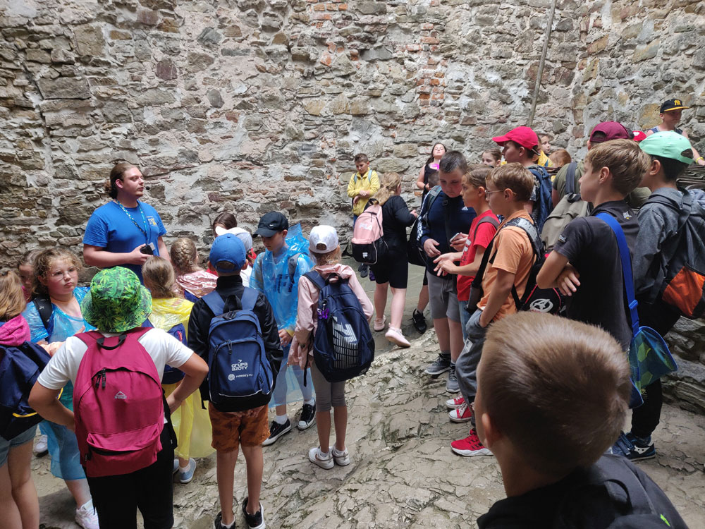 Ostatnim punktem wycieczki było zwiedzenie zamku w Niedzicy. Pan przewodnik opowiedział nam wiele ciekawostek związanych z tym miejscem i znajdującymi się tam eksponatami. We wszystkich zakamarkach wypatrywaliśmy choćby malutkiego ducha, ale niestety żaden nam się nie ukazał - widocznie była zbyt wczesna pora… Dzieci obejrzały również wnętrza zamkowe oraz wozownię. Na koniec kupiliśmy pamiątki i oscypki. Uczniowie ocenili, że wycieczka była wspaniała.