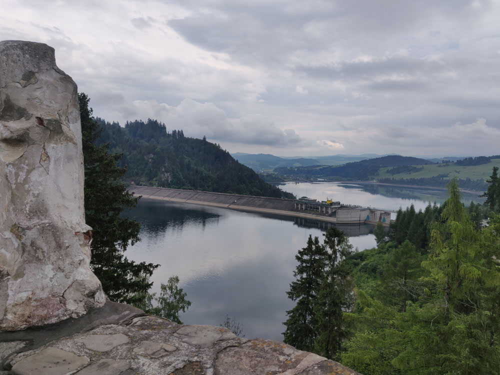 Na początku wyprawy poszliśmy na spacer nad zaporę i dotarliśmy do punktu widokowego, z którego podziwialiśmy ruiny zamku oraz niesamowite widoki. Oczywiście nie mogło zabraknąć pamiątkowego, panoramicznego zdjęcia.