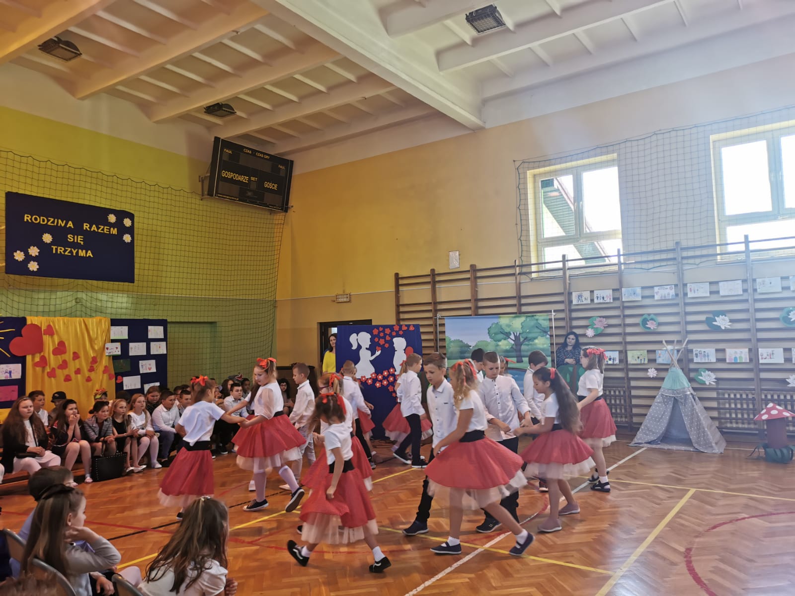 Dla dziecka, zwłaszcza małego, rodzina jest całym światem. Nie ma nic ważniejszego poza najbliższymi. W codziennym pędzie często zapominamy o tym, jak ważna jest rodzina. Lekceważymy z pozoru błahe czynności i wspólnie spędzony czas, a przecież jest to kluczowe dla pielęgnowania rodzinnych więzi. Dzień Rodziny ma więc przypomnieć, że powinniśmy zadbać o budowanie relacji z bliskimi. Uczniowie klas I-III przygotowali uroczystość, na którą zaprosili swoich rodziców, aby wspólnie spędzić ten szczególny czas. Nie zabrakło życzeń, wierszy i piosenek zaprezentowanych przez naszych pierwszaków. Wszystkie wyrażały jedno – wielką miłość dzieci do mamy i taty, co sprawiło, że w oku niejednego rodzica pojawiła się łza wzruszenia. Klasy trzecie z kolei przedstawiły wesołą bajkę, której bohaterem był Czerwony Kapturek, zły wilk, babcia i dzielny myśliwy. Nie zabrakło również ulubionego przez niektórych rodziców programu "Sprawa dla reportera". W humorystycznym skeczu Elżbieta Jaworowicz zajmowała się strajkiem matek, które domagały się wolnego od obowiązków dnia oraz castingiem na najlepszego tatę. Natomiast uczniowie klasy drugiej zaprezentowali swoje umiejętności taneczne. Przed rodzicami wystąpili również laureaci przeglądu piosenki dziecięcej w Brzesku, którzy zaśpiewali nagrodzone utwory. Na koniec życzenia rodzicom złożyła pani wicedyrektor Lukrecja Chochlińska, a dzieci odśpiewały sto lat, po czym wręczyły własnoręcznie wykonane upominki.