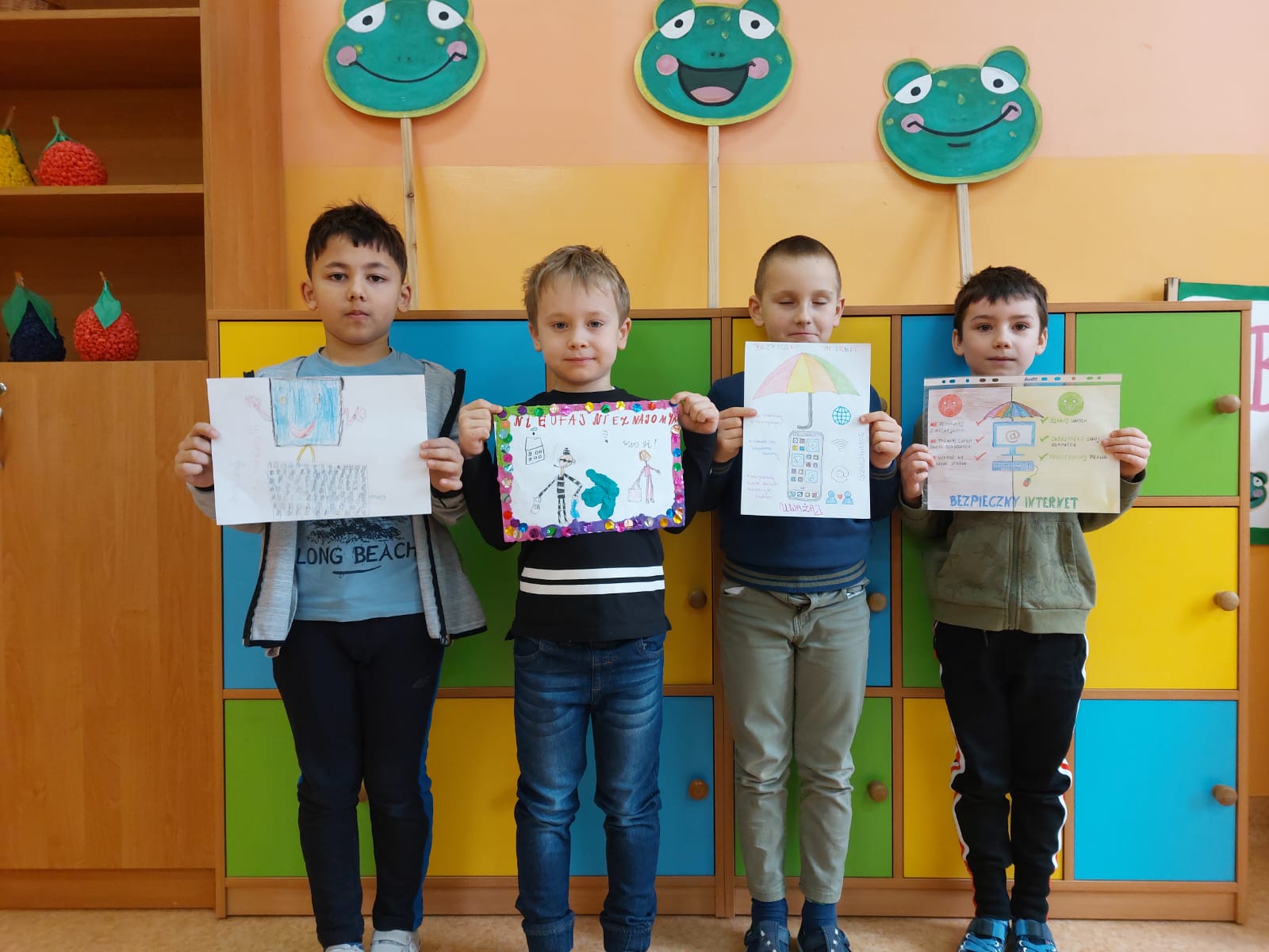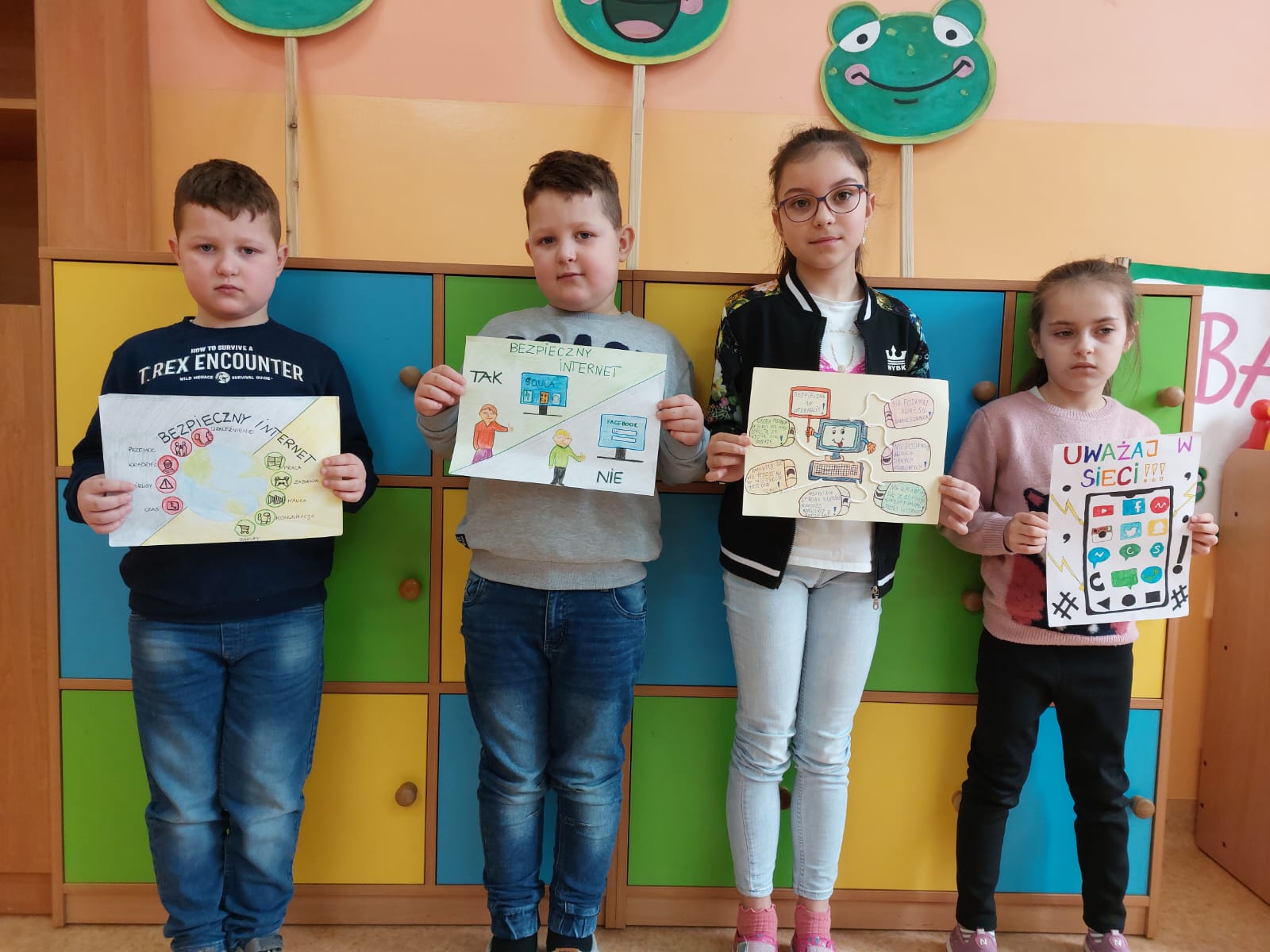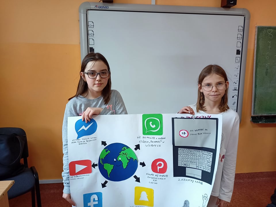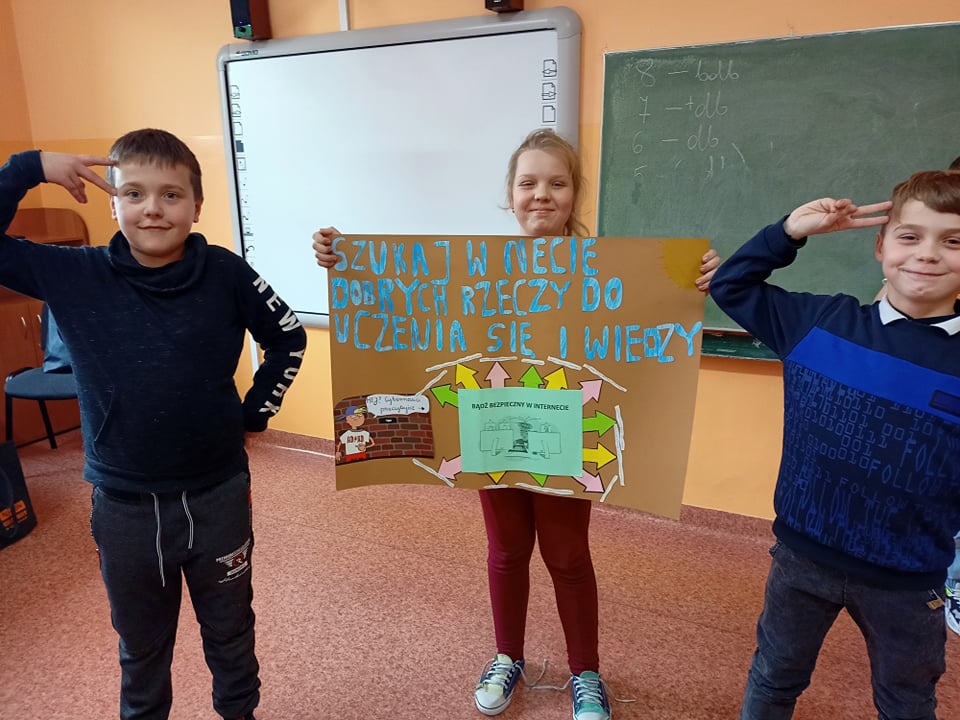 Uczniowie wszystkich klas chętnie włączyli się w tę akcję. Powstało wiele prac, w których uchwycili najważniejsze zasady bezpiecznego korzystania z Internetu. Uczniowie klas I-IV wykonali plakaty w tradycyjnej formie. Uczniowie klas IV–VIII wzięli udział w informatycznym konkursie związanym z bezpieczeństwem w sieci. Najciekawsze prace zostaną nagrodzone i opublikowane na stronie naszej szkoły.