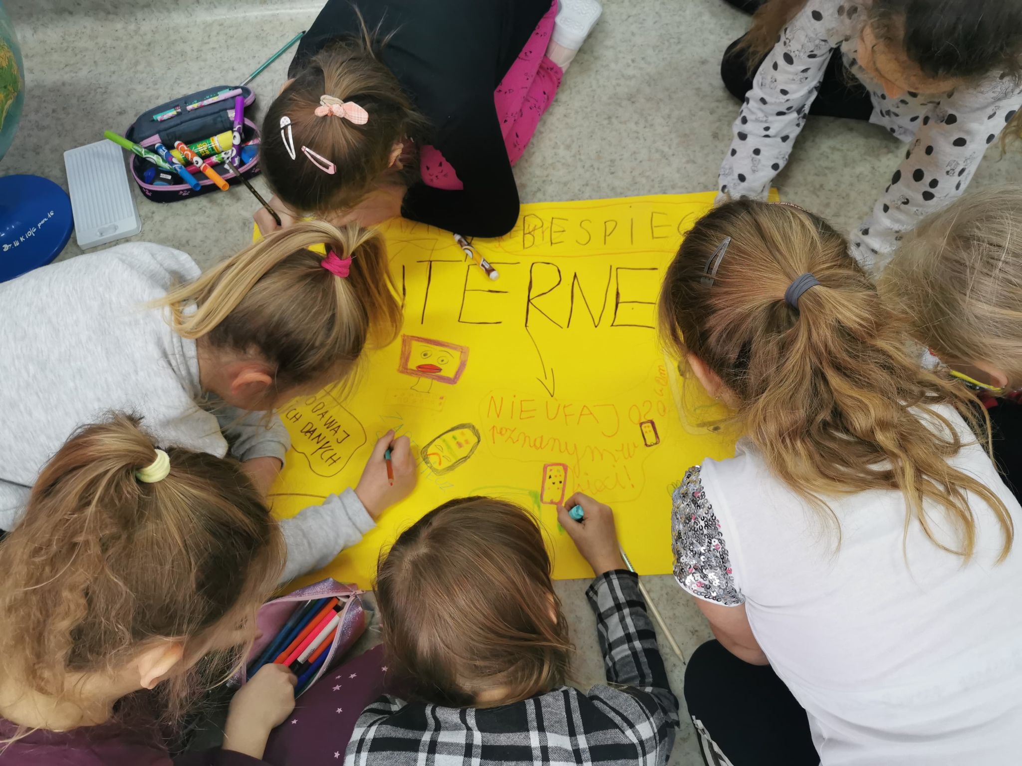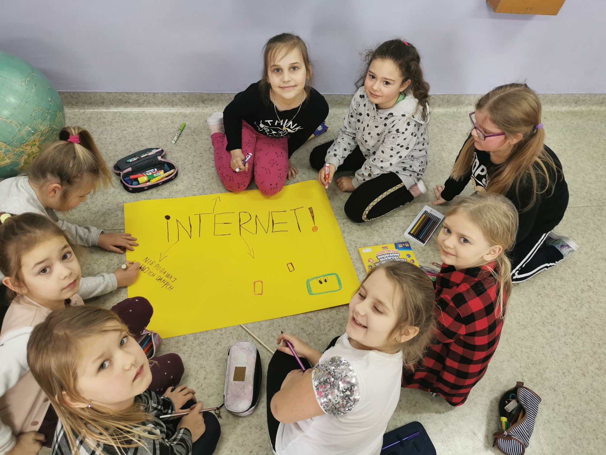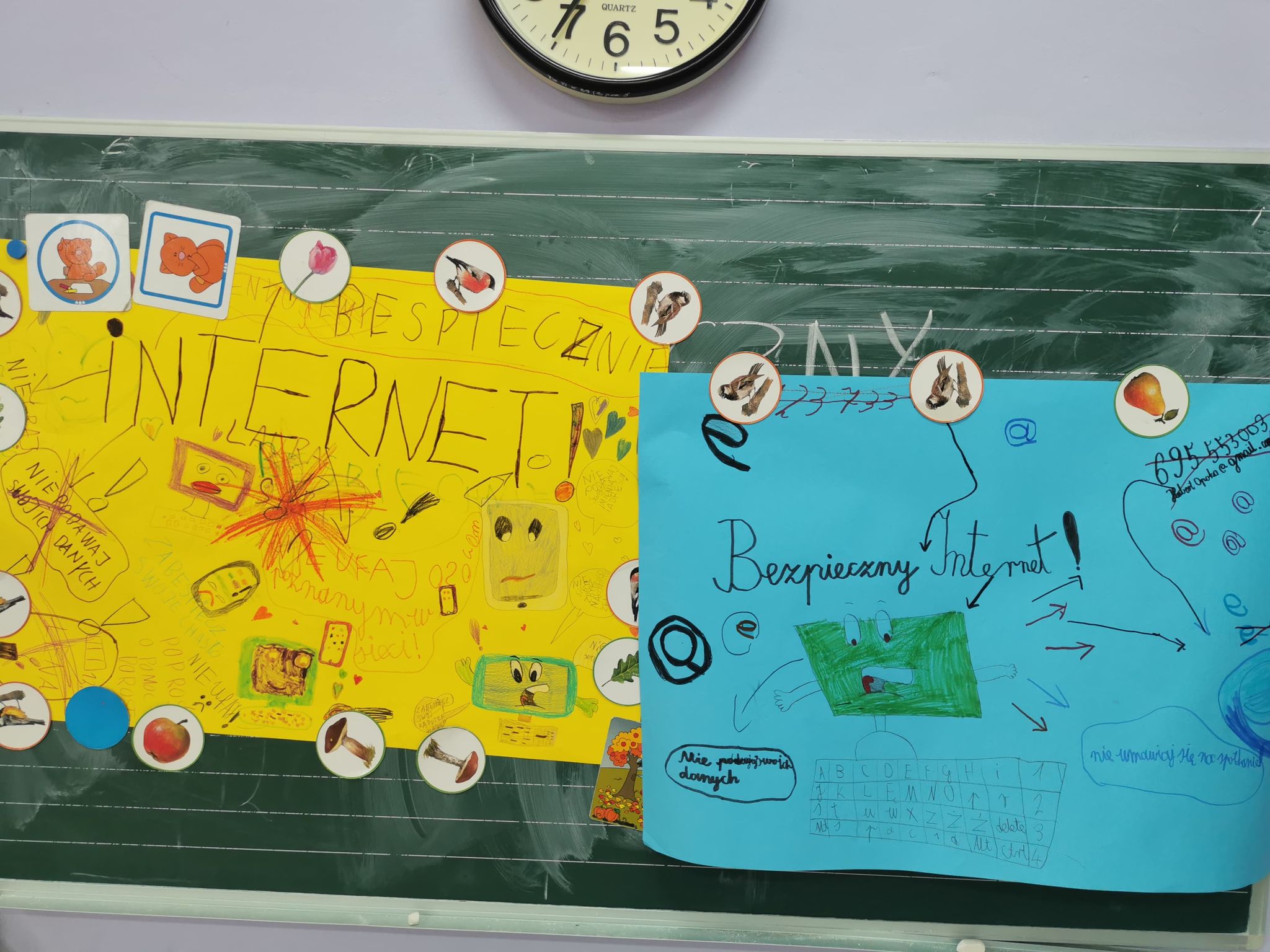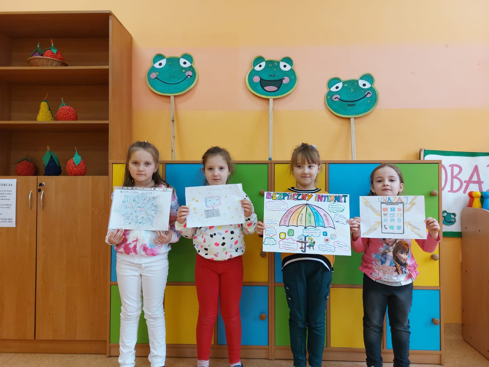 Uczniowie wszystkich klas chętnie włączyli się w tę akcję. Powstało wiele prac, w których uchwycili najważniejsze zasady bezpiecznego korzystania z Internetu. Uczniowie klas I-IV wykonali plakaty w tradycyjnej formie. Uczniowie klas IV–VIII wzięli udział w informatycznym konkursie związanym z bezpieczeństwem w sieci. Najciekawsze prace zostaną nagrodzone i opublikowane na stronie naszej szkoły.