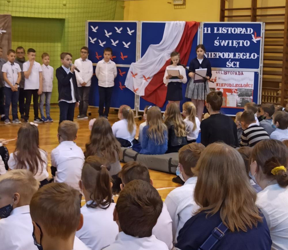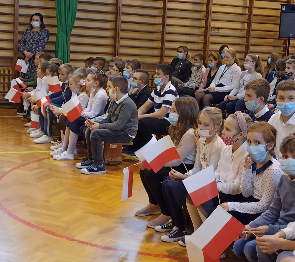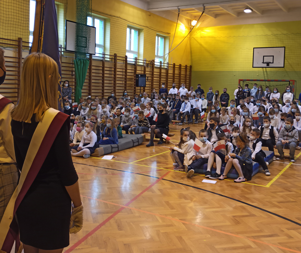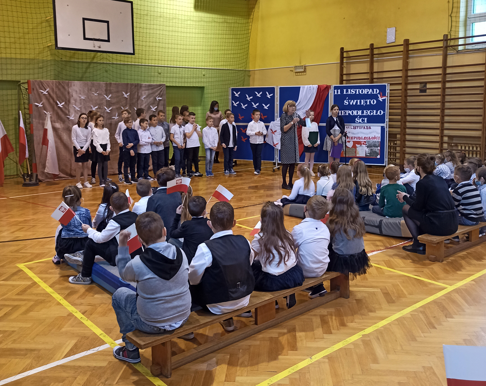 Dnia 9 listopada w naszej szkole odbyła się uroczysta akademia upamiętniająca odzyskanie niepodległości przez Polskę. W tym roku obchodzimy 103 rocznicę tego wydarzenia uznawanego za najważniejsze w naszej historii. Uczniowie klasy IV zaprezentowali montaż słowno-muzyczny, który przybliżył dzieje narodu polskiego doświadczonego przez rozbiory, naznaczonego krwią i cierpieniem walczących o suwerenność naszej ojczyzny. Patriotyczne pieśni oraz wiersze wprowadziły nas w atmosferę Narodowego Święta Niepodległości, które będziemy obchodzić 11 listopada.