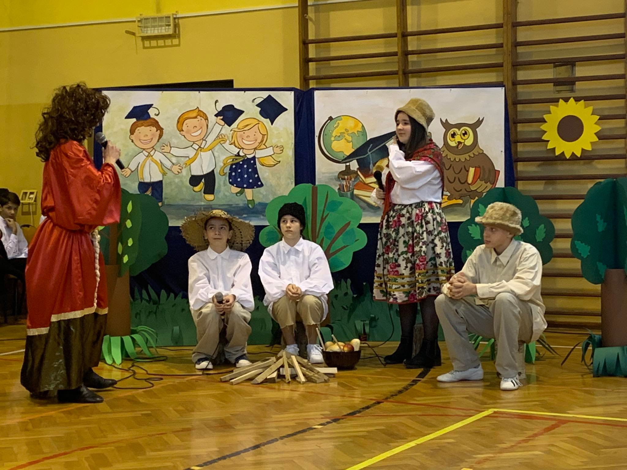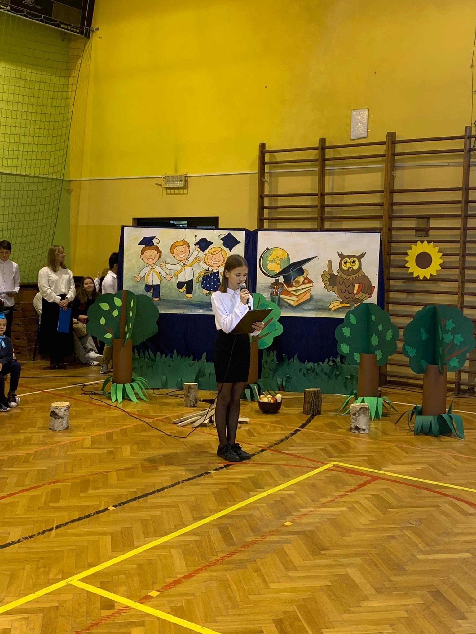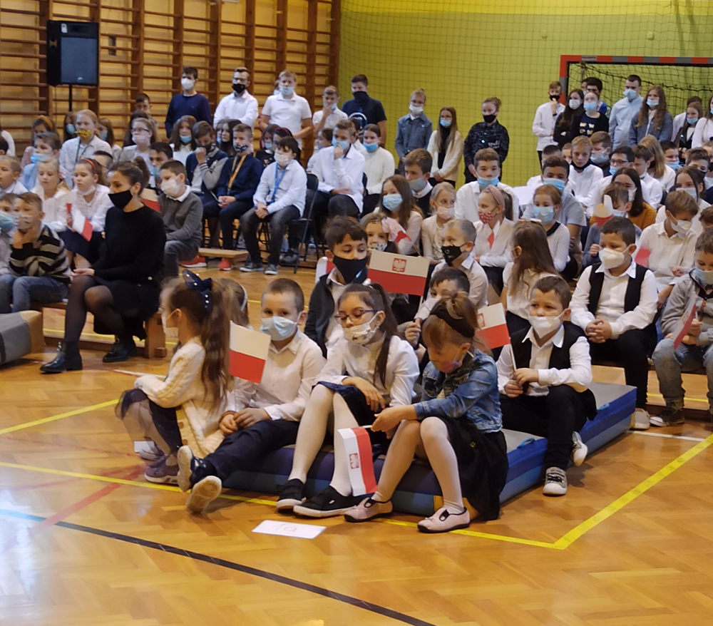 Dnia 9 listopada w naszej szkole odbyła się uroczysta akademia upamiętniająca odzyskanie niepodległości przez Polskę. W tym roku obchodzimy 103 rocznicę tego wydarzenia uznawanego za najważniejsze w naszej historii. Uczniowie klasy IV zaprezentowali montaż słowno-muzyczny, który przybliżył dzieje narodu polskiego doświadczonego przez rozbiory, naznaczonego krwią i cierpieniem walczących o suwerenność naszej ojczyzny. Patriotyczne pieśni oraz wiersze wprowadziły nas w atmosferę Narodowego Święta Niepodległości, które będziemy obchodzić 11 listopada.