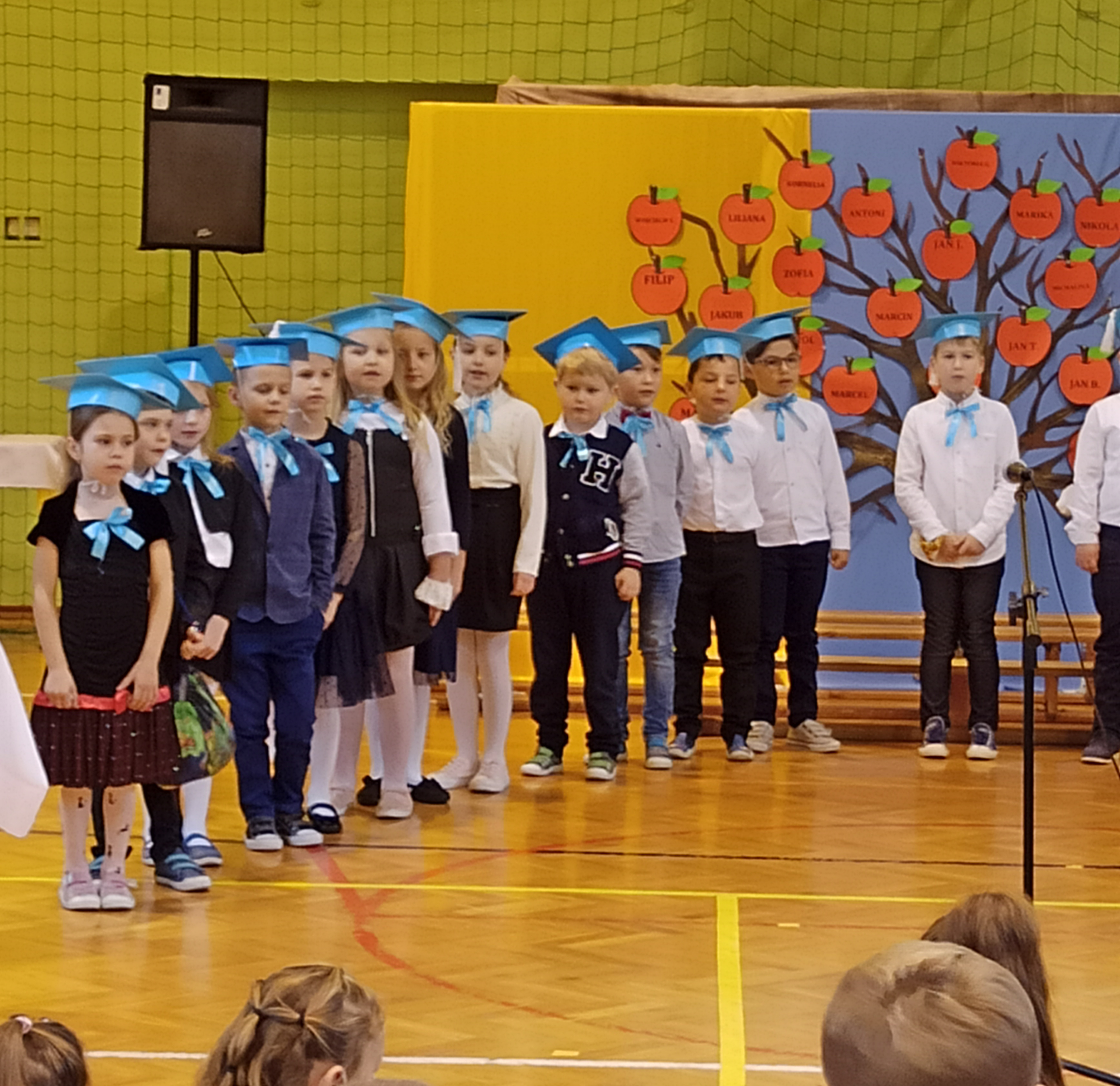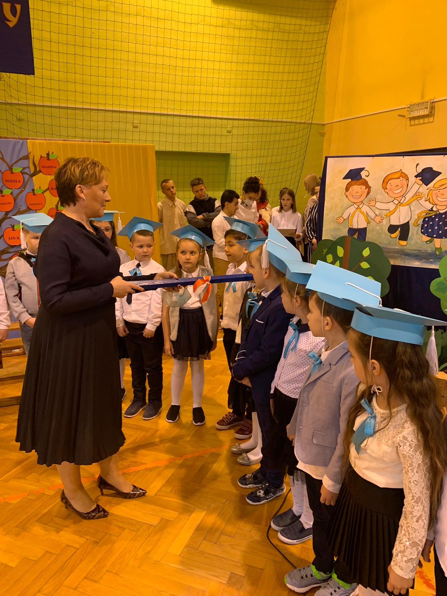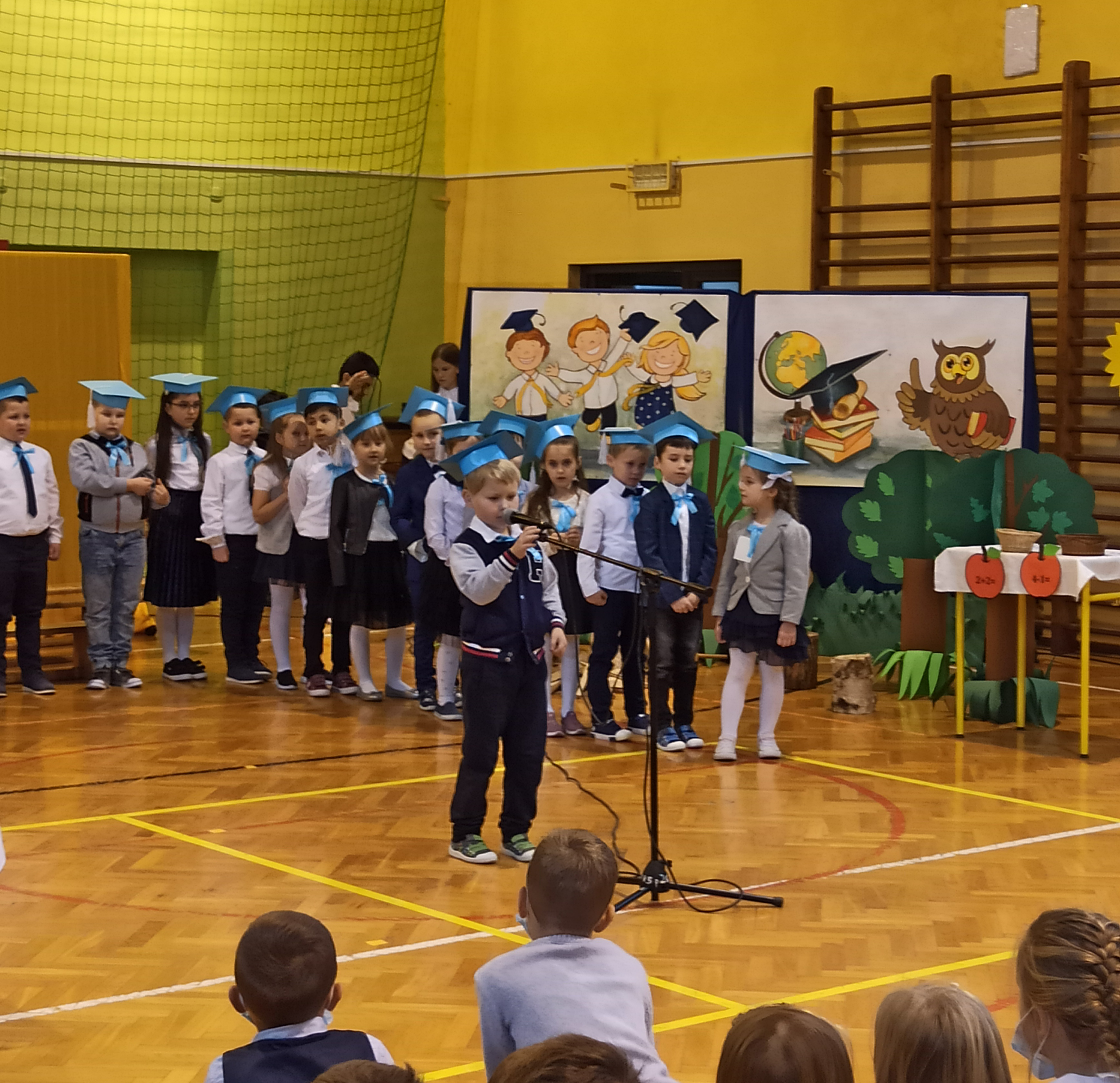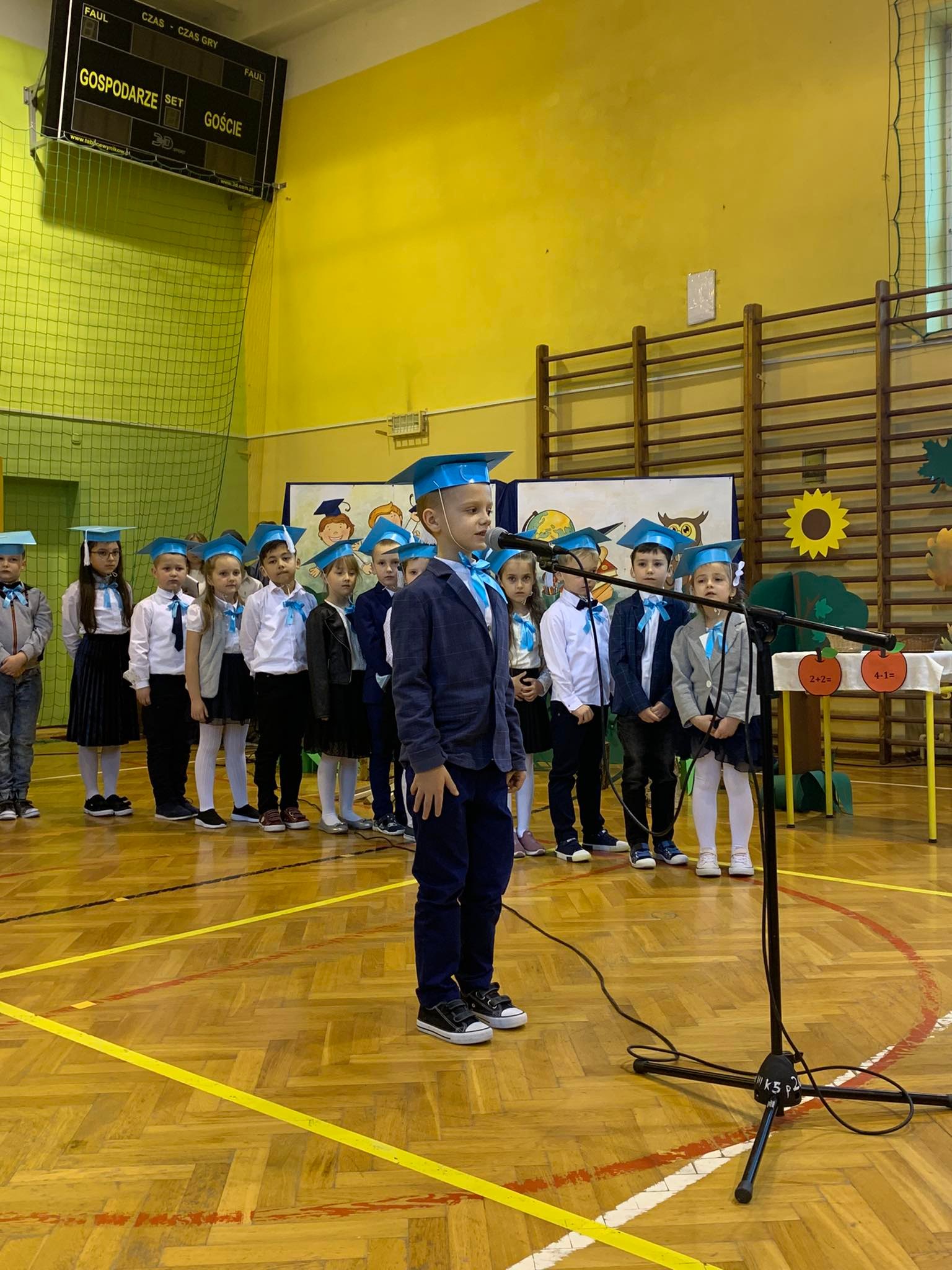 16 listopada obchodziliśmy Święto Szkoły połączone z uroczystym ślubowaniem uczniów klas I, którzy przygotowywali się do tej uroczystości od początku roku szkolnego. Uczyli się tekstów, wierszy, piosenek, wytrwale ćwiczyli występ podczas prób. Uroczystość, w której uczestniczyła cała społeczność szkolna, rozpoczął występ uczniów klasy VIII a. Przedstawili oni inscenizację legendy o powstaniu szkoły w Uszwi, w której pojawiła się postać naszego patrona – króla Władysława Jagiełły. Następnie zaprezentowali się pierwszoklasiści ubrani w tym dniu w odświętne, okolicznościowe stroje. Udowodnili, że wiedzą, jak zachowywać się w szkole, znają zasady ruchu drogowego, umieją tańczyć, śpiewać i liczyć. Podczas występu dzieci wykazały się nie tylko wiedzą i umiejętnościami, ale także pokazały swoje talenty, za co publiczność nagrodziła ich gromkimi brawami. Po części artystycznej nastąpił uroczysty moment ślubowania. W niezwykle podniosłej atmosferze uczniowie klas pierwszych na sztandar szkoły ślubowali być pilnymi, wzorowymi uczniami, należycie wypełniać obowiązki ucznia, pomagać słabszym i młodszym od siebie. Kolejnym punktem uroczystości było pasowanie na ucznia, którego dokonała pani wicedyrektor Lukrecja Chochlińska. Pierwszoklasiści otrzymali także drobne upominki od szkoły i swoich rodziców. Po zakończeniu uroczystości uczniowie wszystkich klas udali się na poczęstunek przygotowany przez Radę Rodziców oraz spotkali się z wychowawcami.