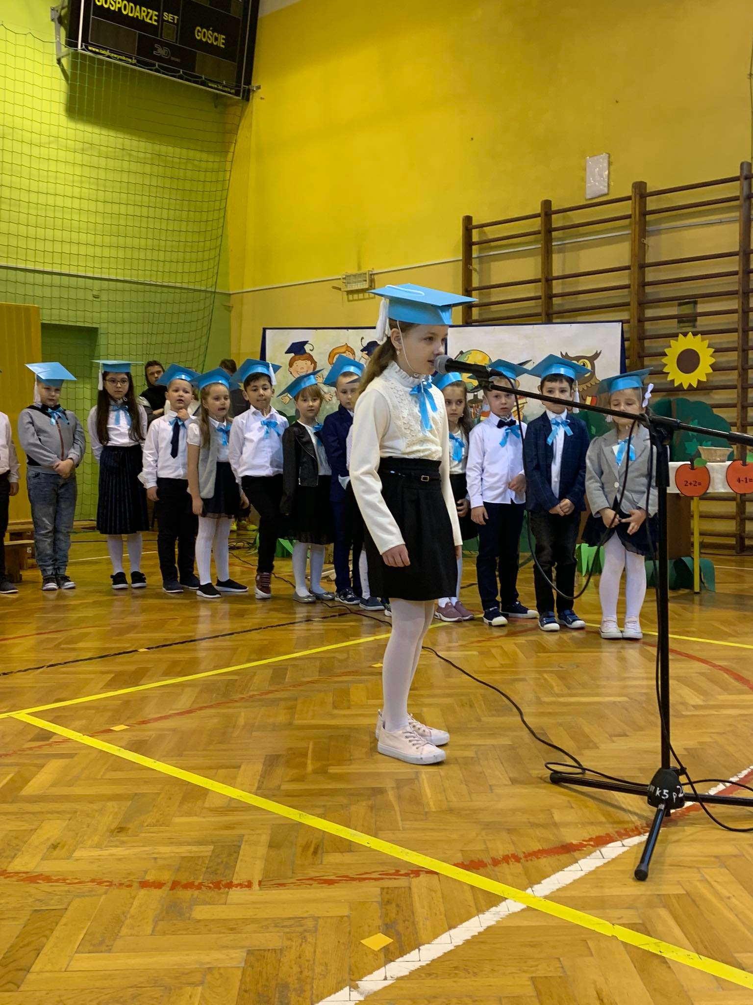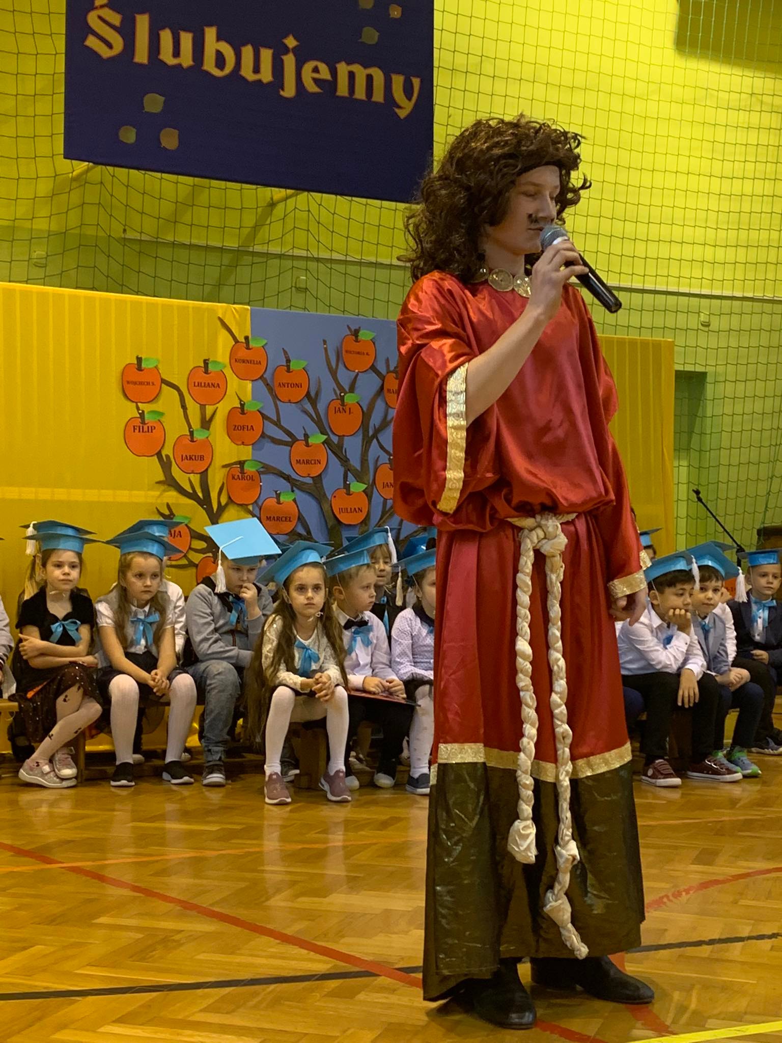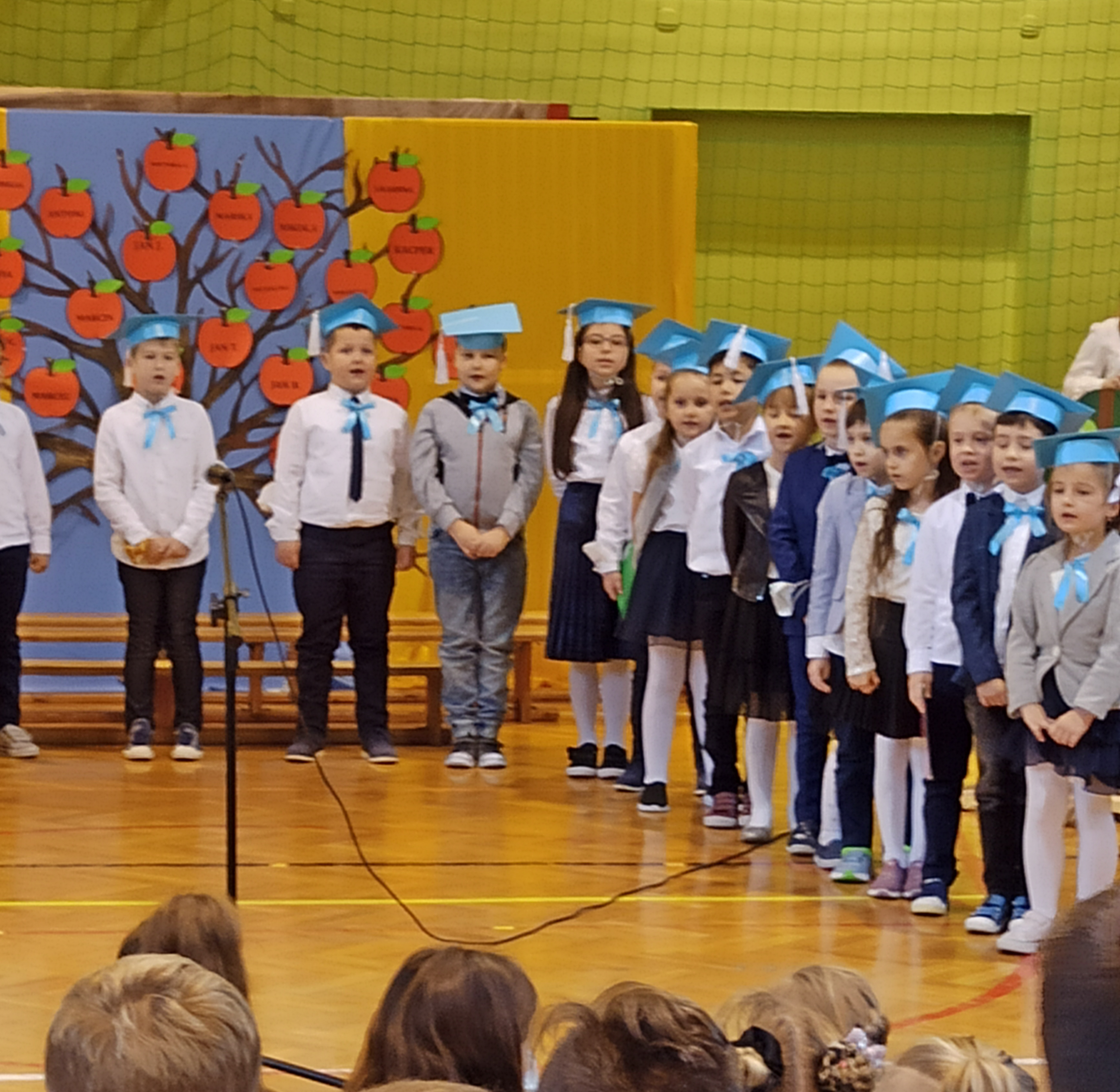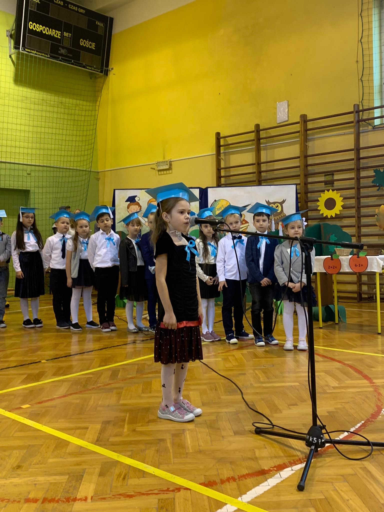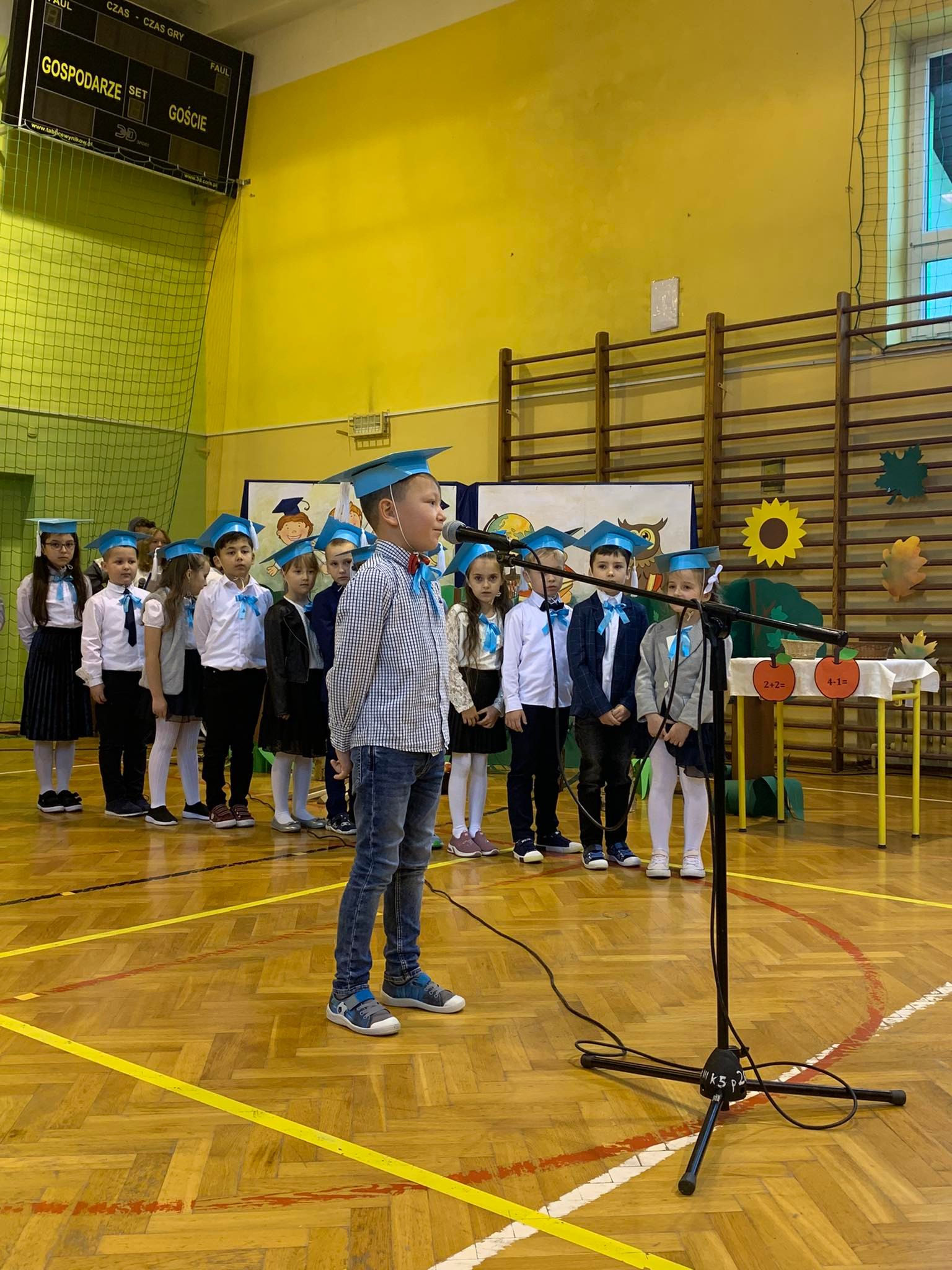 16 listopada obchodziliśmy Święto Szkoły połączone z uroczystym ślubowaniem uczniów klas I, którzy przygotowywali się do tej uroczystości od początku roku szkolnego. Uczyli się tekstów, wierszy, piosenek, wytrwale ćwiczyli występ podczas prób. Uroczystość, w której uczestniczyła cała społeczność szkolna, rozpoczął występ uczniów klasy VIII a. Przedstawili oni inscenizację legendy o powstaniu szkoły w Uszwi, w której pojawiła się postać naszego patrona – króla Władysława Jagiełły. Następnie zaprezentowali się pierwszoklasiści ubrani w tym dniu w odświętne, okolicznościowe stroje. Udowodnili, że wiedzą, jak zachowywać się w szkole, znają zasady ruchu drogowego, umieją tańczyć, śpiewać i liczyć. Podczas występu dzieci wykazały się nie tylko wiedzą i umiejętnościami, ale także pokazały swoje talenty, za co publiczność nagrodziła ich gromkimi brawami. Po części artystycznej nastąpił uroczysty moment ślubowania. W niezwykle podniosłej atmosferze uczniowie klas pierwszych na sztandar szkoły ślubowali być pilnymi, wzorowymi uczniami, należycie wypełniać obowiązki ucznia, pomagać słabszym i młodszym od siebie. Kolejnym punktem uroczystości było pasowanie na ucznia, którego dokonała pani wicedyrektor Lukrecja Chochlińska. Pierwszoklasiści otrzymali także drobne upominki od szkoły i swoich rodziców. Po zakończeniu uroczystości uczniowie wszystkich klas udali się na poczęstunek przygotowany przez Radę Rodziców oraz spotkali się z wychowawcami.