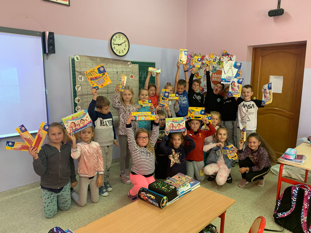 Po zrealizowaniu pierwszego modułu dzieci otrzymały w nagrodę zestawy plastyczne: kredki, farby, kubki, bloki, plastelinę, farby do malowania palcami.