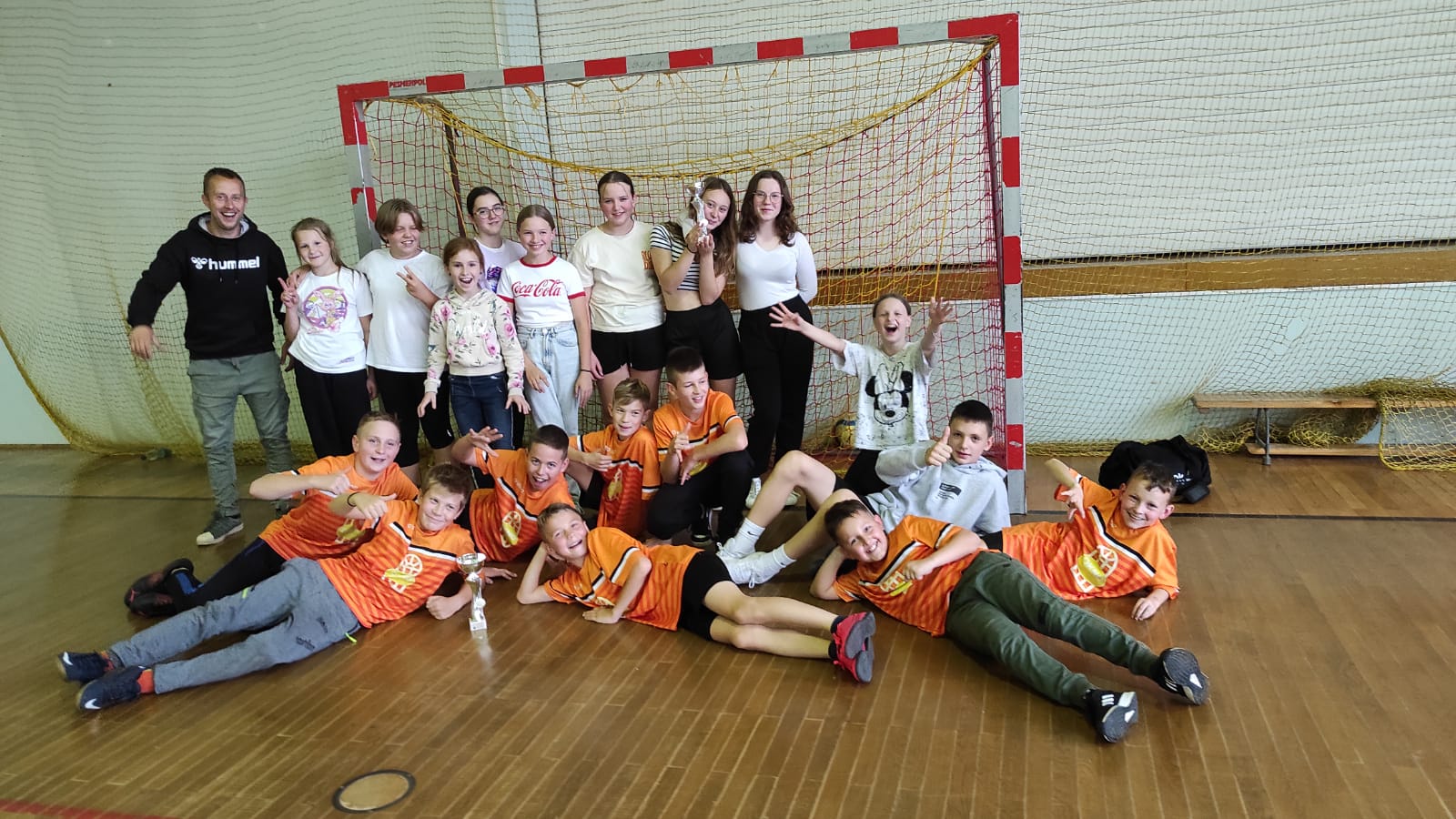 Świetna postawa naszych uczniów z klas 4-6 w zawodach. Zarówno drużyny chłopców i dziewcząt zajęły I miejsce i awansowały do zawodów powiatowych.