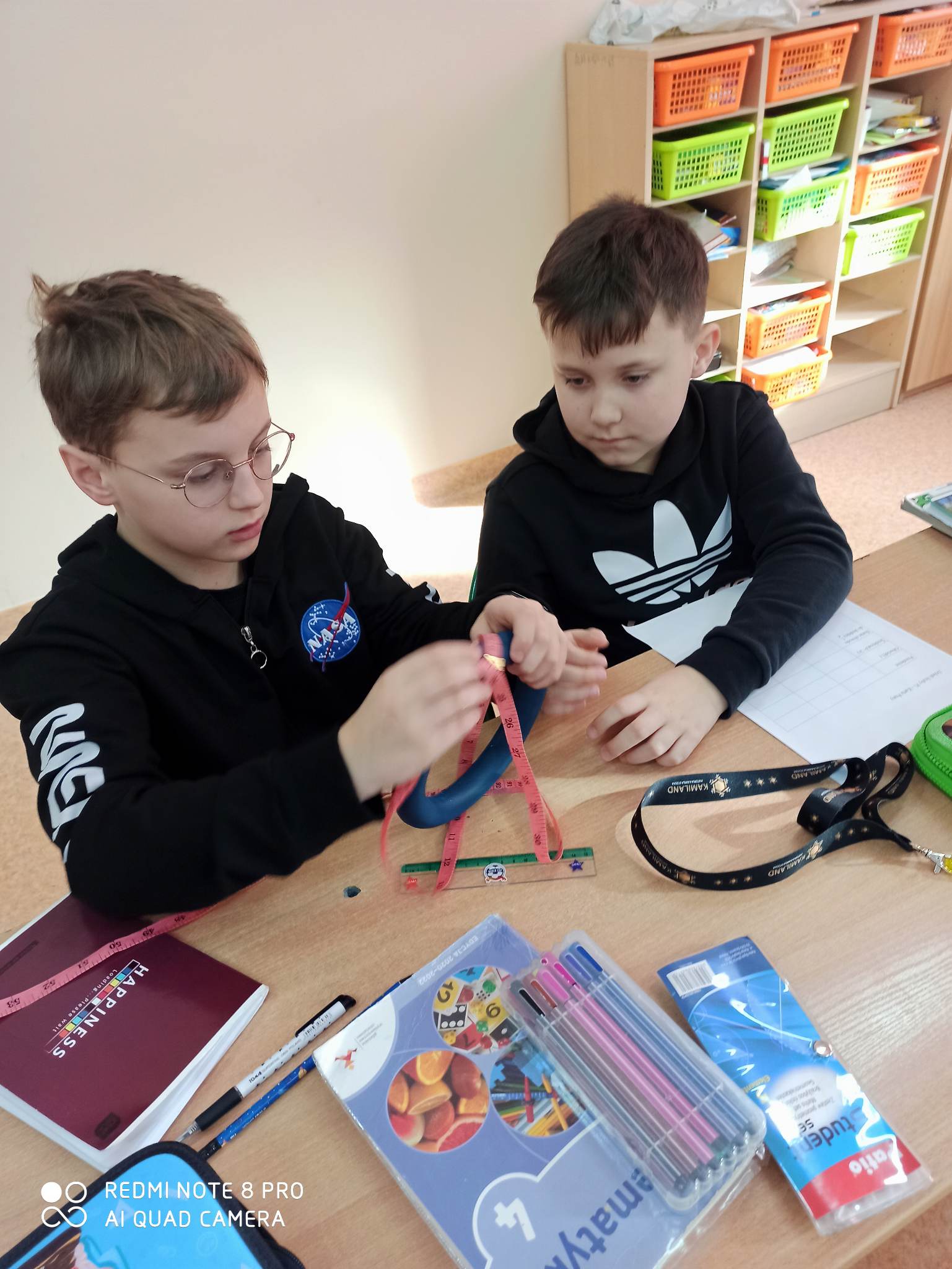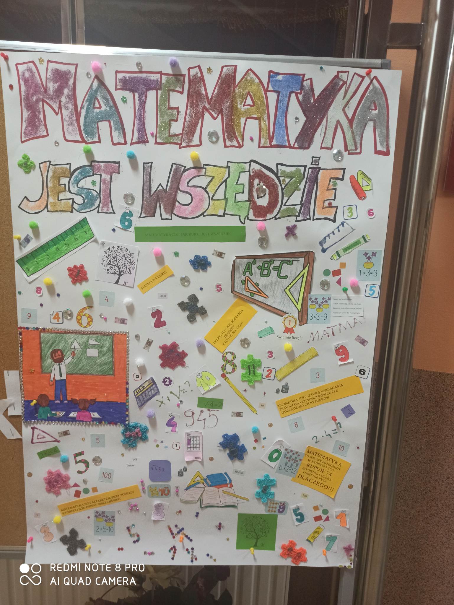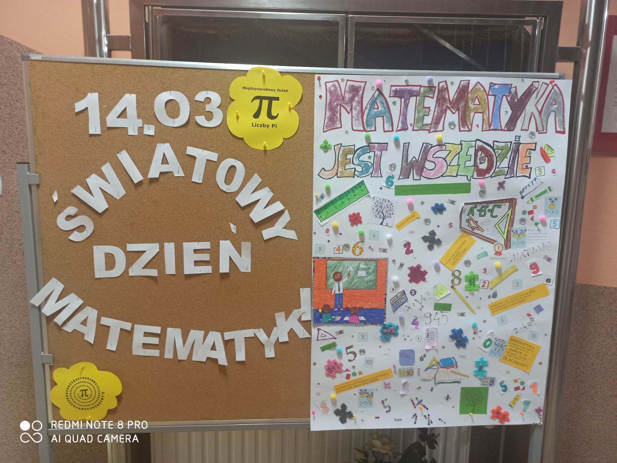 Z kolei 14 marca uczniowie na lekcjach poszukiwali wartości liczby Pi i poprzez samodzielne pomiary oraz obliczenia odkrywali zależności matematyczne. Uczniowie klasy IV b wykonali ciekawy plakat, który pokazuje, że matematyka jest wszędzie.\