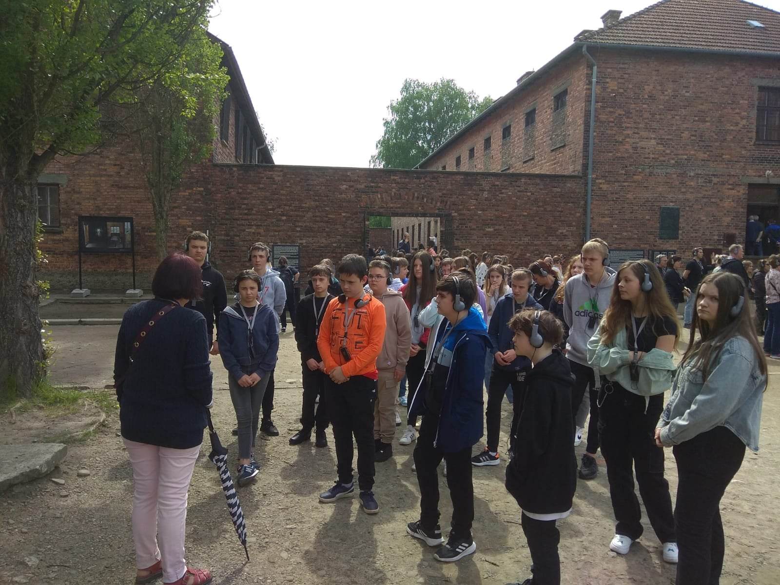 We wtorek 16 maja uczniowie klas VII-VIII zwiedzili były niemiecki nazistowski obóz koncentracyjny Auschwitz-Birkenau w Oświęcimiu. Zobaczyli m. in. wystawę stałą, baraki, rampę wyładowczą, ruiny komór gazowych i krematoriów. Poznali historię powstania obozu oraz warunki życia więźniów. Była to żywa lekcja historii w miejscu, gdzie podczas II wojny światowej niemieccy naziści dokonali zagłady ponad miliona osób.