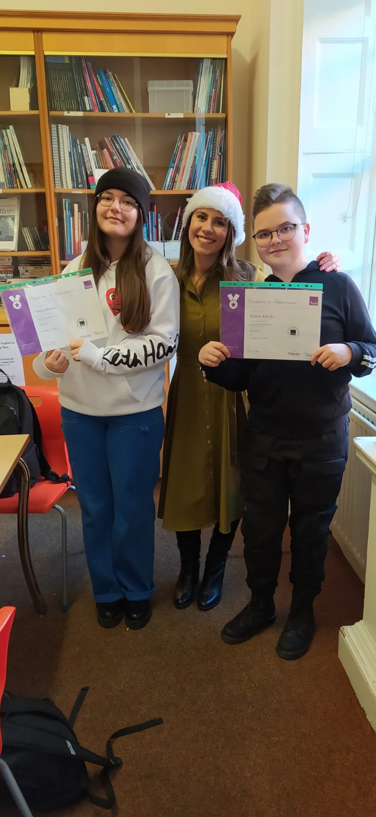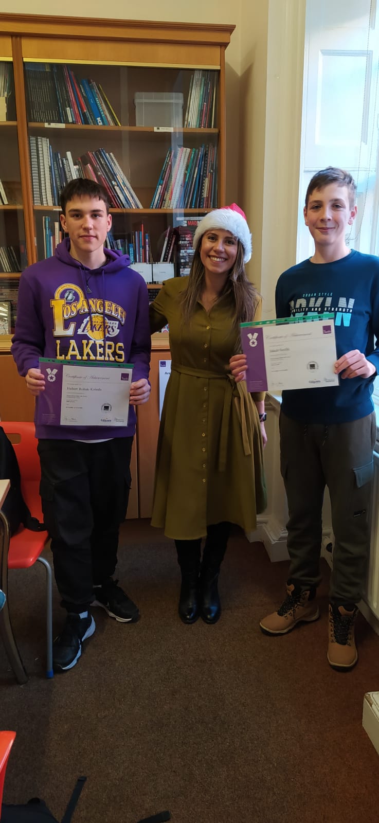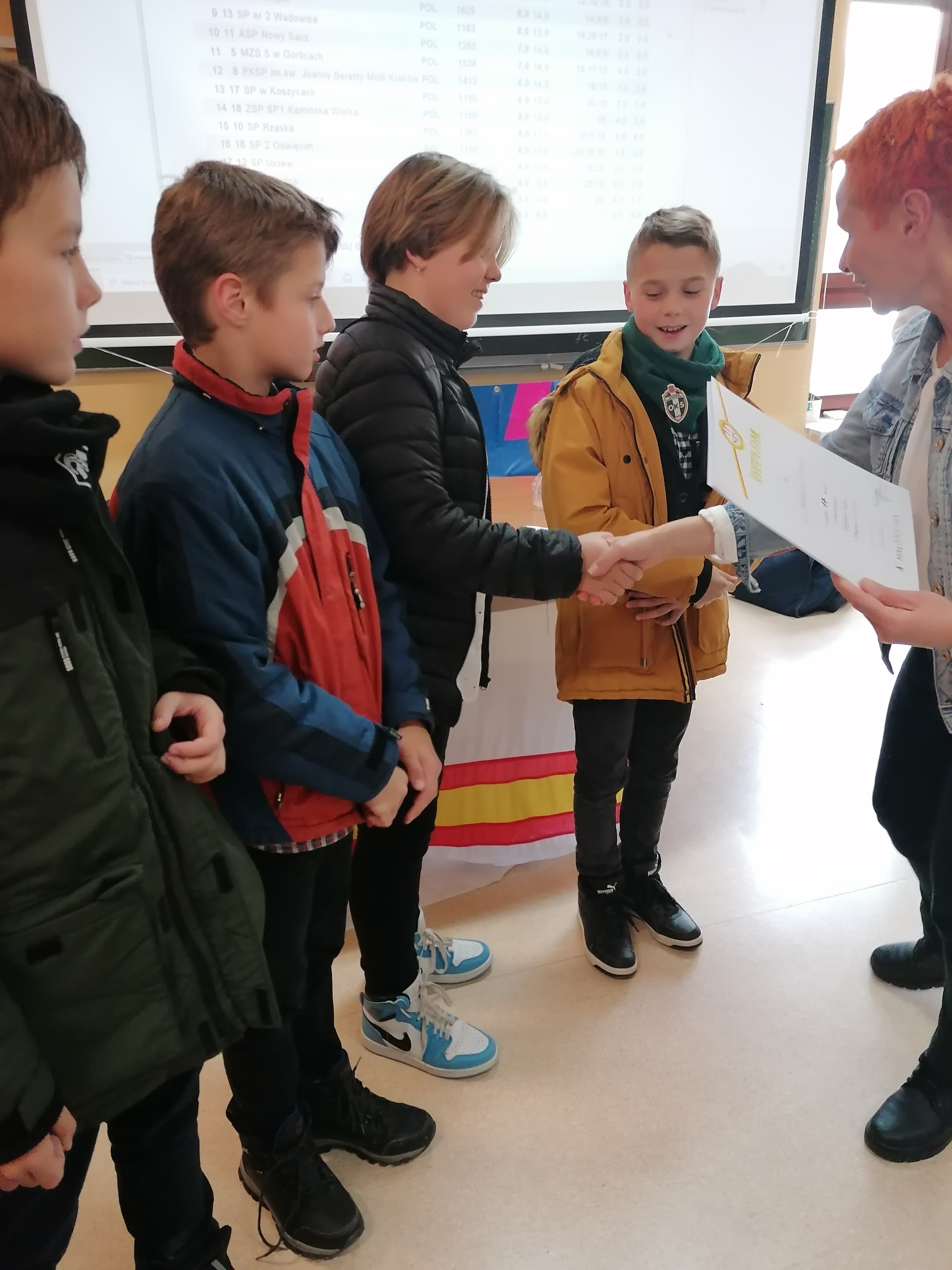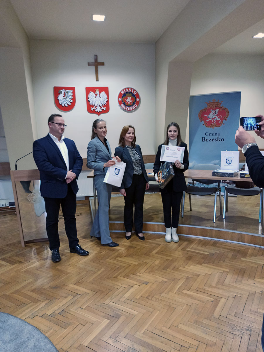 Naszą szkołę reprezentowały dwie uczennice klas ósmych: Paulina Górak i Gabriela Chmielarz, zajmując ex aequo drugie miejsce. W odbiorze nagród mogła uczestniczyć tylko Gabriela, ponieważ Paulina w tym czasie przebywała w Irlandii w ramach projektu Erasmus+.