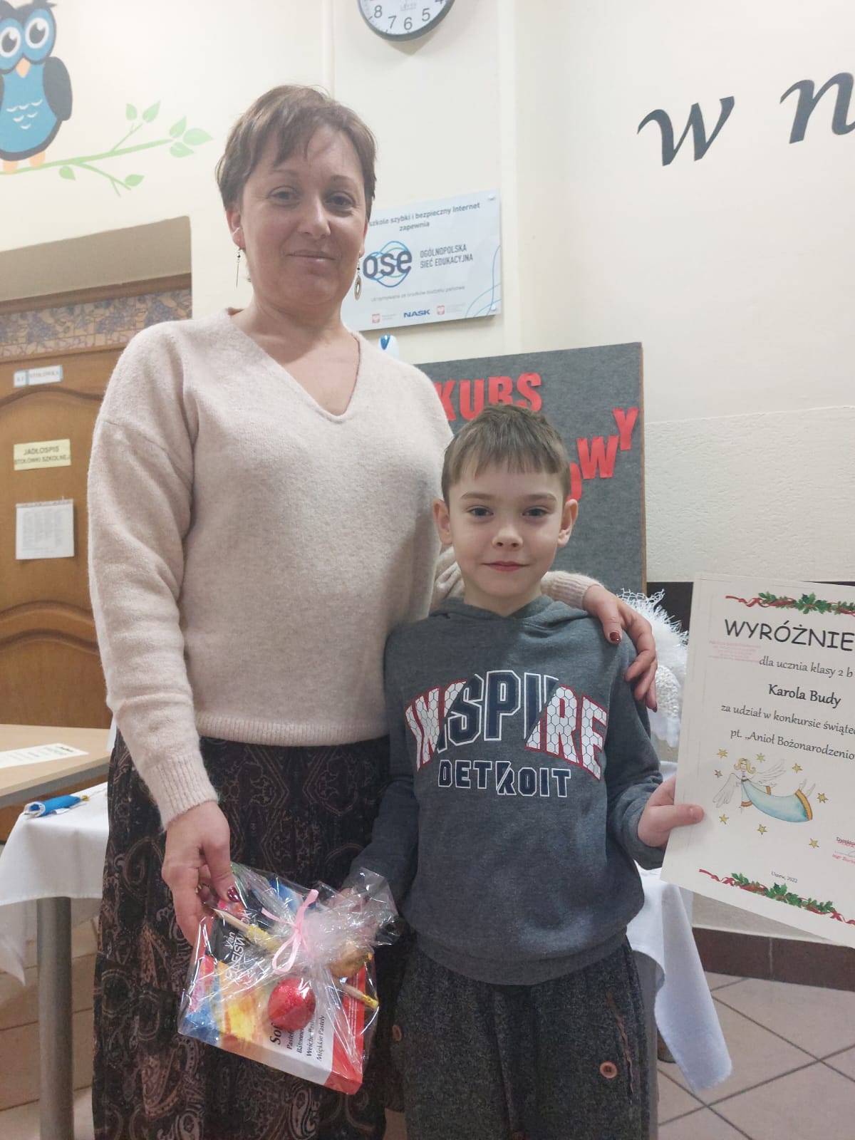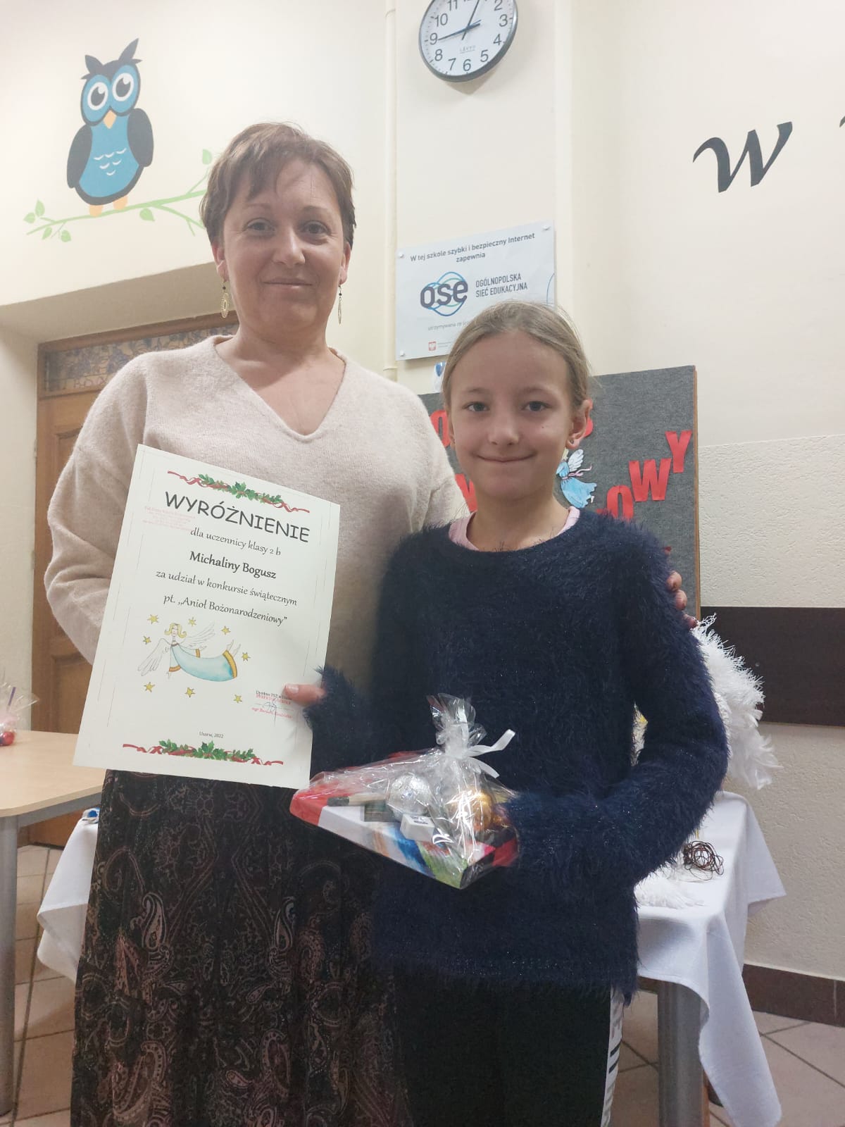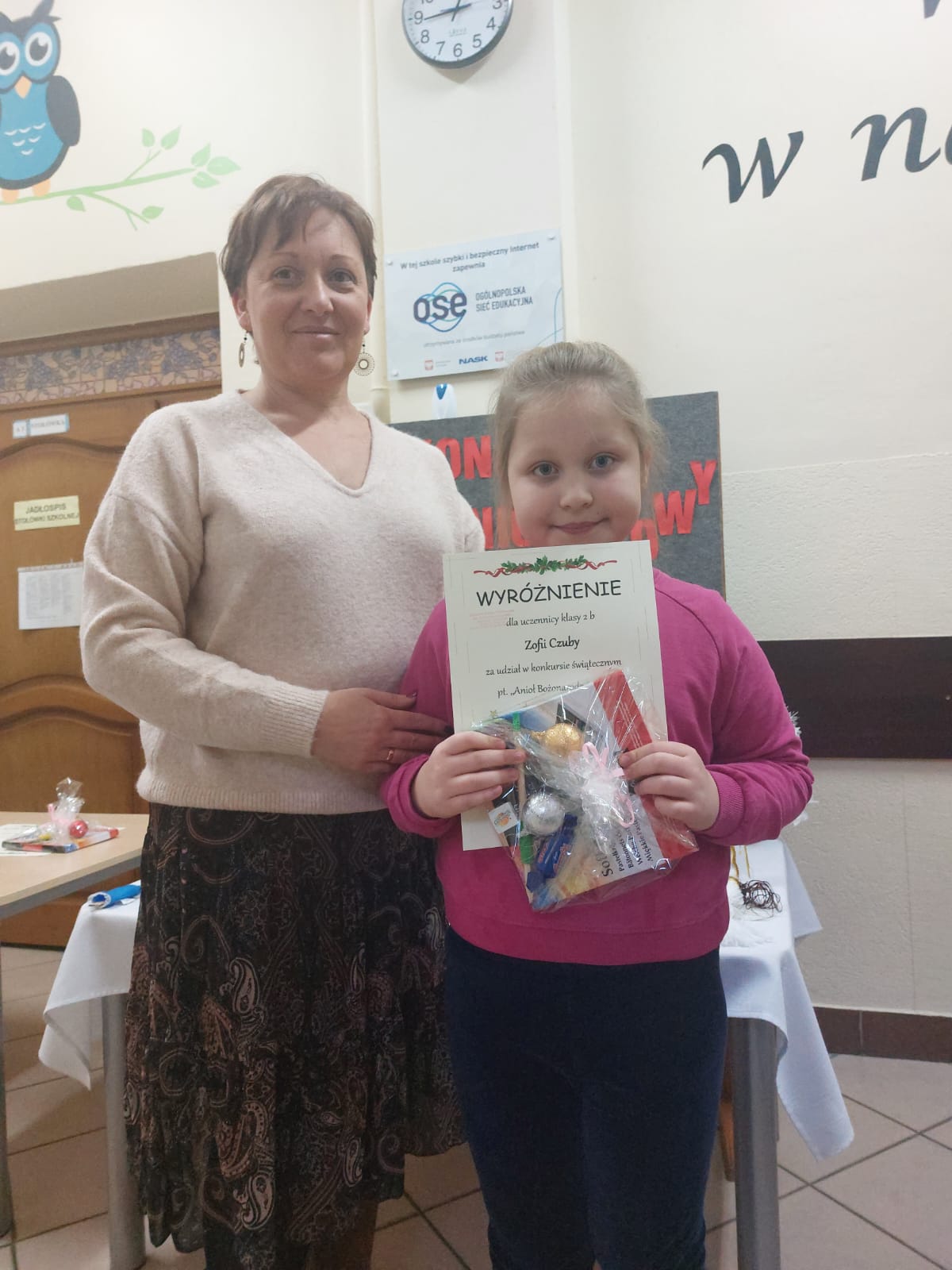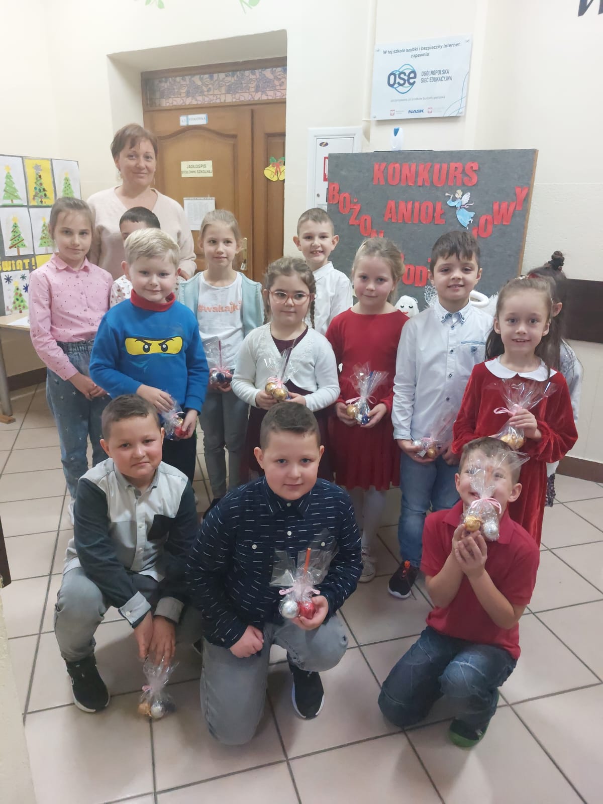W naszej szkole odbył się Konkurs plastyczny - Aniołek Bożonarodzeniowy i dlatego w ostatnich dniach zaczęły się do nas „zlatywać” anioły. Były przeróżne! Duże, małe, grube, chude, całe białe, kolorowe, posypane brokatem, z papieru, nici, drewna, piórek, płatków kosmetycznych, styropianu itp. Prace były przepiękne, miały w sobie coś nadzwyczajnego i wprowadziły do naszej szkoły magiczny nastrój. W konkursie brały udział dzieci z klas I - III. To było bardzo trudne zadanie wybrać anioły najpiękniejsze z najpiękniejszych. Jesteśmy pod ogromnym wrażeniem Waszej inwencji twórczej oraz Waszego zaangażowania.