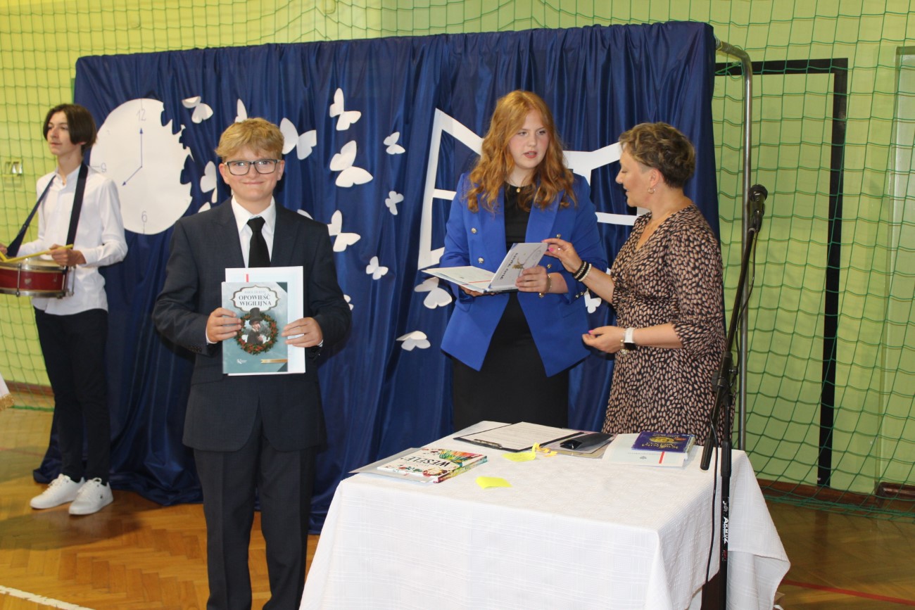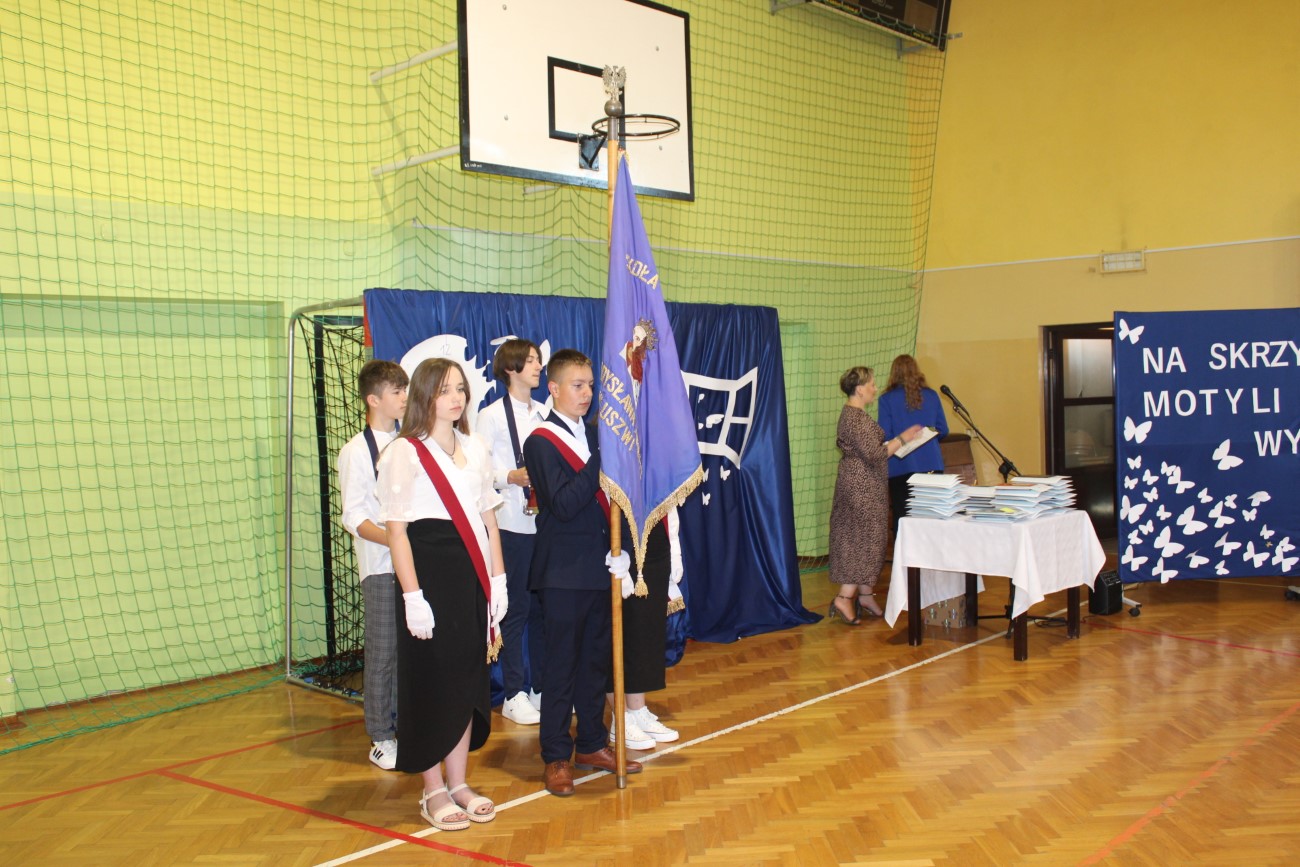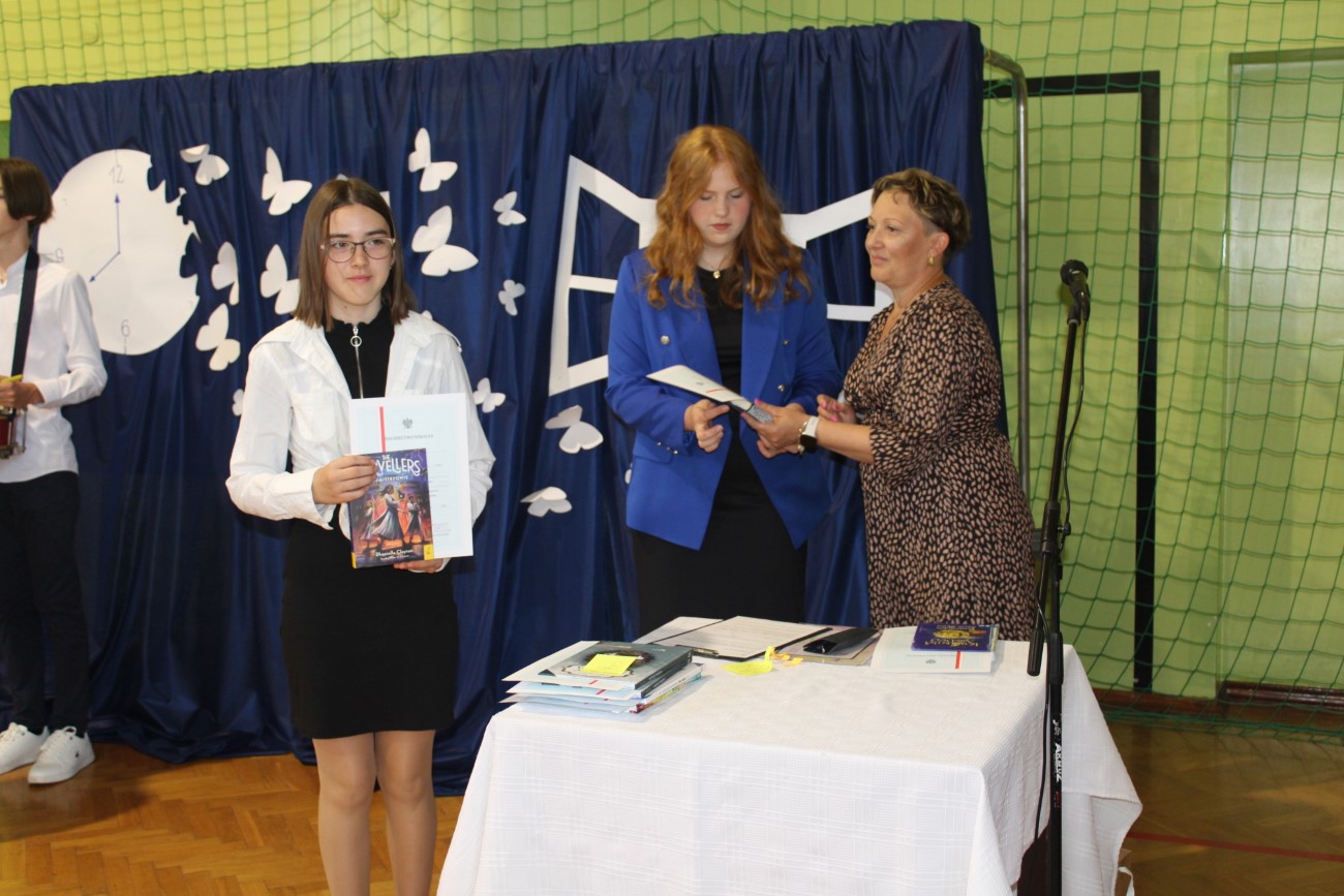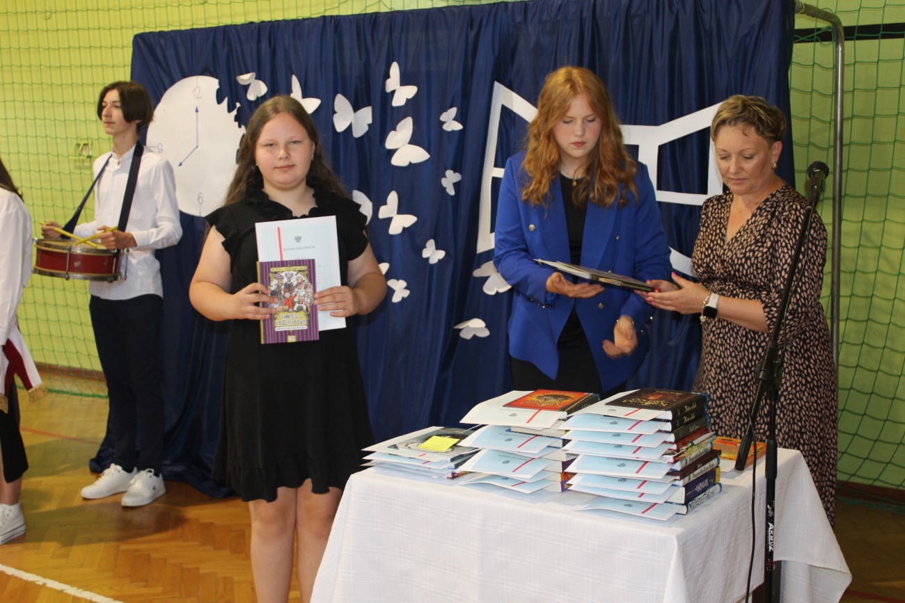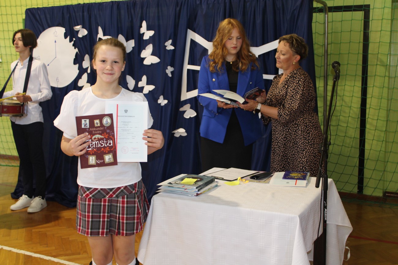 21 czerwca zakończyliśmy rok szkolny 2023/2024. Podczas uroczystej akademii Pani dyrektor podsumowała pracę szkoły oraz wręczyła prymusom świadectwa z wyróżnieniem i nagrody ufundowane przez Radę Rodziców. Tytuł Ucznia Roku 2023/2024 zdobyła Martyna Grzegórzek z kl. V b. Pani dyrektor podziękowała również nauczycielom, pracownikom niepedagogicznym, rodzicom i uczniom za pracę w kończącym się roku szkolnym oraz życzyła udanych, bezpiecznych wakacji. Następnie uczniowie poszczególnych klas spotkali się z wychowawcami.