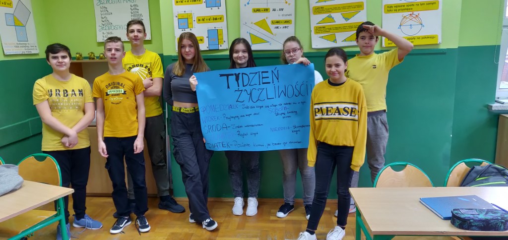 21 listopada obchodziliśmy Światowy Dzień Życzliwości i Pozdrowień. To nietypowe święto stało się okazją do uświadomienia całej społeczności szkolnej, jak ważna jest wzajemna serdeczność. Zwykły uśmiech, ciepłe słowo czy miły gest potrafią rozjaśnić komuś nawet najsmutniejszy dzień. Samorząd Uczniowski podjął szereg działań, które sprzyjały integracji społeczności szkolnej i klasowej. Każdy z nas swoją radość i entuzjazm wyraził poprzez żółte akcenty w ubiorze. Kolejną atrakcją była Skrzynka Życzliwości, za pośrednictwem której uczniowie i nauczyciele mogli przesłać pozdrowienia i życzenia do wybranych osób. Na korytarzu zawisł plakat dotyczący życzliwości oraz tygodniowy plan bycia życzliwym. Ponadto nauczyciele przeprowadzili pogadanki na temat życzliwości. W klasach IV-VIII odbyły się plebiscyty na najżyczliwszego ucznia w klasie.