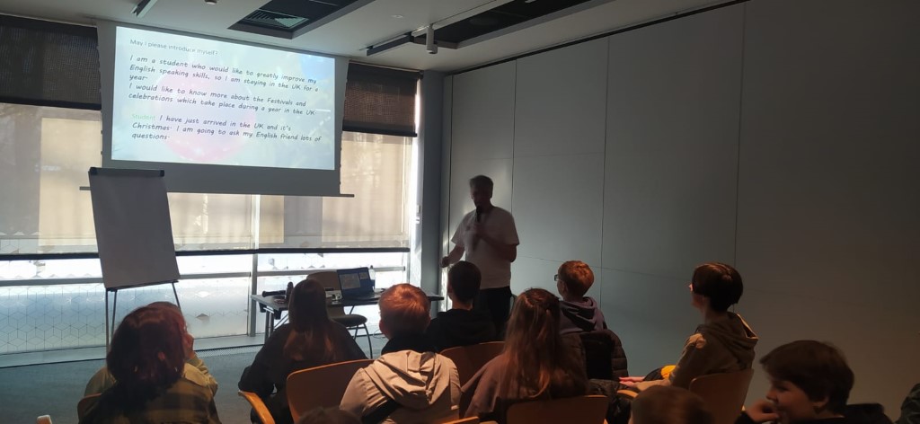 W dniu 22 stycznia chętni uczniowie klas V–VIII z naszej szkoły uczestniczyli w warsztatach językowo-kulturowych państw obszarów anglojęzycznych zorganizowanych w Krakowie w ramach Europejskiego Programu Edukacyjnego ,,NaukaBezGranic”. Pochodzący z Kornwalii, Leslie Mazur-Park, przeprowadził dwugodzinne zajęcia w języku angielskim – UK Calendar of Events oraz English Chants&The Rhythm of Language.