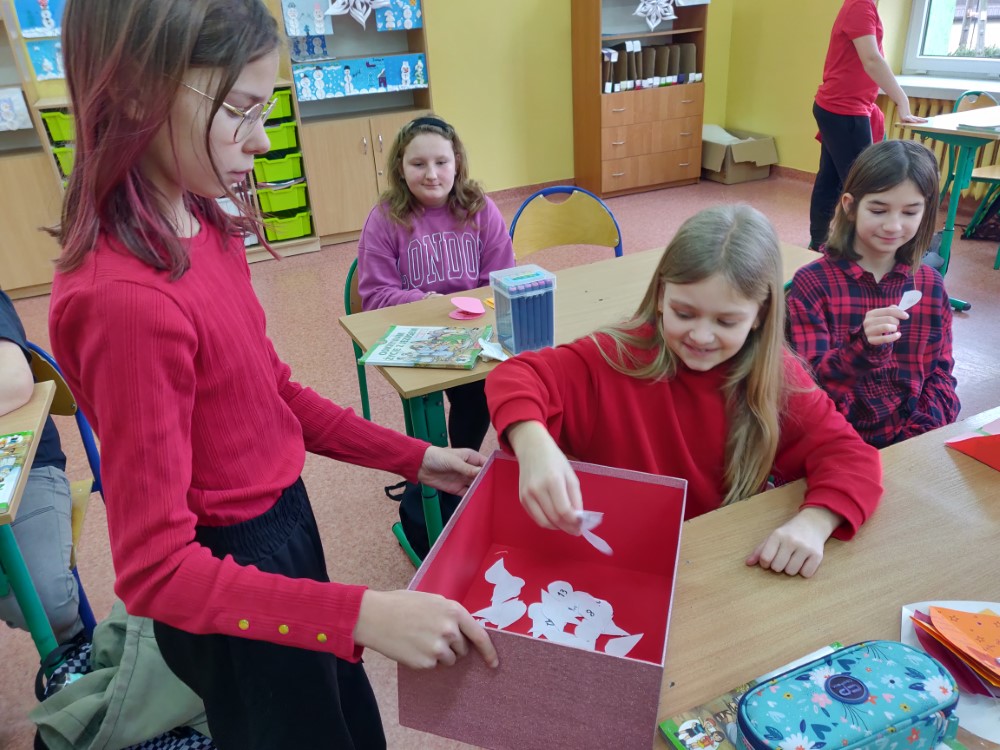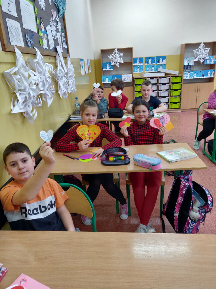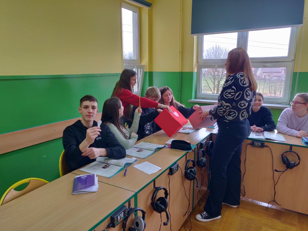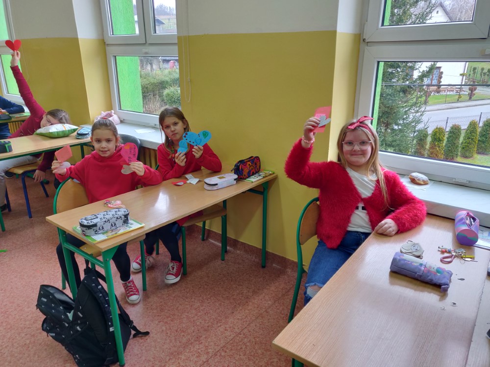 Uczniowie mieli okazję wyrazić swoje uczucia poprzez wysyłanie walentynkowych kartek do swoich kolegów i koleżanek. Tego dnia cała szkoła tonęła w czerwieni, gdyż kolor ten dominował w strojach uczniów, co dodatkowo budowało wyjątkowy nastrój świętowania. Ponadto SU przeprowadził akcję „Znajdź swoją drugą połówkę”. Zabawa była przednia. Inicjatywa przyczyniła się do jeszcze lepszej integracji środowiska szkolnego.
