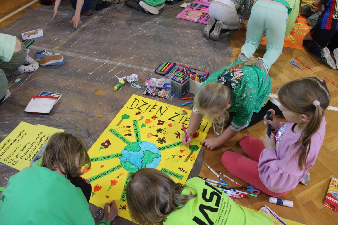 22 kwietnia obchodziliśmy Dzień Ziemi. Promując wśród naszych uczniów postawy proekologiczne, zachęciliśmy ich do podjęcia tego dnia szeregu działań. Jednym z nich było wzięcie udziału w warsztatach dotyczących ochrony środowiska. Młodsze dzieci z klas I-III przygotowały plakaty i zakładki do książek inspirujące do życia w zgodzie z naturą, starsi uczniowie z klas IV-VIII opracowali i wykonali grę planszową zgodną z tematyką tegorocznego święta: Planeta kontra plastik. Ponadto chętne klasy wraz z wychowawcami mogli wziąć udział w Ekologicznym Festiwalu Online.