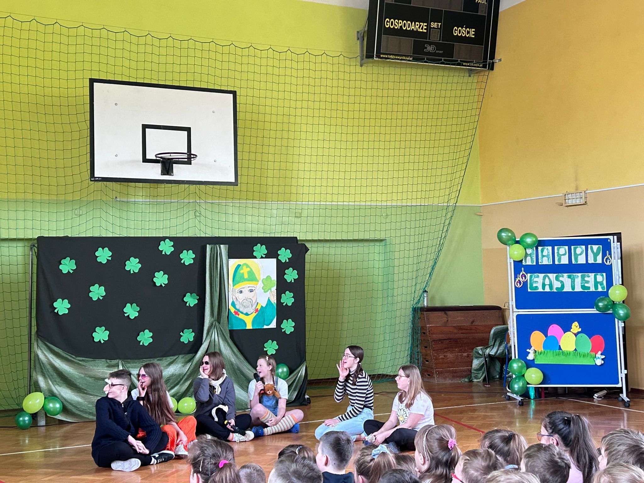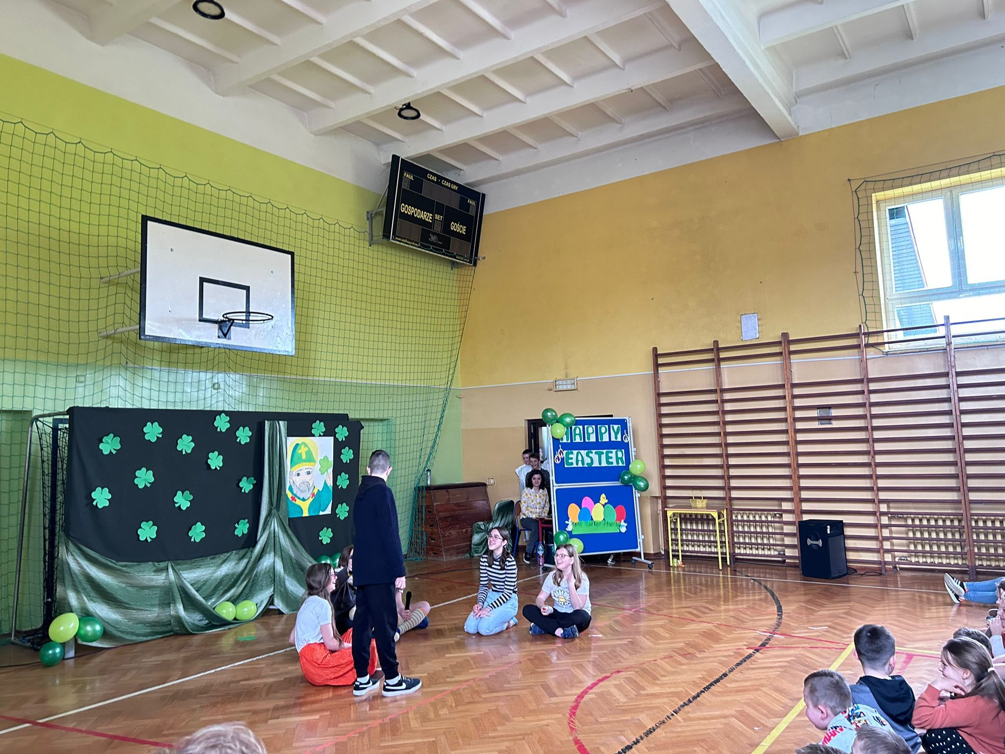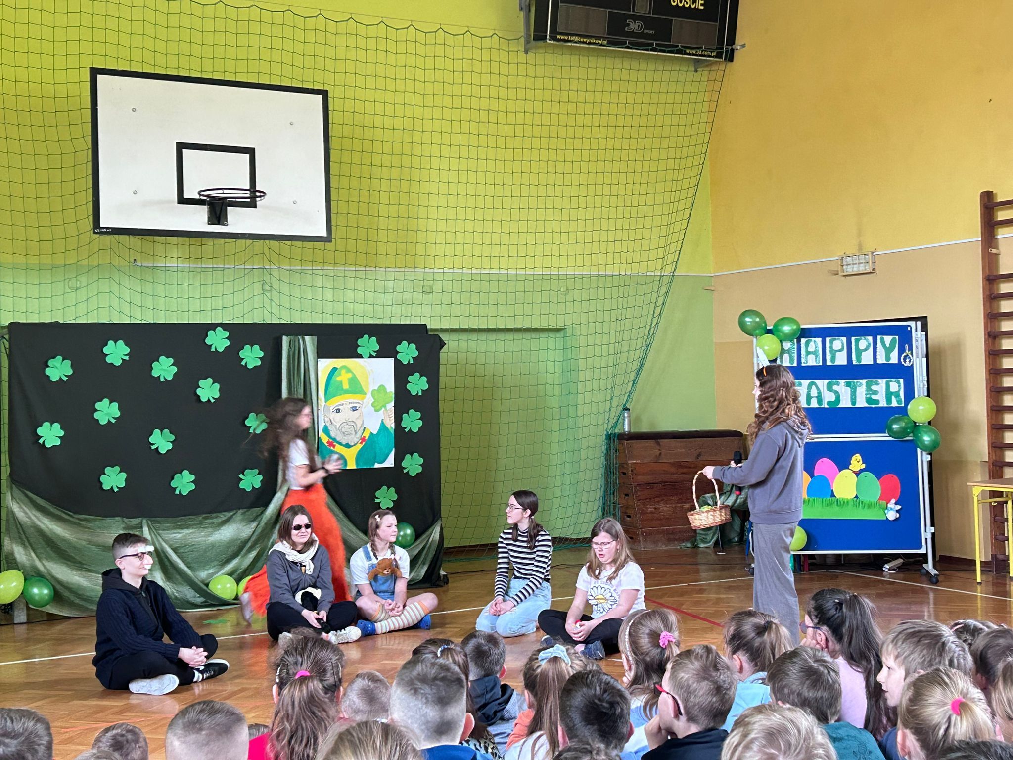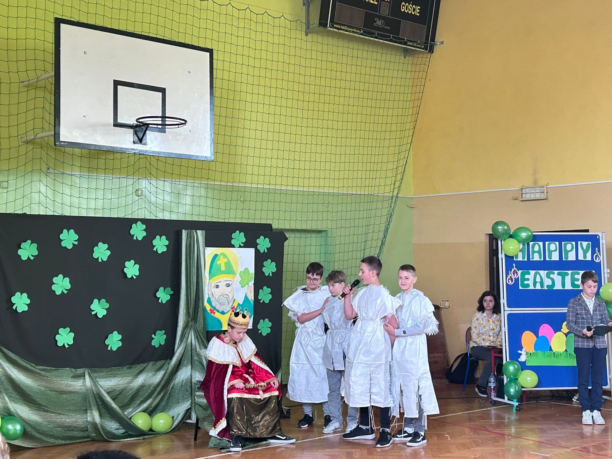 5 kwietnia w naszej szkole odbyło się przedstawienie w języku angielskim dotyczące jednego ze zwyczajów wielkanocnych, jakim jest szukanie ukrytych pisanek. Występujący w inscenizacji uczniowie klasy VI zaprezentowali również krótką inscenizację o św. Patryku, którego święto obchodziliśmy 17 marca. W ten sposób uczniom naszej szkoły została przybliżona postać patrona Irlandii.
