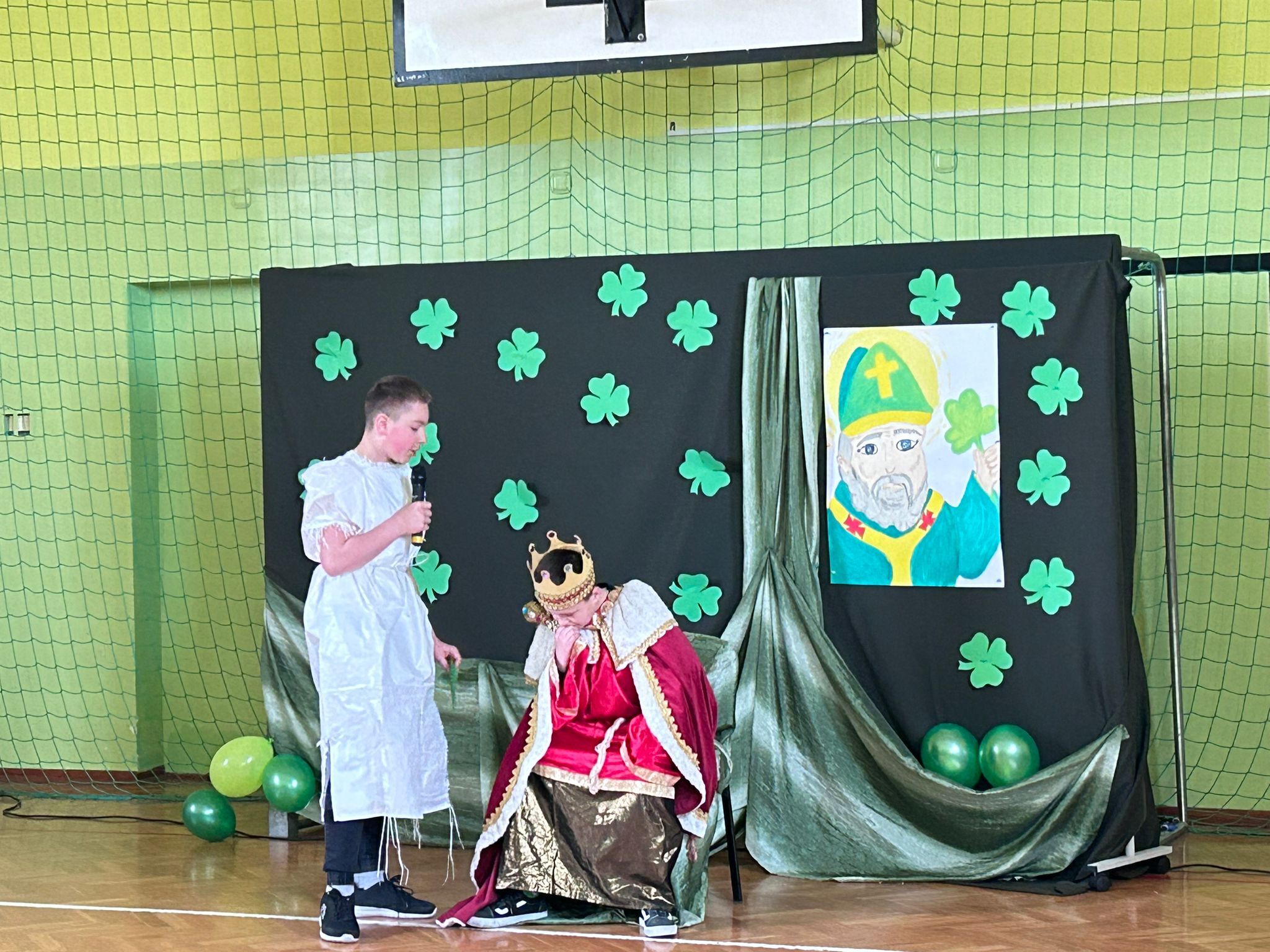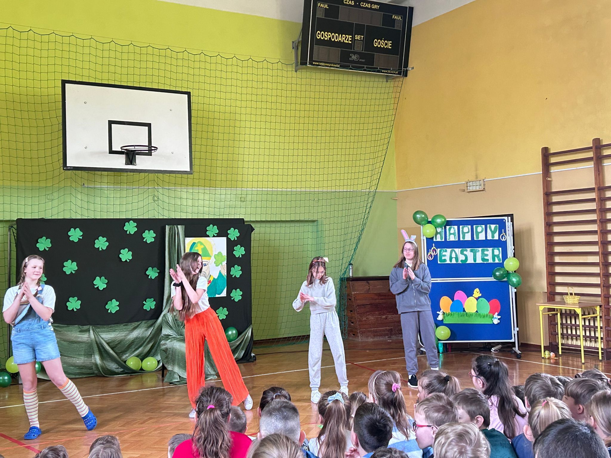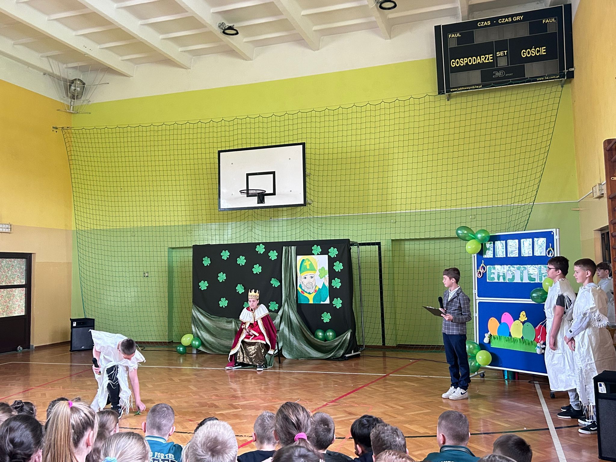 5 kwietnia w naszej szkole odbyło się przedstawienie w języku angielskim dotyczące jednego ze zwyczajów wielkanocnych, jakim jest szukanie ukrytych pisanek. Występujący w inscenizacji uczniowie klasy VI zaprezentowali również krótką inscenizację o św. Patryku, którego święto obchodziliśmy 17 marca. W ten sposób uczniom naszej szkoły została przybliżona postać patrona Irlandii.