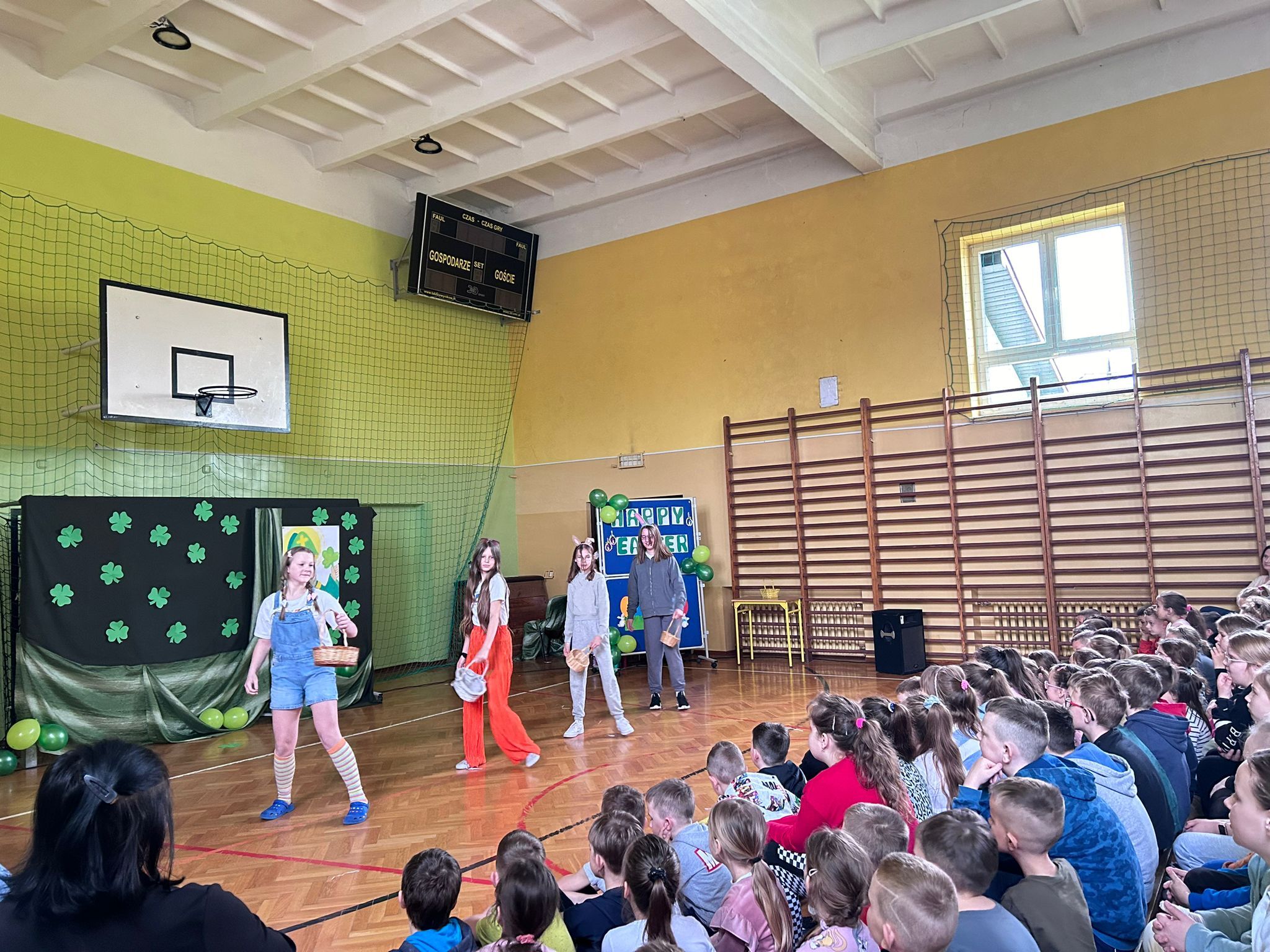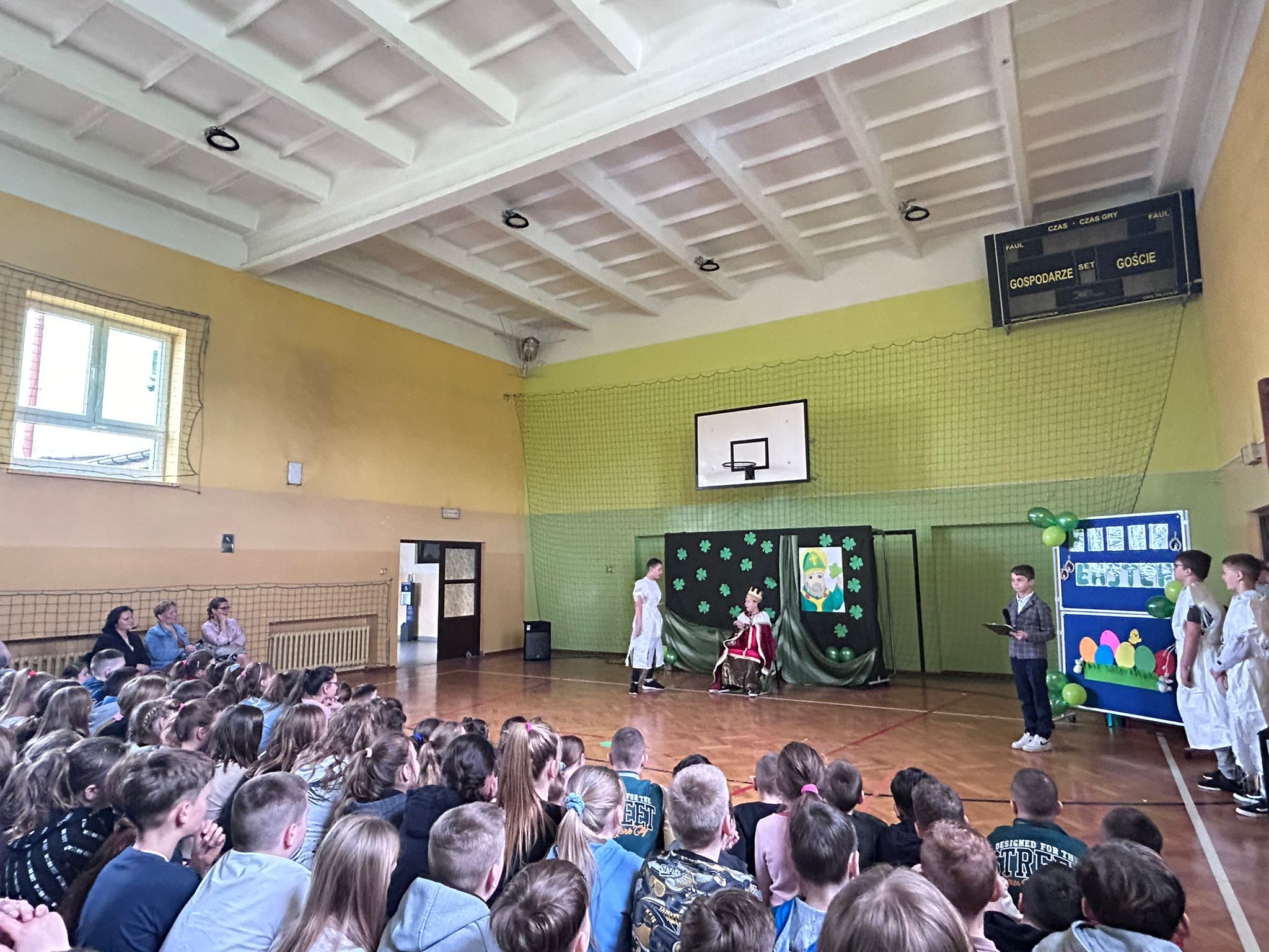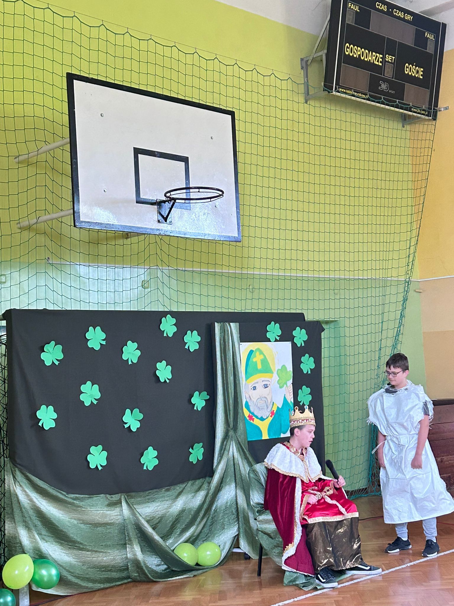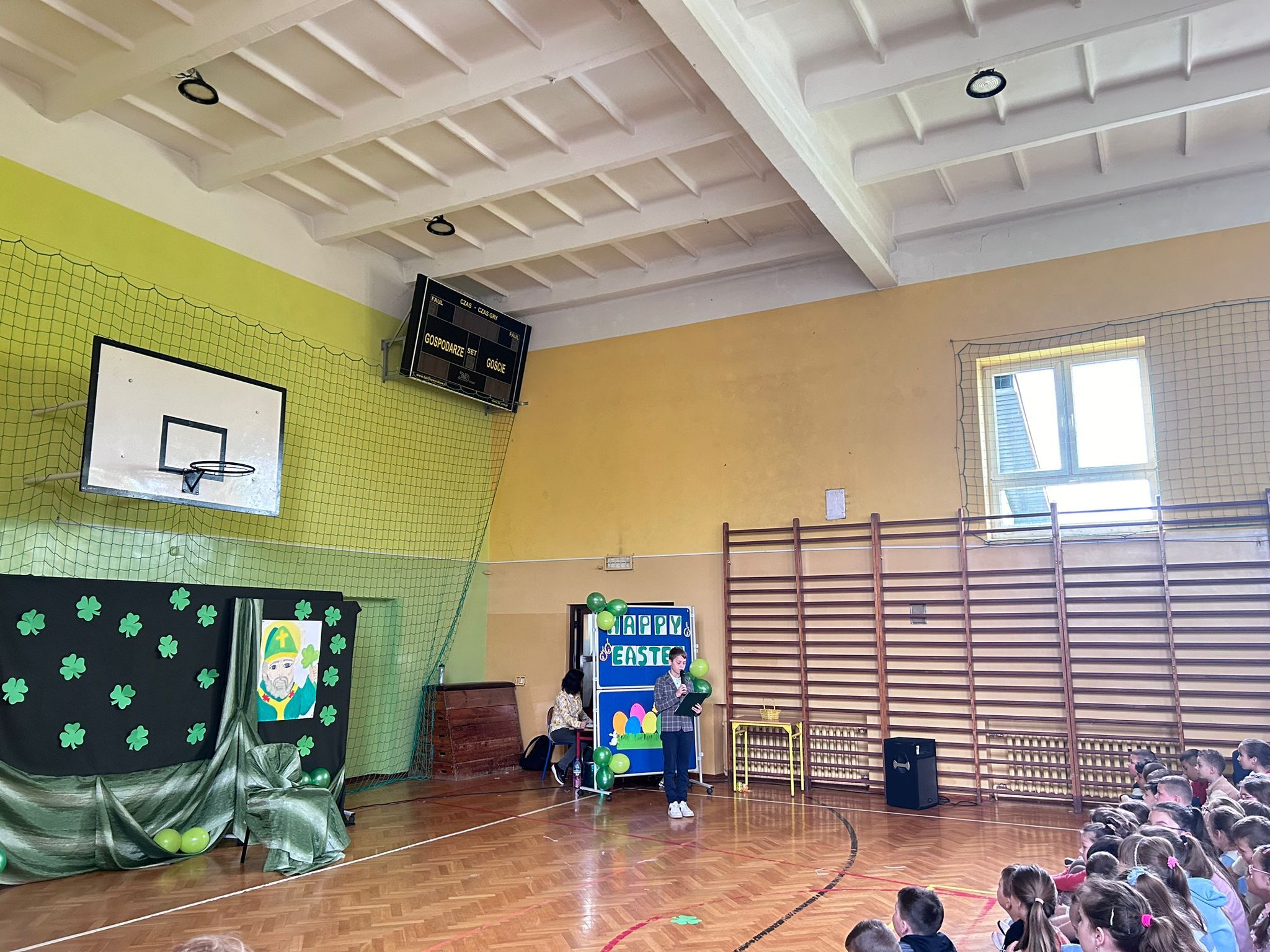 5 kwietnia w naszej szkole odbyło się przedstawienie w języku angielskim dotyczące jednego ze zwyczajów wielkanocnych, jakim jest szukanie ukrytych pisanek. Występujący w inscenizacji uczniowie klasy VI zaprezentowali również krótką inscenizację o św. Patryku, którego święto obchodziliśmy 17 marca. W ten sposób uczniom naszej szkoły została przybliżona postać patrona Irlandii.