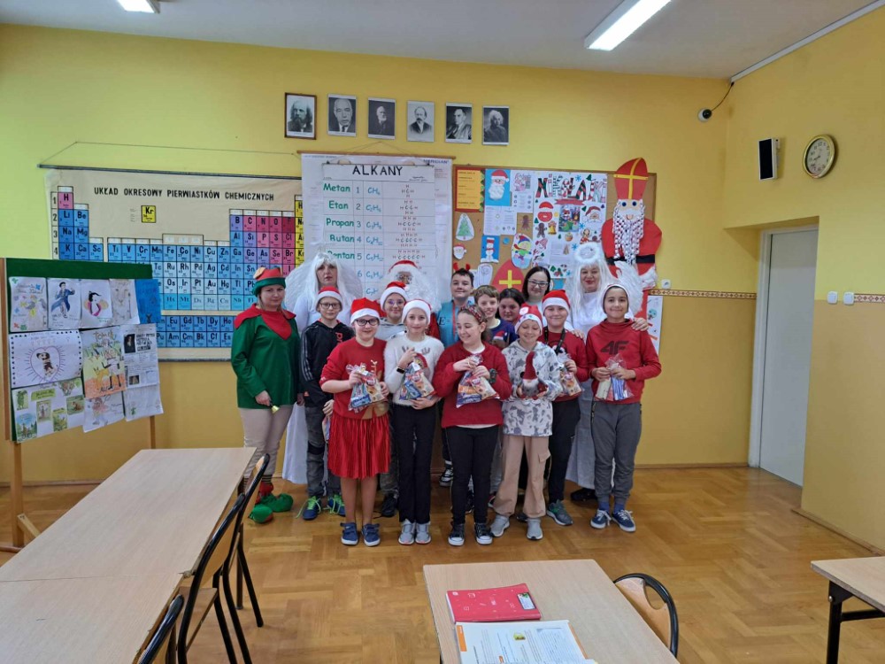 6 grudnia progi naszej szkoły przekroczył św. Mikołaj. Razem z elfami i aniołami odwiedził wszystkie klasy, rozdając słodkie prezenty dzieciom i młodzieży. Nie zapomniał również o nauczycielach oraz pracownikach administracji i obsługi. Uczniowie w tym wyjątkowym dniu ubrali się w stroje z akcentami mikołajkowymi i świątecznymi.