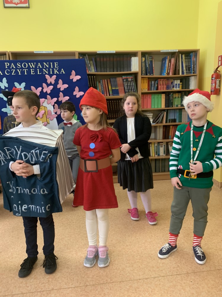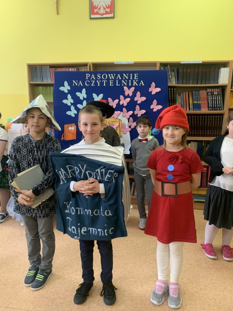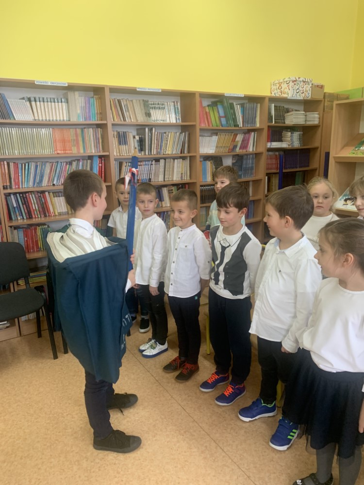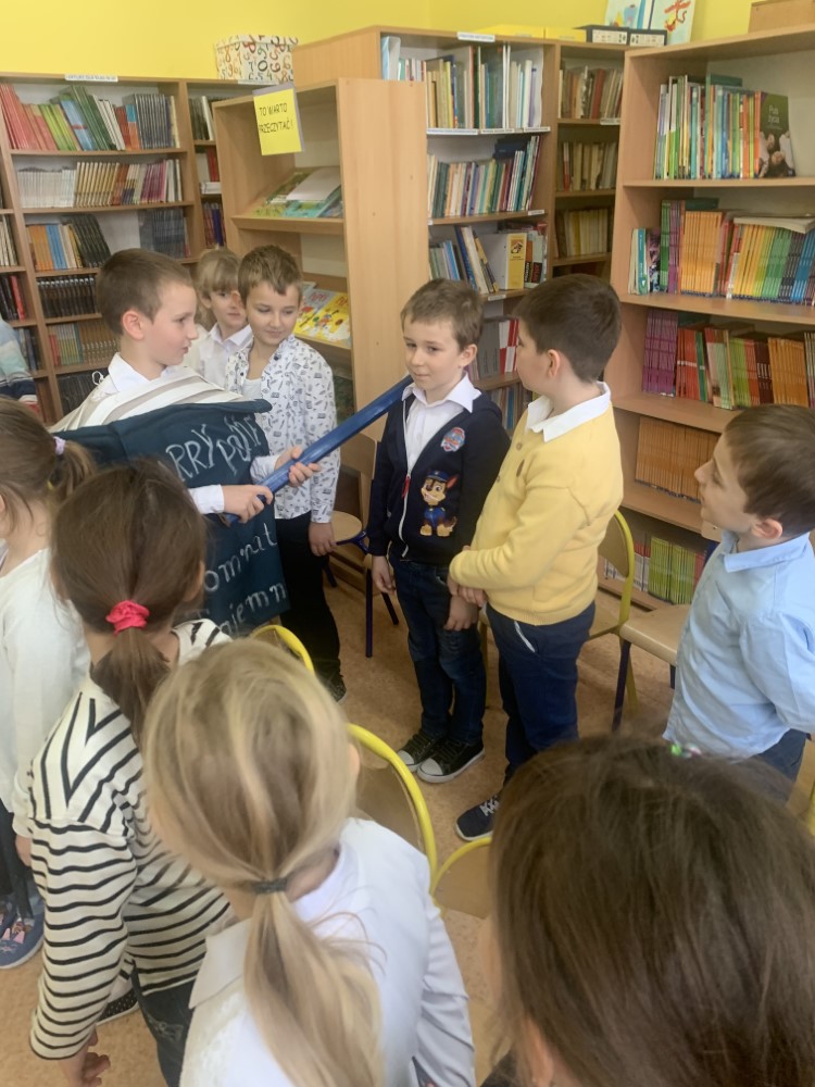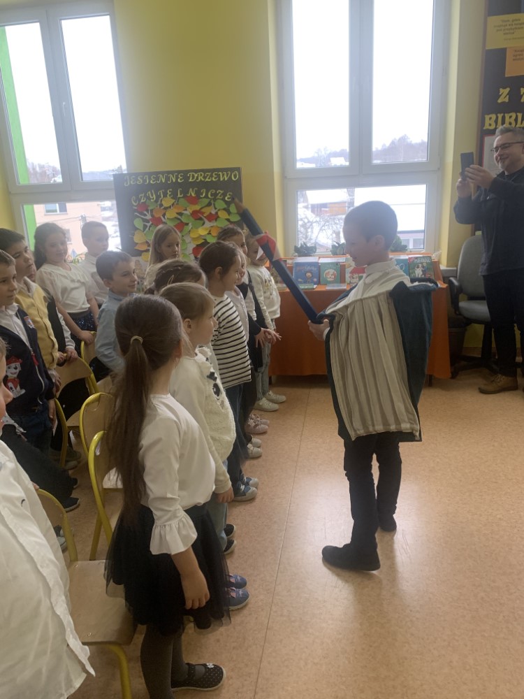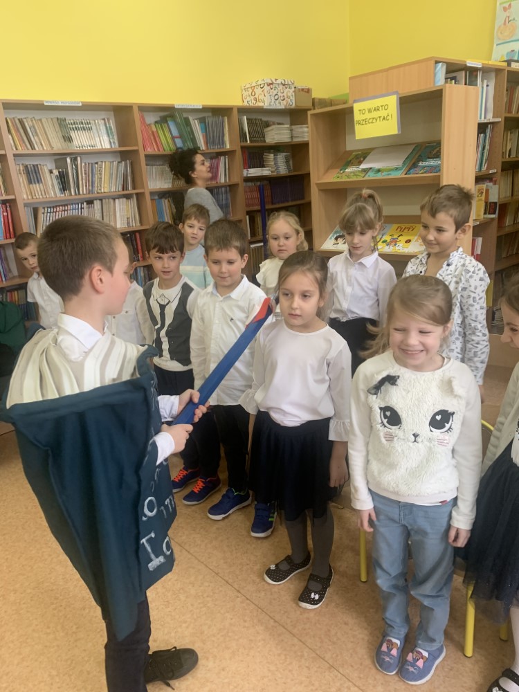 Uczniowie klasy I zostali w piątek pasowani na czytelnika naszej szkolnej biblioteki. Wcześniej wysłuchali przedstawienia w wykonaniu uczniów klasy IIIa oraz złożyli uroczyste ślubowanie "Przyjaciela książek". Na zakończenie pan Piotr Rzepa wręczył pierwszakom pamiątkowe dyplomy.