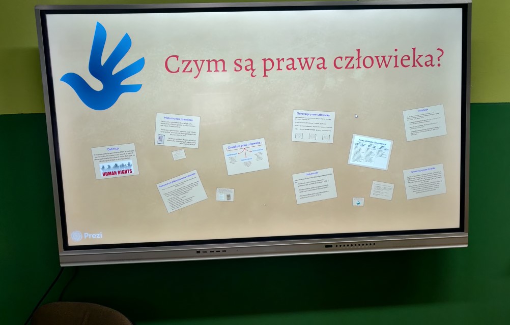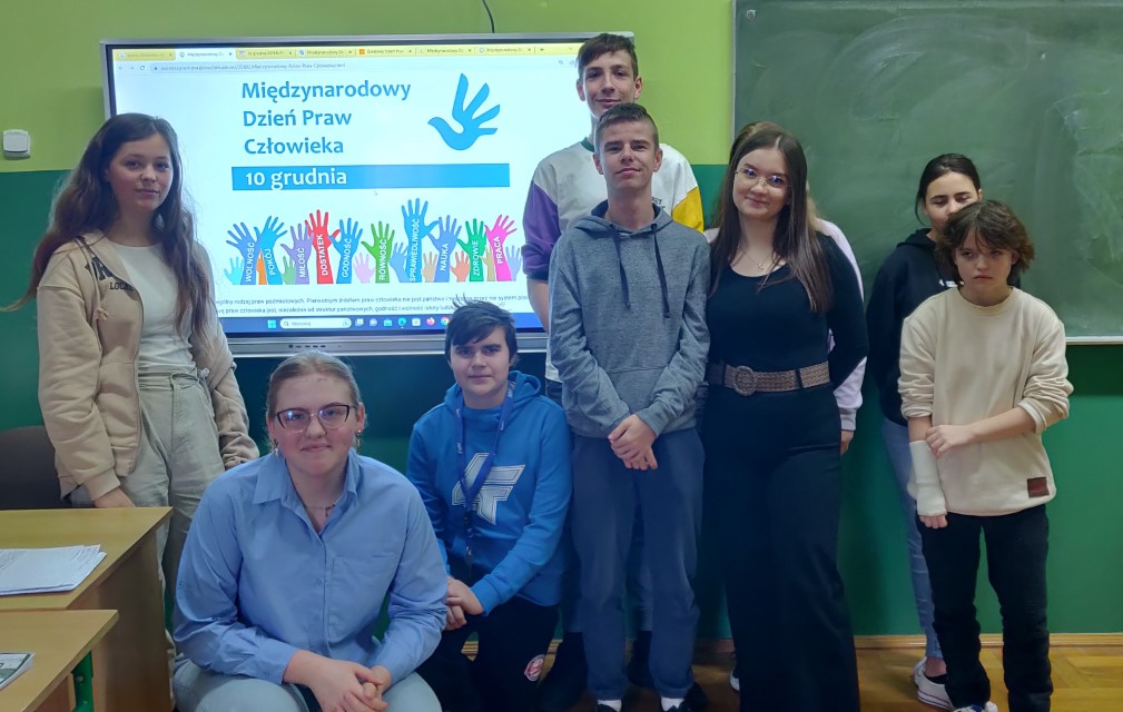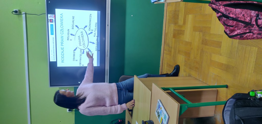 Ponadto podczas zajęć uczniowie dowiedzieli się, czym są prawa człowieka, poznali ich historię i znaczenie we współczesnym świecie. Zapoznani zostali z Powszechną Deklaracją Praw Człowieka.