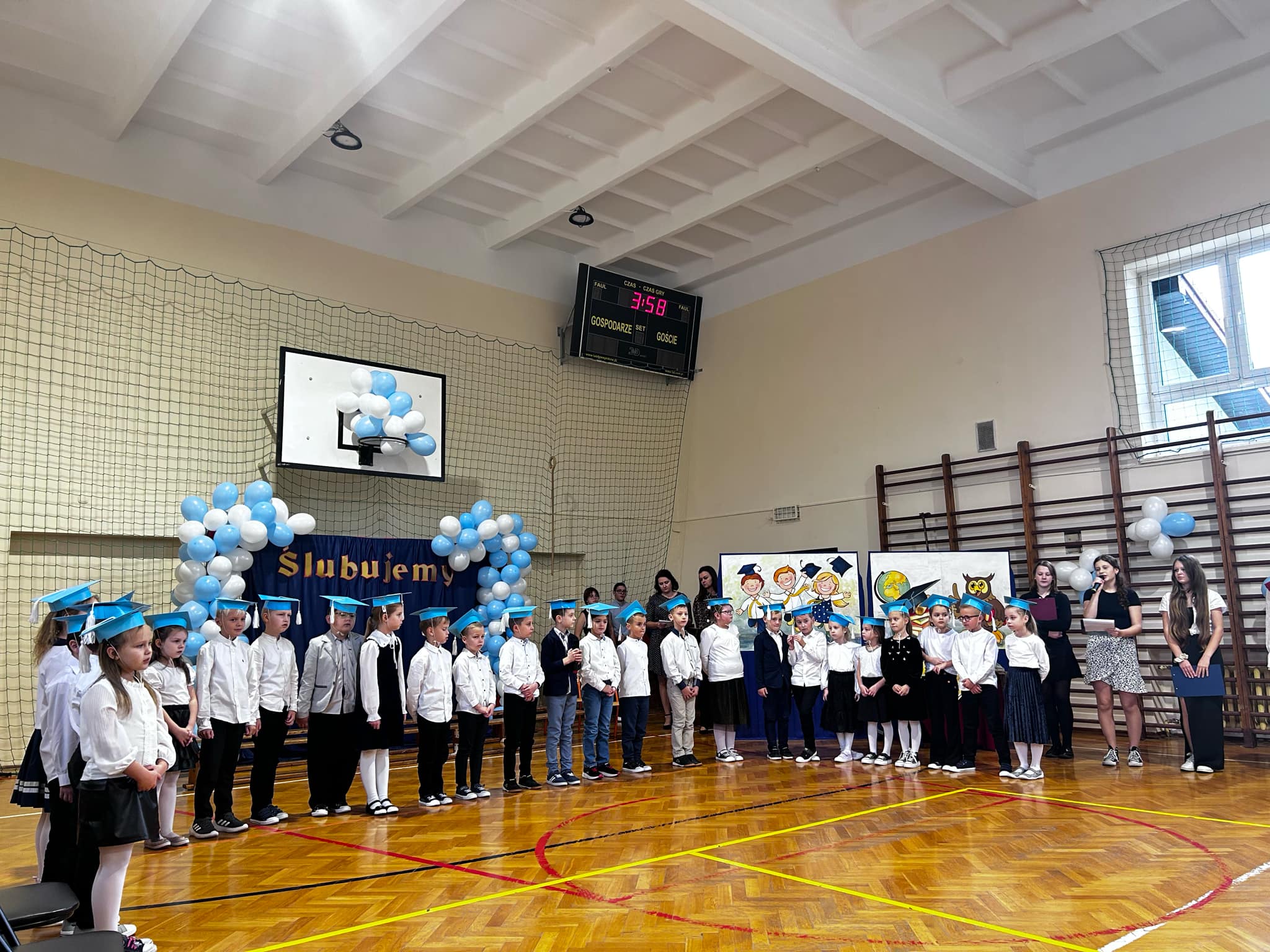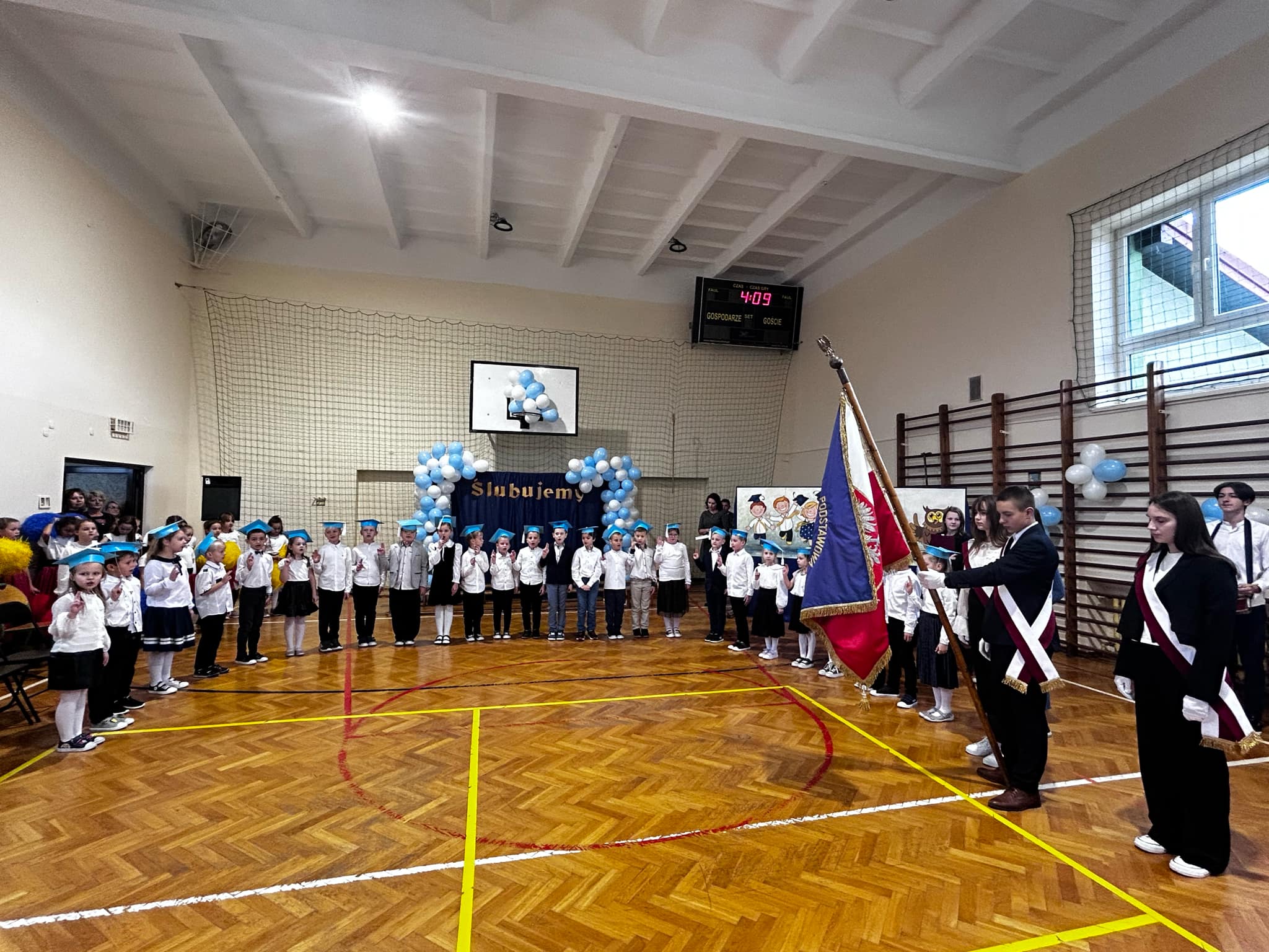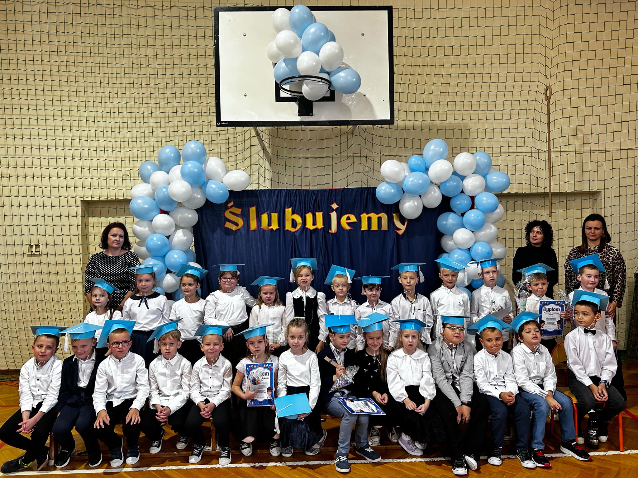 Dnia 14 listopada 2024 r. w naszej szkole obchodziliśmy Święto Szkoły, podczas którego odbyło się ślubowanie pierwszoklasistów W tym szczególnym dniu najmłodsi uczniowie oficjalnie stali się pełnoprawnymi członkami społeczności szkolnej. Uroczystość rozpoczęła się od występu przygotowanego przez uczniów klasy VIII, którzy przedstawili scenkę z życia patrona szkoły – Władysława Jagiełły. Następnie pierwszoklasiści ubrani w odświętne stroje zaprezentowali swoje umiejętności recytatorskie, taneczne i wokalne. Ich występ przeplatały tańce w wykonaniu szkolnych cheerleaderek. Głównym punktem programu było uroczyste ślubowanie. Pierwszoklasiści obiecali być pilnymi uczniami, szanować szkołę, dbać o jej tradycje oraz przestrzegać zasad. Po ceremonii otrzymali oni pamiątkowe dyplomy i symboliczne upominki. W uroczystości wzięli także udział rodzice uczniów klas pierwszych, którzy z dumą i wzruszeniem oglądali występy swoich pociech. To ważne wydarzenie na stałe zapisze się w pamięci pierwszoklasistów i ich bliskich jako początek nowej drogi edukacyjnej. Uroczystość ślubowania to nie tylko symboliczne włączenie nowych uczniów do społeczności szkolnej, ale także moment, kiedy uczą się oni odpowiedzialności, szacunku do tradycji i wartości, które będą towarzyszyć im przez cały okres nauki w szkole.