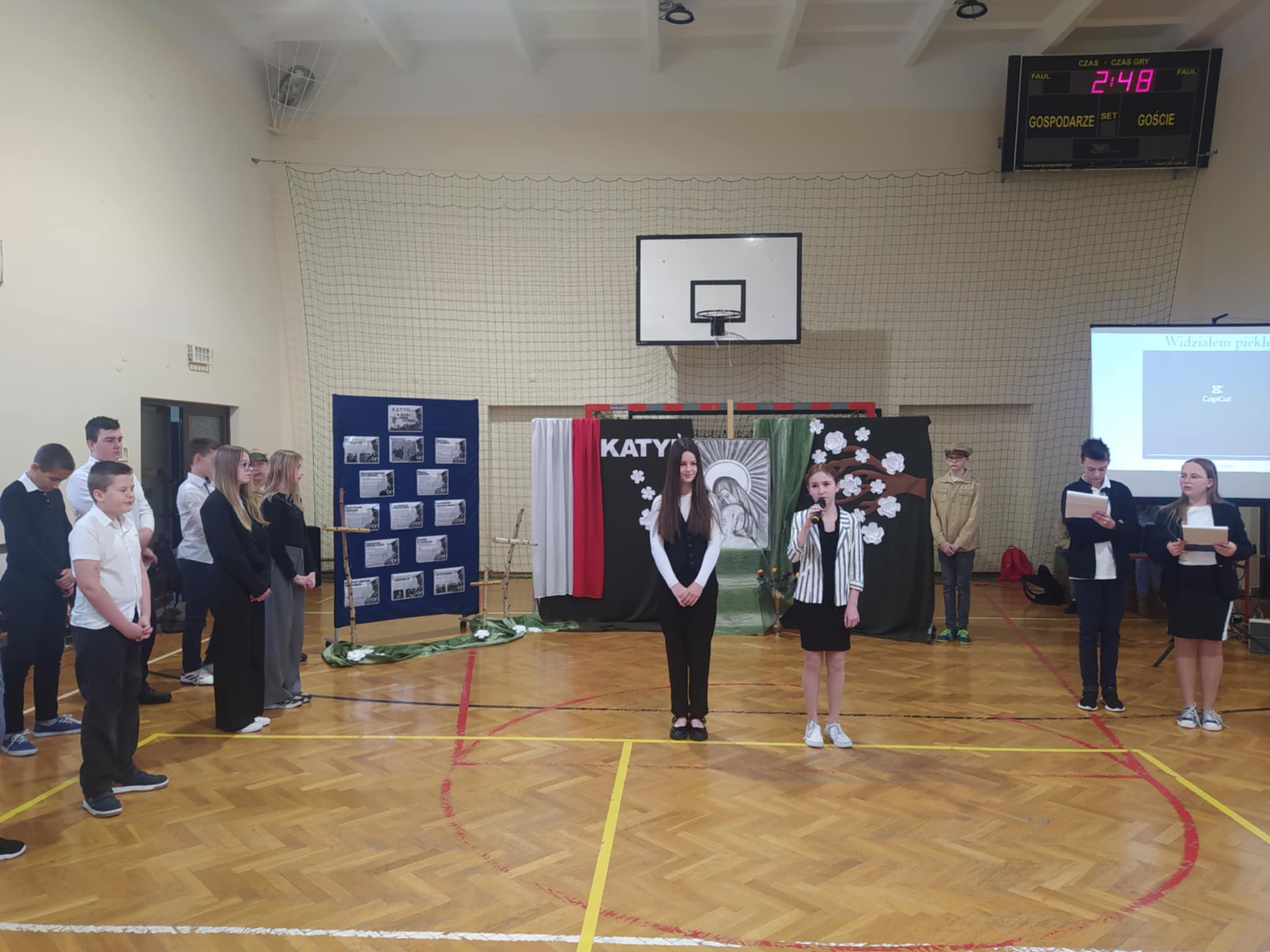 11 kwietnia społeczność naszej szkoły wzięła udział w apelu upamiętniającym rzeź katyńską z 1940 roku. Uczniowie klasy VI a i VI b przedstawili wzruszający montaż słowno-muzyczny przeplatany multimedialnymi kadrami z filmu Andrzeja Wajdy pt. ,,Katyń”, wspomnieniami ocalałego od zagłady ks. Zdzisława Peszkowskiego, który znalazł się w ostatnim transporcie 232 osób do Katynia, ale tam nie dotarł oraz słowami św. Jana Pawła II przypominającymi o tym, że człowiek nie ma prawa zabijać drugiego człowieka. Apel zakończyła minuty ciszy w hołdzie ofiarom zbrodni katyńskiej, o której pamięć musi być żywa w kolejnych pokoleniach polskiego narodu.