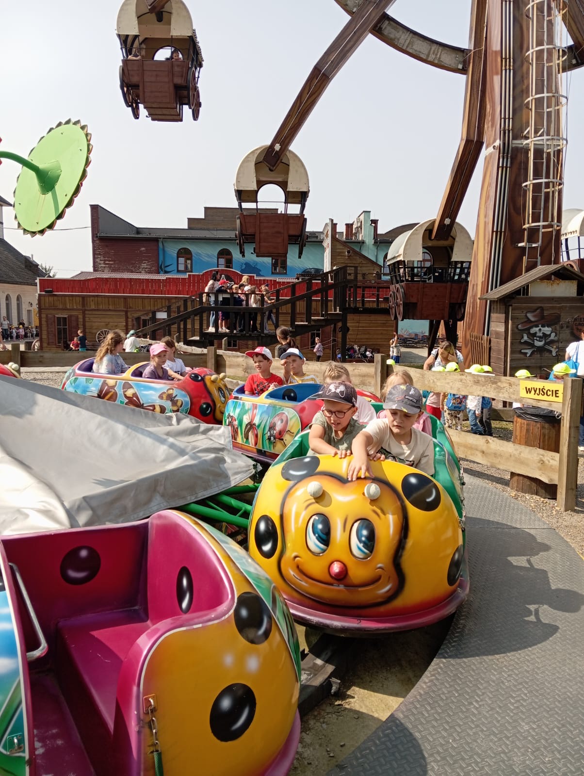10 czerwca uczniowie z klas I–IV pojechali na wycieczkę do Parku Rozrywki TWINPIGS. Dzieci przez cały dzień korzystały z atrakcji znajdujących się w różnych strefach tematycznych. Poznawały Dziki Zachód, m.in. strzelnicę, ogródek farmera, ranczo. W strefie Powrót do przyszłości jeździły na karuzelach, oglądały filmy w kuli parowej oraz podziwiały widoki na kole młyńskim. Z kolei w Lesie Przygód podróżowały koleją wąskotorową, wspinały się na linach, spacerowały po leśnym molo i pływały łódkami w wiosce indiańskiej. Dzięki wielu różnorodnym atrakcjom uczniowie nie tylko świetnie się bawili, ale przede wszystkim rozwijali zręczność, koordynację ruchową, równowagę oraz uczyli się pokonywać własne lęki.