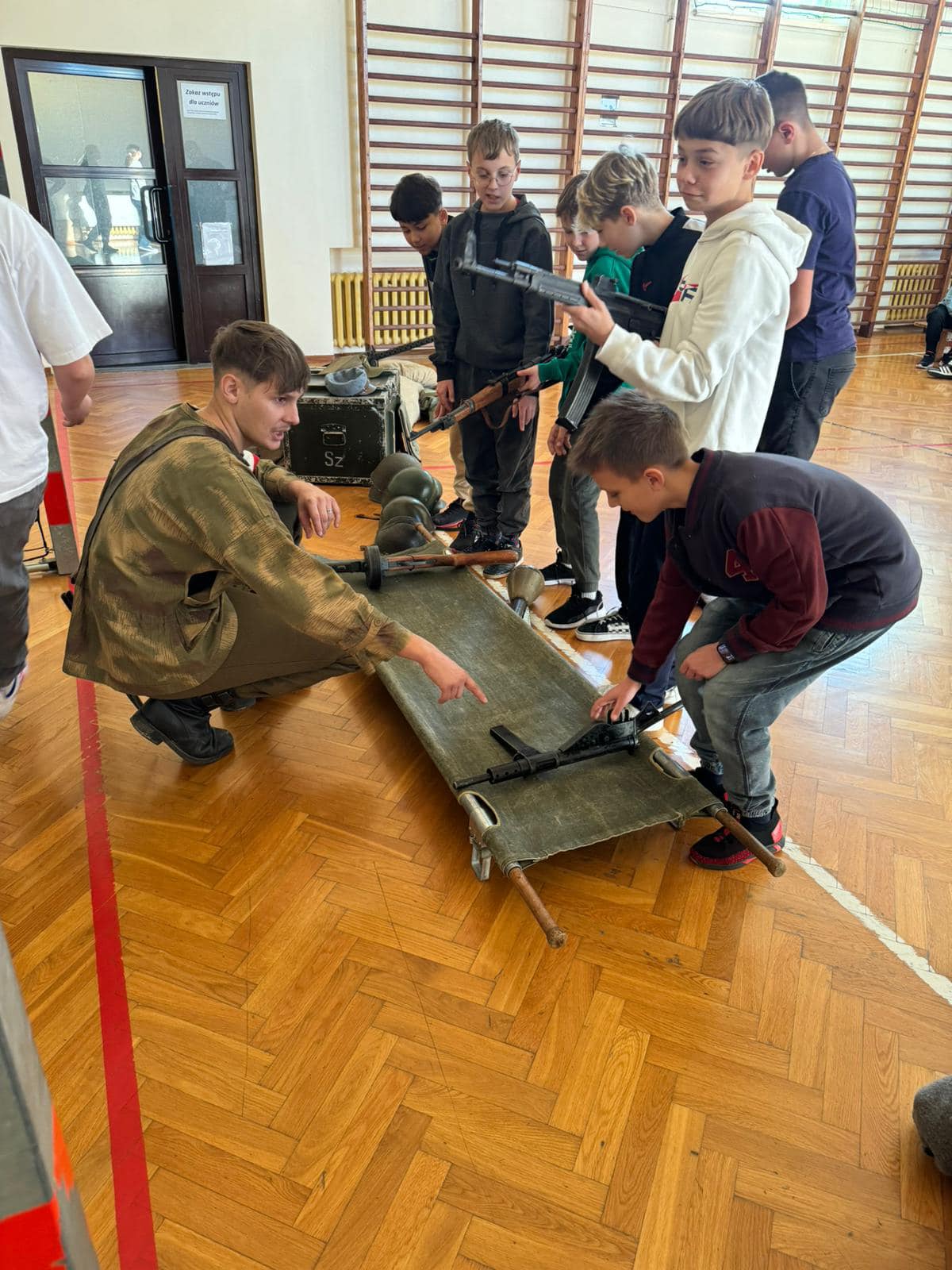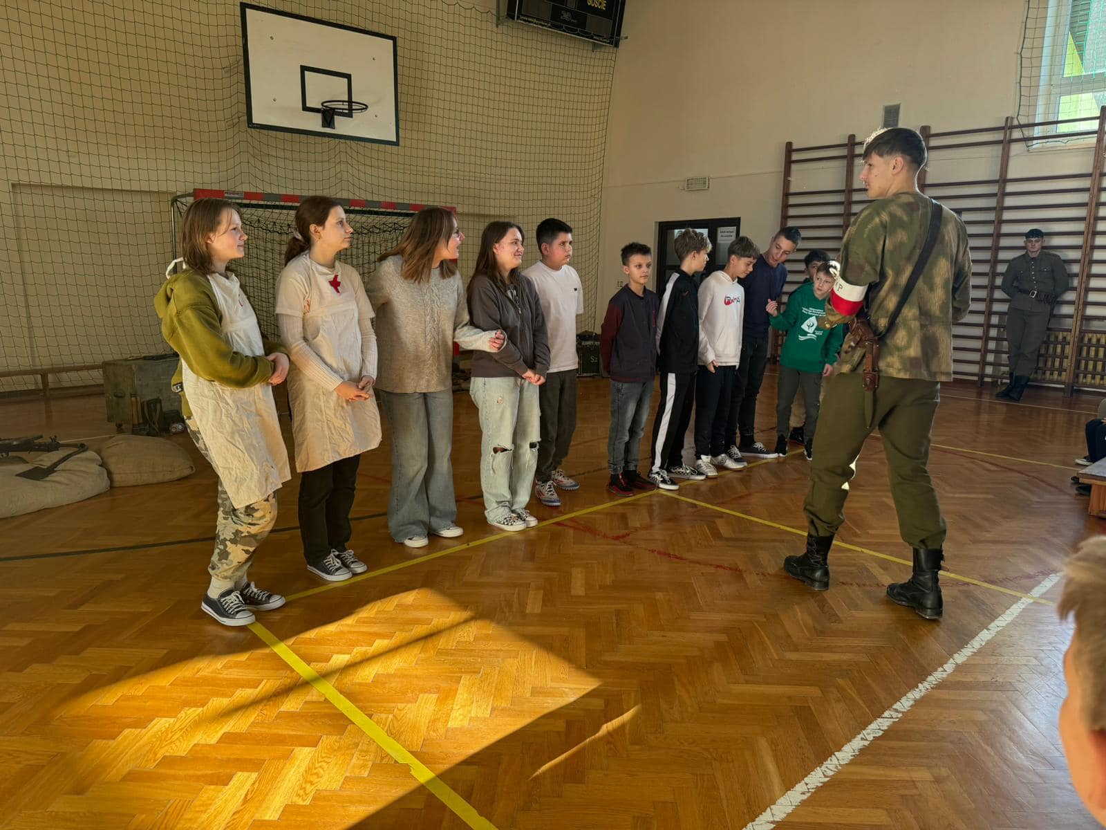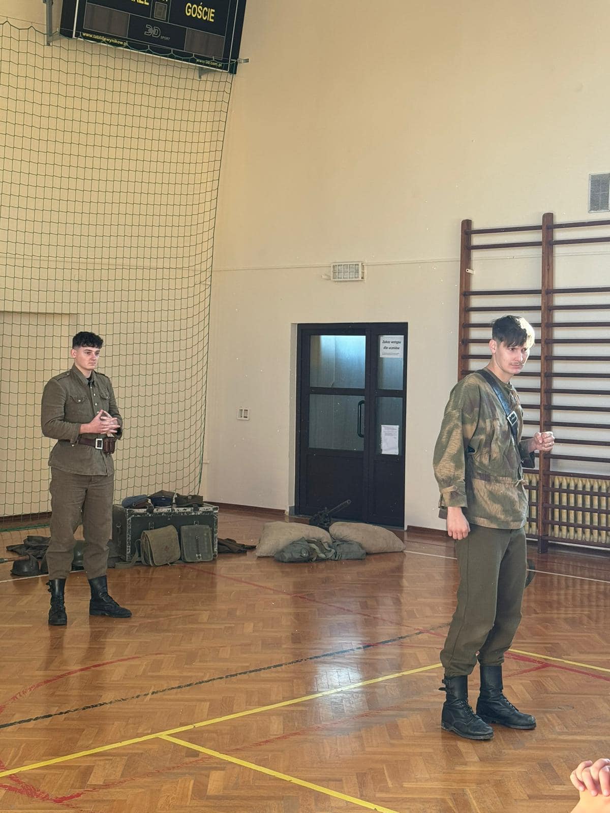 Dnia 3 grudnia 2024 r. uczniowie naszej szkoły uczestniczyli w nietypowej lekcji historii. Grupa rekonstrukcyjna „Rekonstrukto” z Lublina w ciekawy sposób przybliżyła młodzieży temat walki z niemieckim najeźdźcą w czasie II wojny światowej. Podczas pokazu ,,Powstanie ‘44. Bitwa o Polskę” można było nie tylko zyskać wiedzę historyczną, ale także wcielić się w role żołnierzy i sanitariuszek z okresu powstania warszawskiego. Dodatkową atrakcją okazała się możliwość obejrzenia z bliska replik broni, z której korzystali powstańcy. Uczniowie aktywnie zaangażowali się w pokaz. Z pewnością poznane wiadomości i doświadczenia zostaną im długo w pamięci.