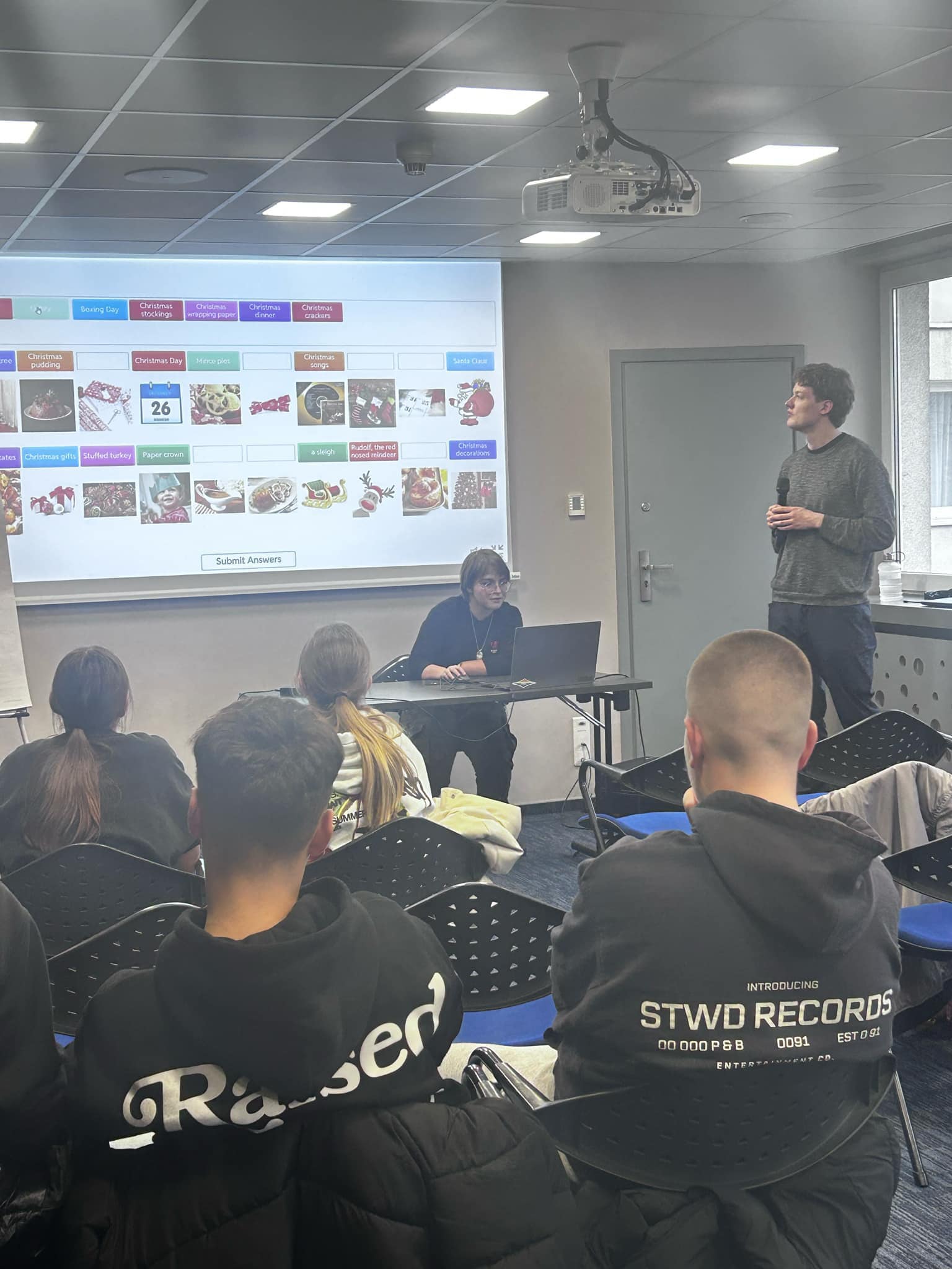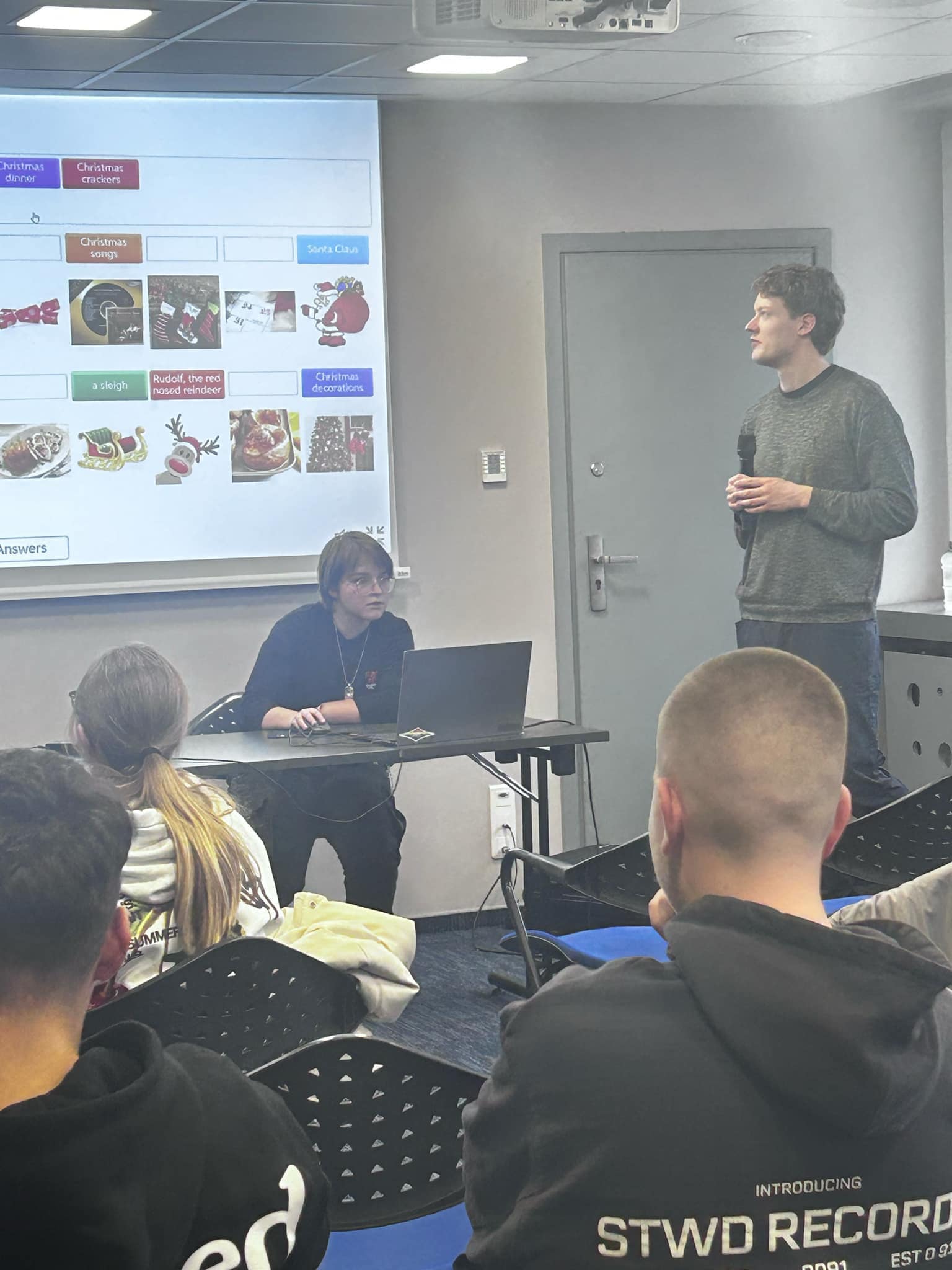 18 grudnia dwudziestoczteroosobowa grupa uczniów naszej szkoły z klas VI–VIII wzięła udział w dwugodzinnych warsztatach językowych w Krakowie. Zajęcia prowadzone były przez Anglików i dotyczyły historii oraz tradycji bożonarodzeniowych Wielkiej Brytanii. Uczniowie mieli okazję poszerzyć wiedzę, zdobyć nowe informacje, a przede wszystkim sprawdzić i rozwinąć swoje kompetencje językowe w zakresie rozumienia oraz posługiwania się językiem angielskim.