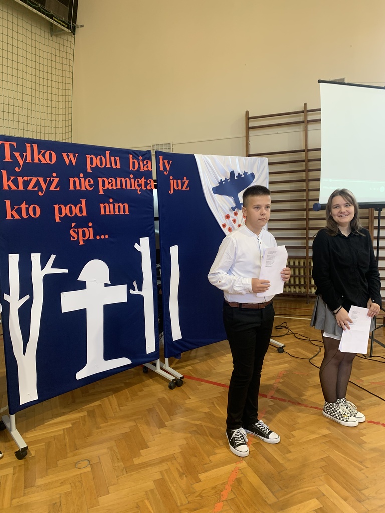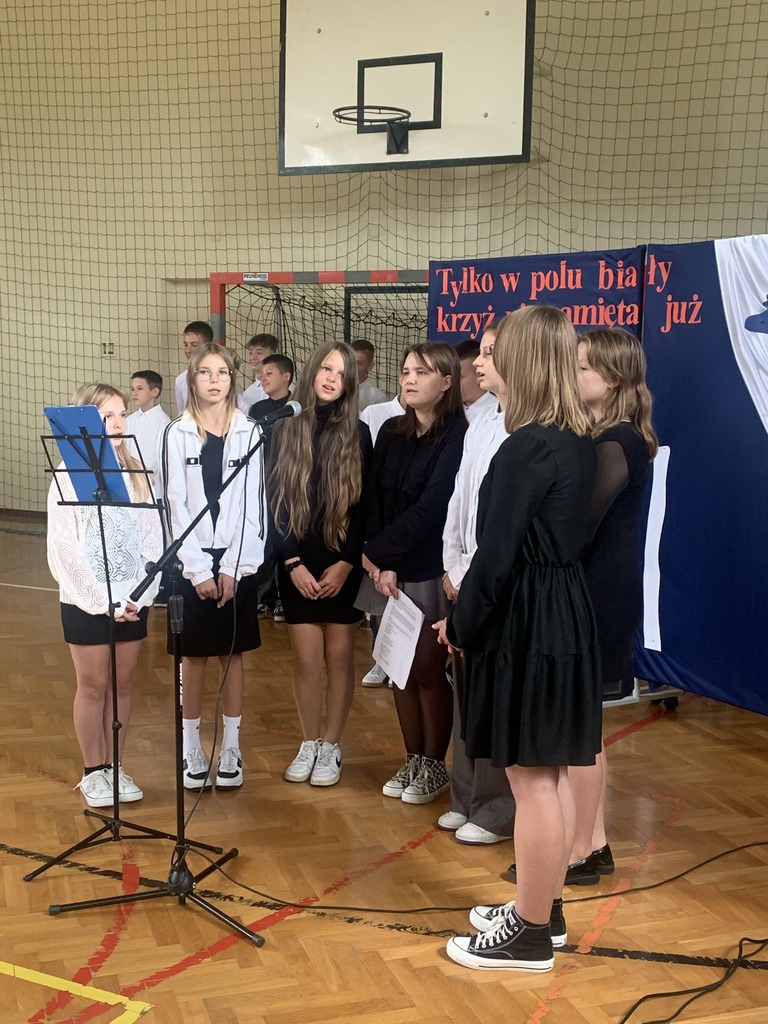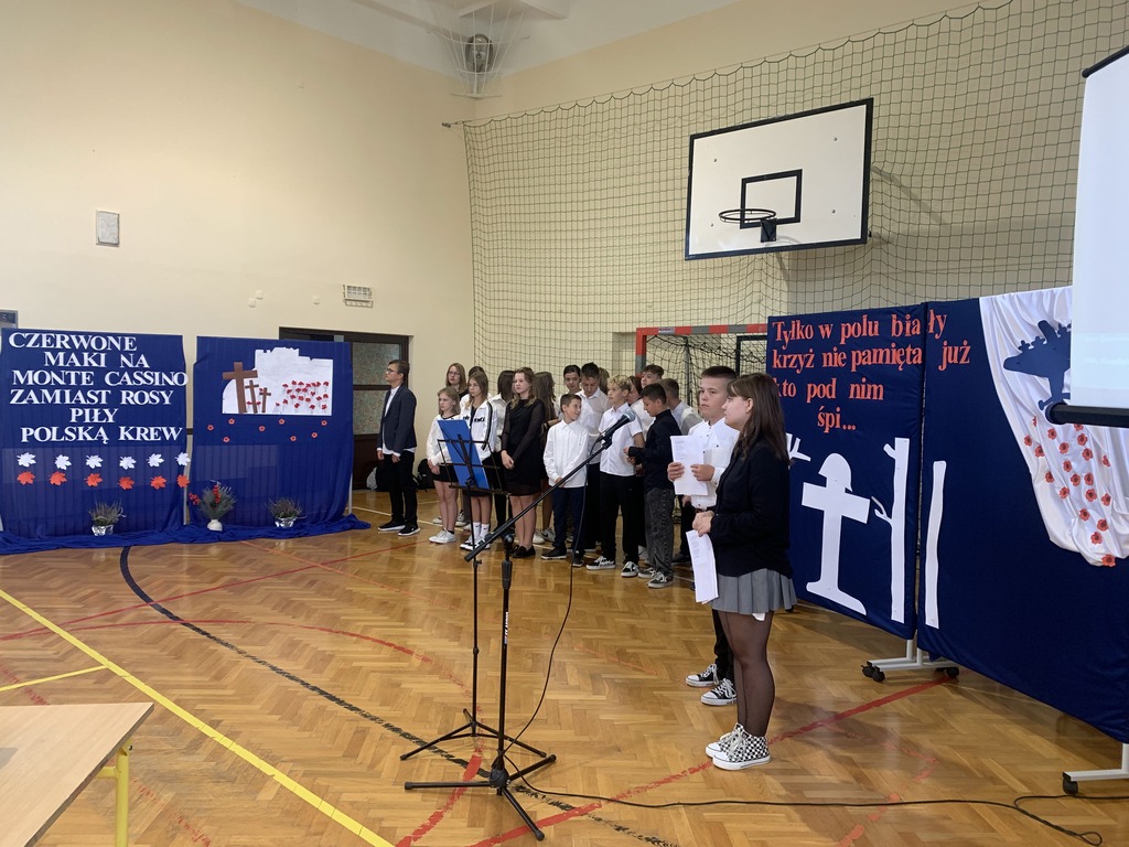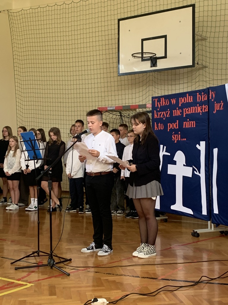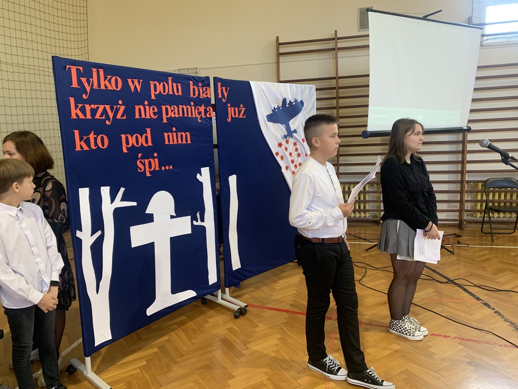 26 września 2024 r. w naszej szkole odbył się apel upamiętniający 85. rocznicę wybuchu II wojny światowej. Został on przygotowany przez uczniów klas VII i VIII, którzy przypomnieli najważniejsze wydarzenia związane z agresją hitlerowską i sowiecką na Polskę. Patriotyczne wiersze oraz pieśni odśpiewane przez nasze uczennice ukazywały tragizm września 1939 r. oraz bohaterską postawę obrońców ojczyzny.