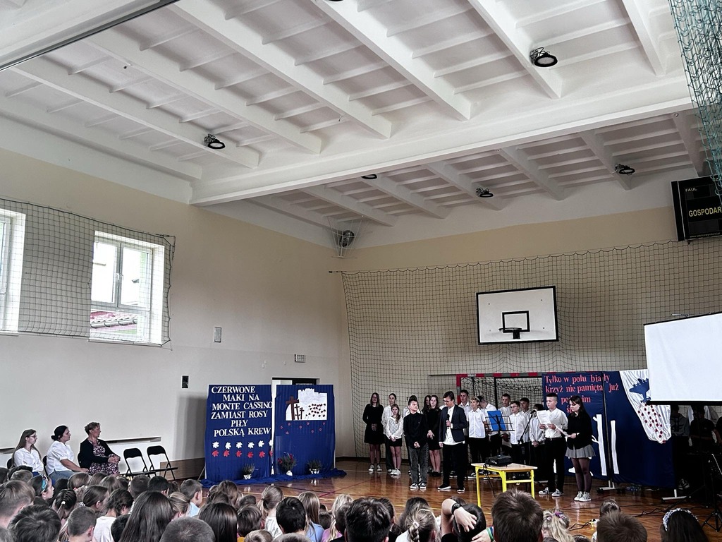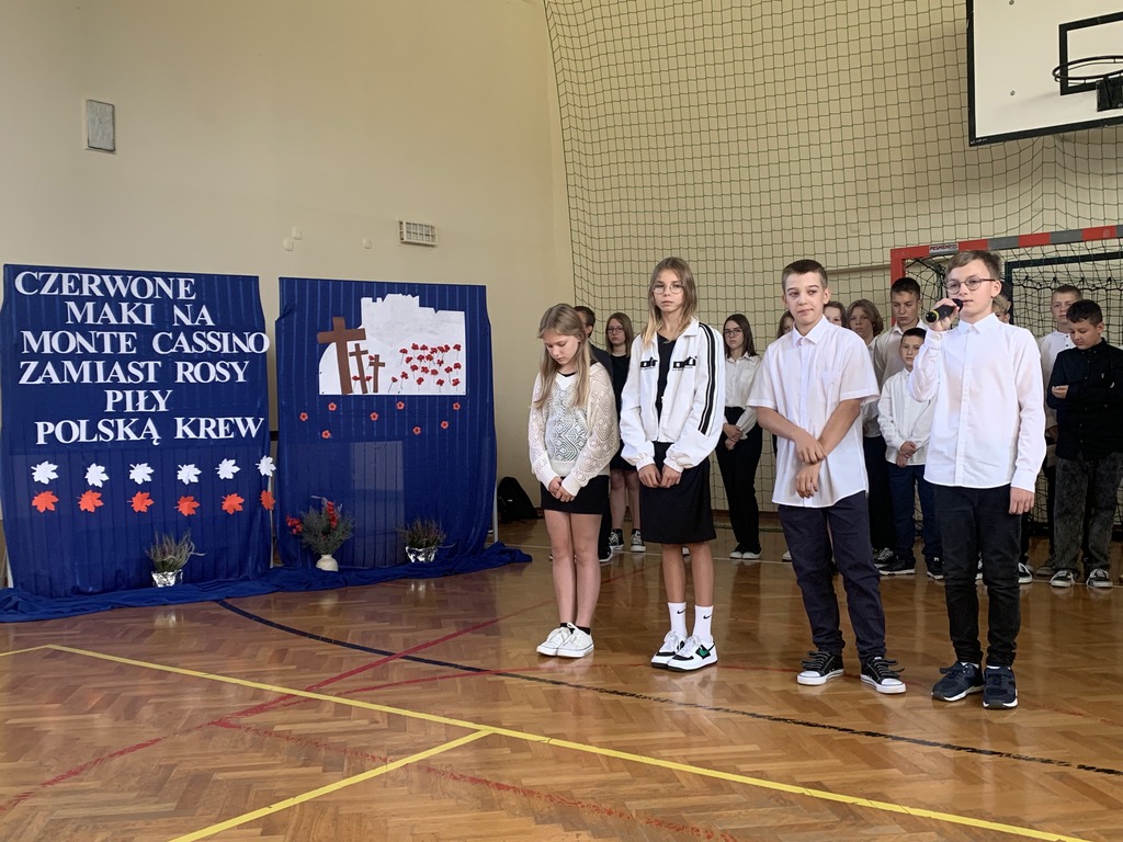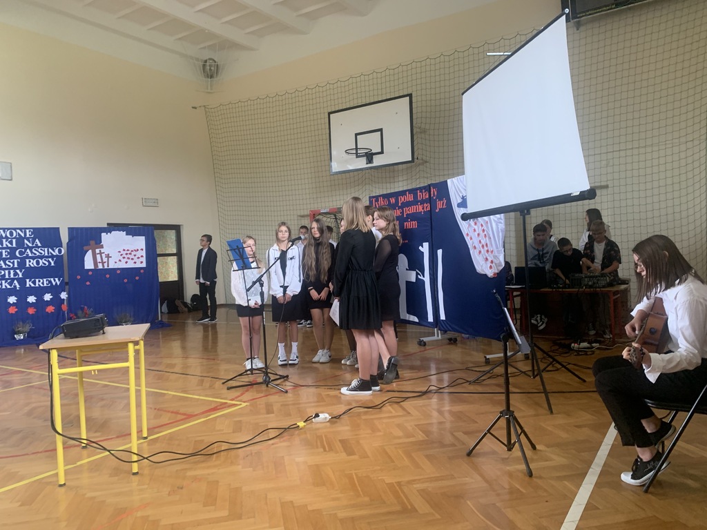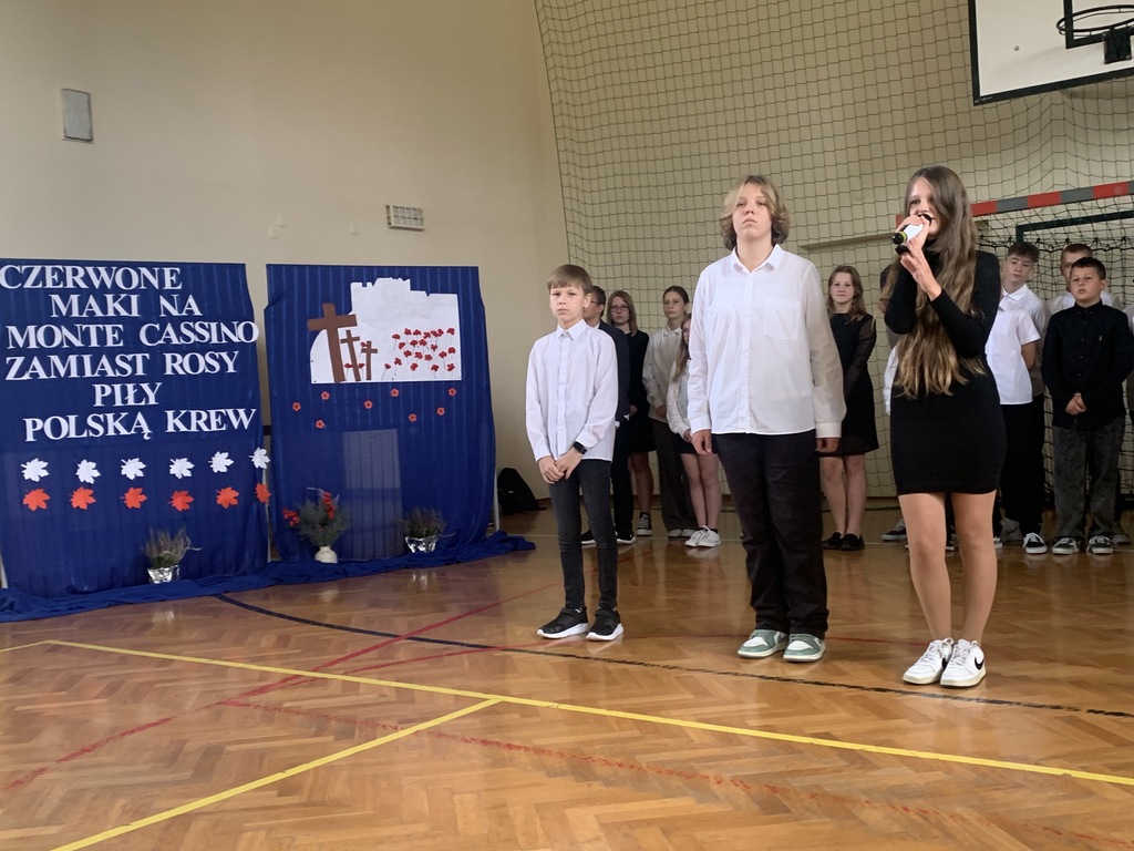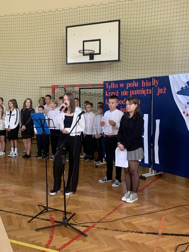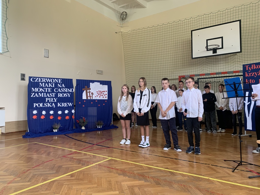 26 września 2024 r. w naszej szkole odbył się apel upamiętniający 85. rocznicę wybuchu II wojny światowej. Został on przygotowany przez uczniów klas VII i VIII, którzy przypomnieli najważniejsze wydarzenia związane z agresją hitlerowską i sowiecką na Polskę. Patriotyczne wiersze oraz pieśni odśpiewane przez nasze uczennice ukazywały tragizm września 1939 r. oraz bohaterską postawę obrońców ojczyzny.