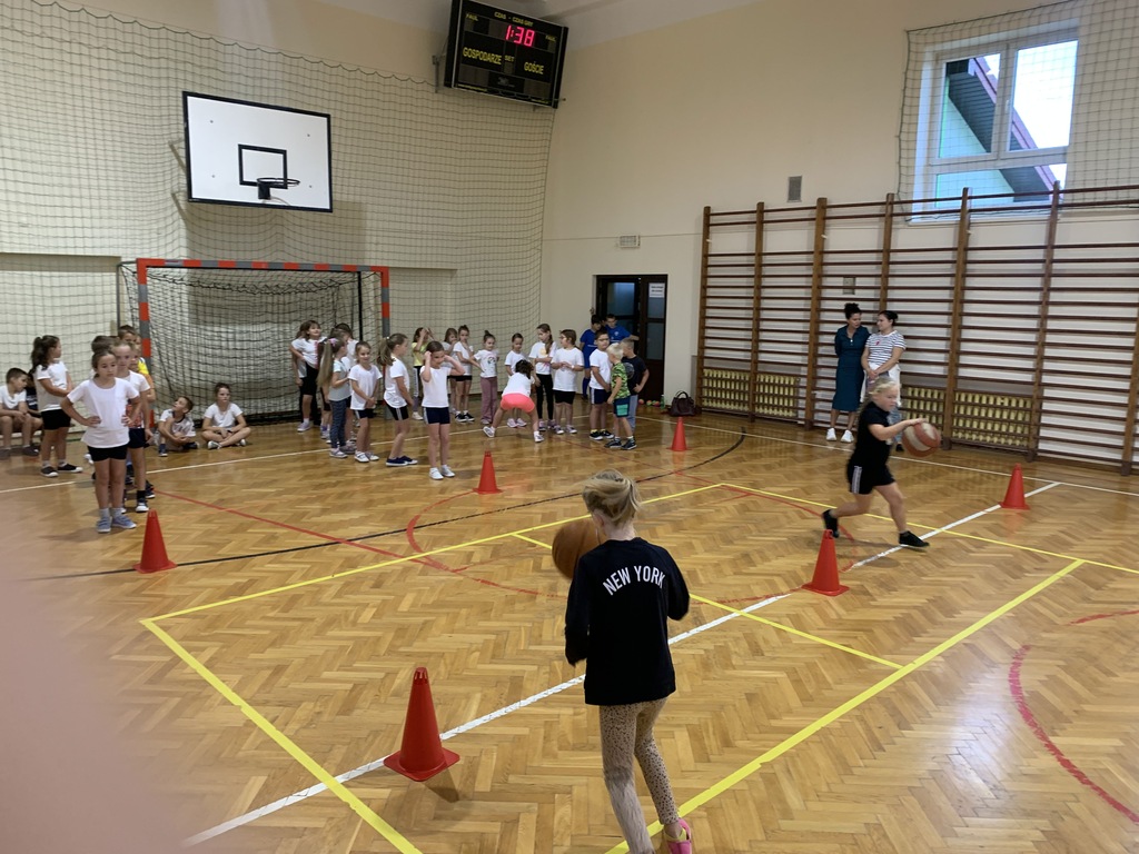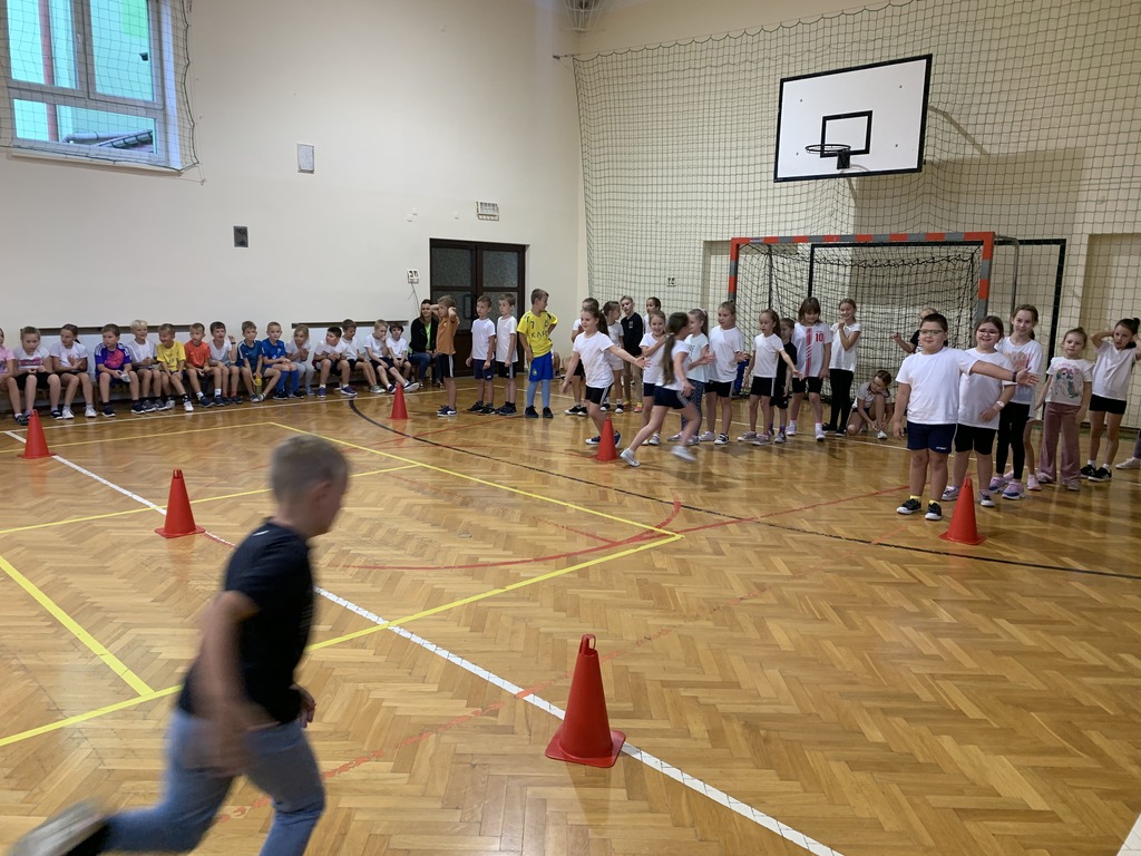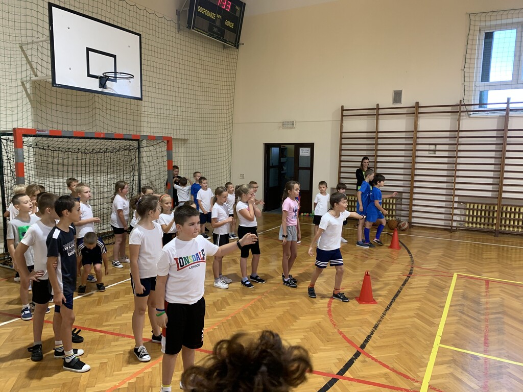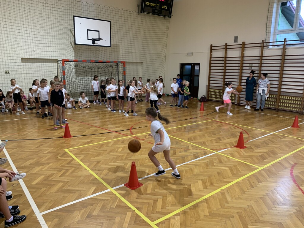 Dzieci z klas młodszych rywalizowały w kozłowaniu piłki między pachołkami, biegach z omijaniem przeszkód oraz prowadzeniu piłki kijem do unihokeja. Ponadto uczniowie doskonalili koordynację wzrokowo-ruchową grając w badmintona, łapiąc piłeczki do koszyczków, kręcąc hula-hopem oraz grając w „zbijanego”. Ćwiczyli również odbicia piłki sposobem górnym oraz rzuty do kosza.