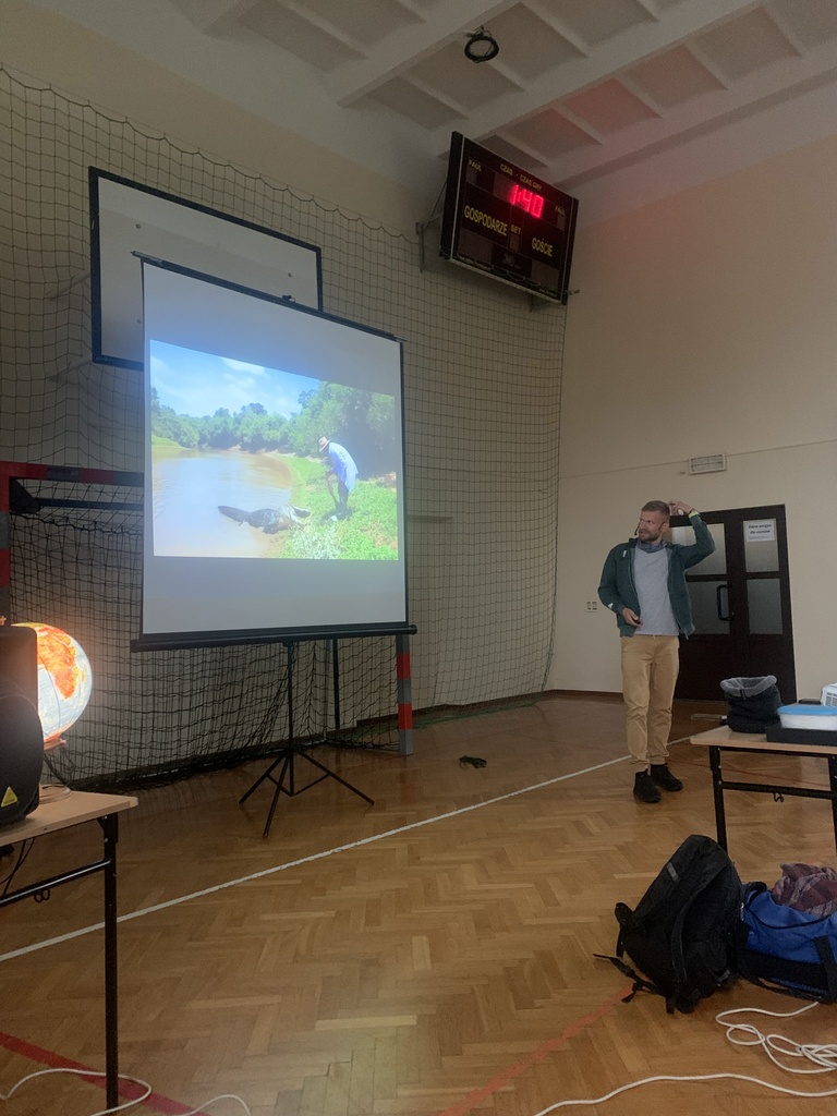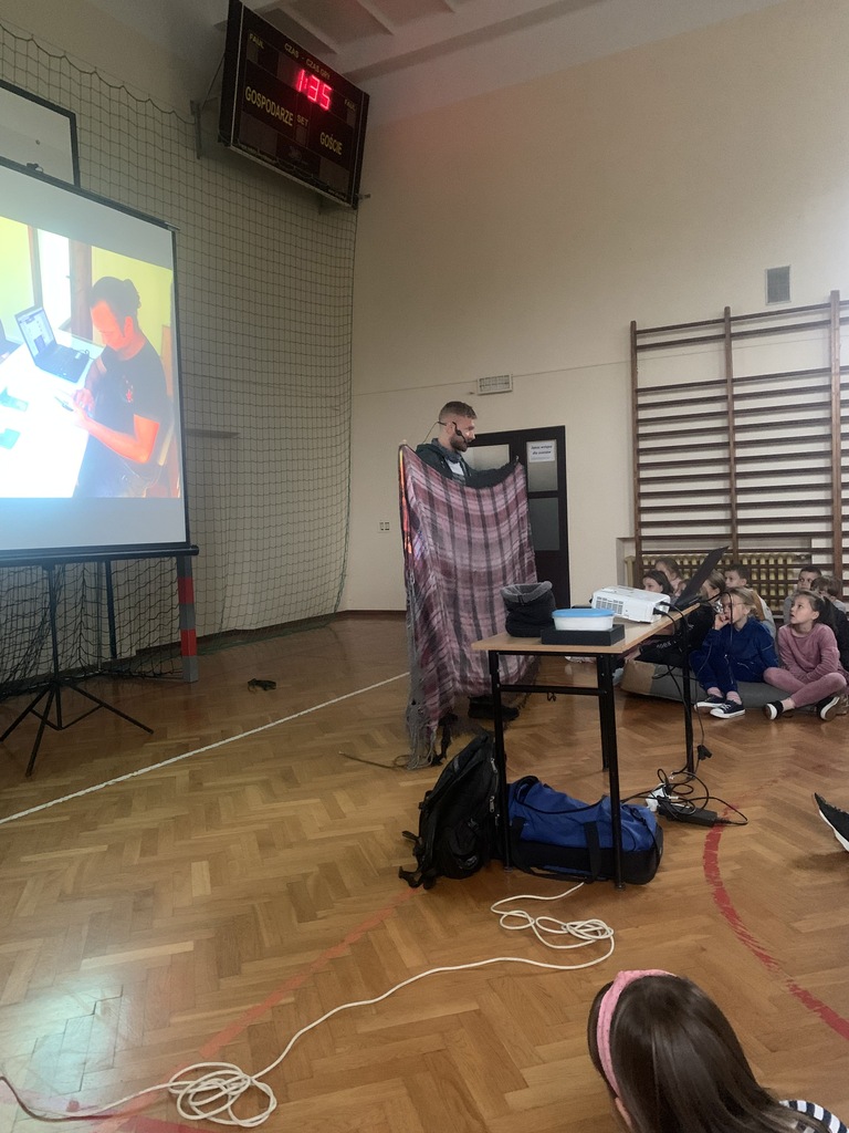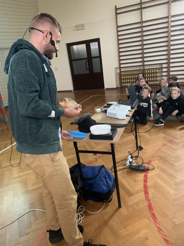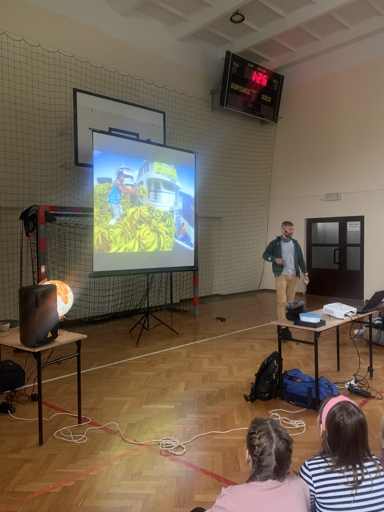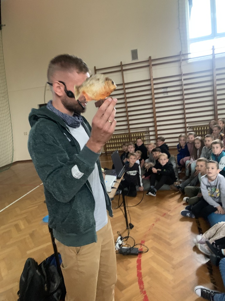W piątek, 4 października, dzieci miały okazję posłuchać fascynujących opowieści o Amazonii. W naszej szkole gościł podróżnik z grupy "Trzask", który dzielił się własnymi doświadczeniami z pobytu w brazylijskiej dżungli. Opowiadał uczniom o życiu Indian, przedstawiał zdjęcia żyjących tam fascynujących zwierząt, a na koniec zademonstrował kilka rekwizytów, które przywiózł ze swojej dalekiej wyprawy. Dzieci słuchały z wielkim zainteresowaniem.