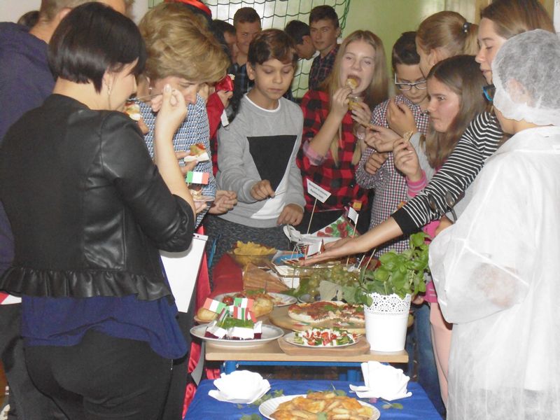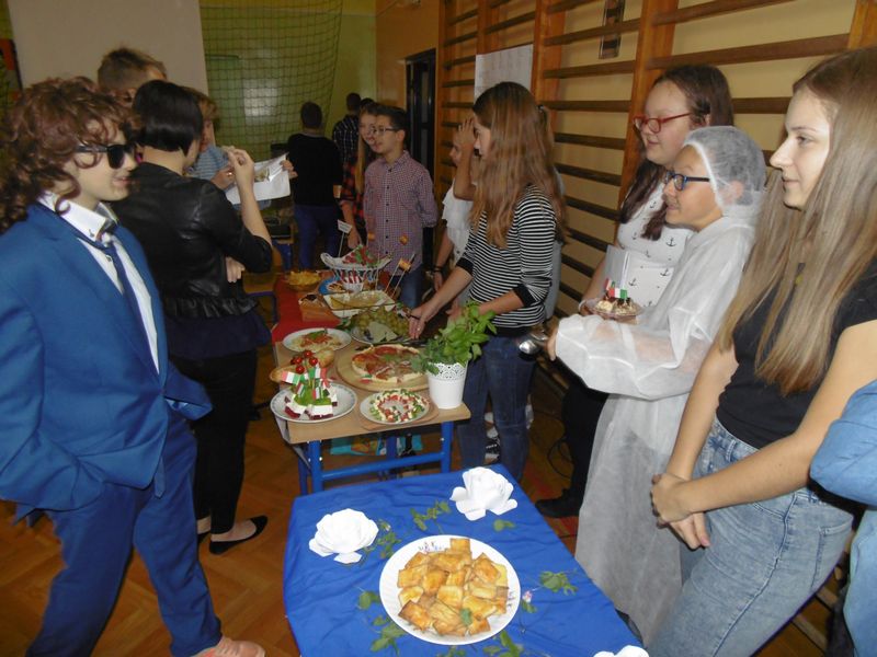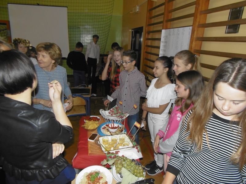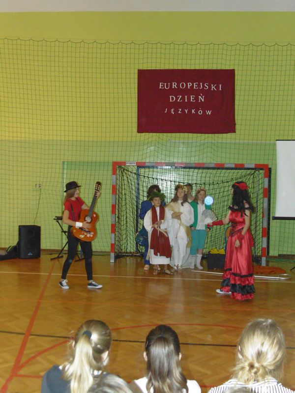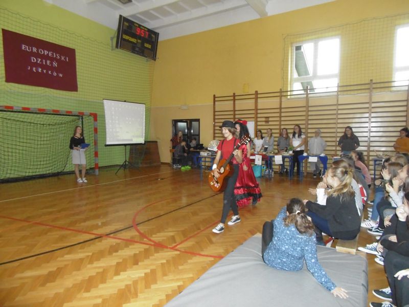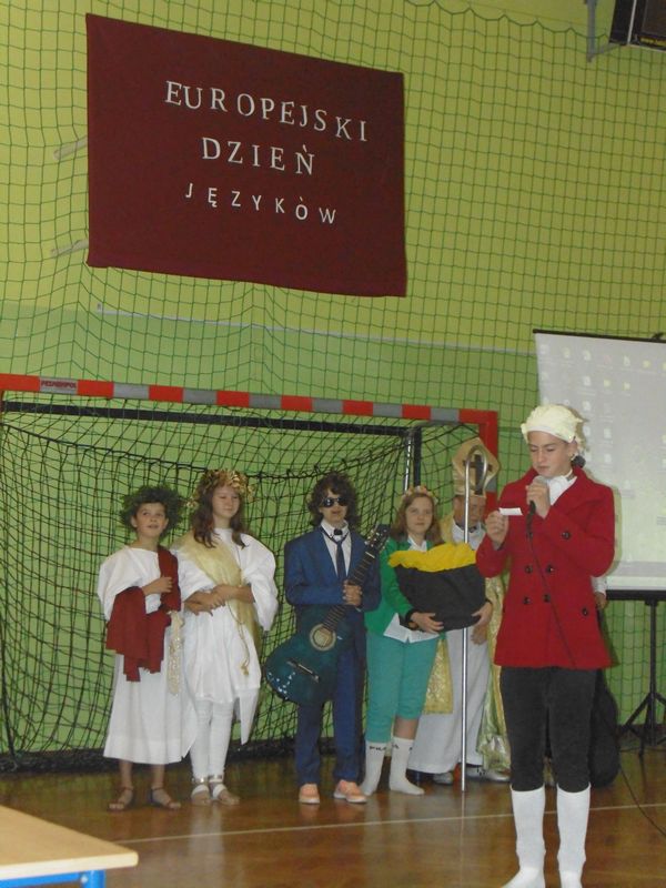 26.09.2017 r. w naszej szkole odbyły się obchody Europejskiego Dnia Języków. Święto to ma na celu podkreślenie roli języków obcych w codziennym życiu oraz włączenie całej społeczności w życie szkoły. Z tej okazji klasy VII, II i III gimnazjum przygotowały wystrój swoich sal lekcyjnych, prezentację na temat wybranego kraju, strój narodowy i regionalne potrawy. Dodatkową atrakcją był występ europejskich „gwiazd” przygotowany przez młodzież.