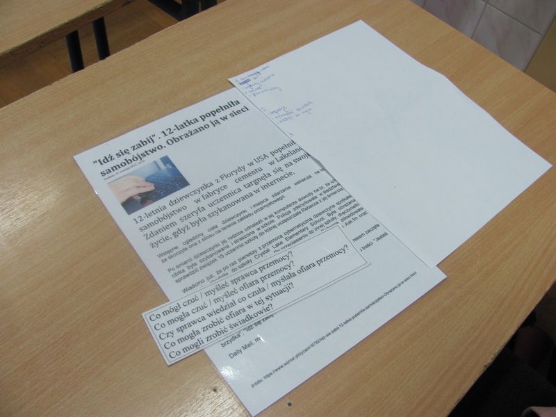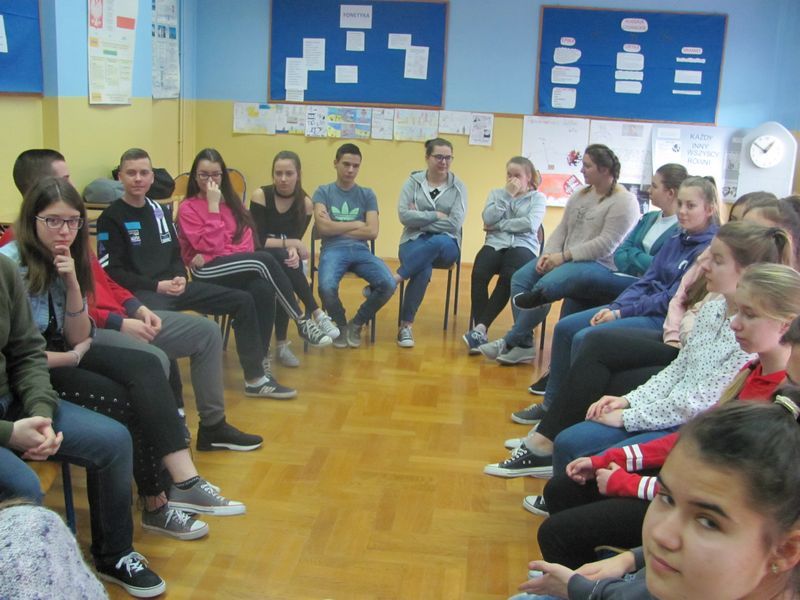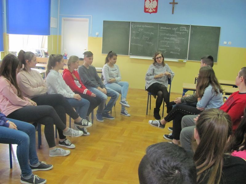 Uczniowie III klasy gimnazjalnej wzięli udział w warsztatach zorganizowanych przez Ośrodek Interwencji Kryzysowej przy Powiatowym Centrum Pomocy Rodzinie w Brzesku w ramach projektu profilaktycznego „CyberBEZPIECZNI”. Pani Marta Knapińska prowadziła z młodzieżą zajęcia na temat bezpiecznego korzystania z Internetu i technologii komunikacyjnych pod kątem przeciwdziałania zjawiskom cyberprzemocy i cyberuzależnienia.