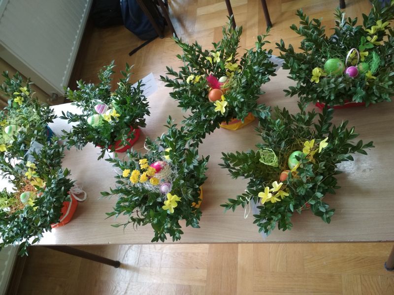 Przed Świętami Wielkanocnymi członkowie Szkolnego Koła Caritas wykonali stroiki dla osób samotnych w parafii, odwiedzili ich w domach oraz złożyli świąteczne życzenia.