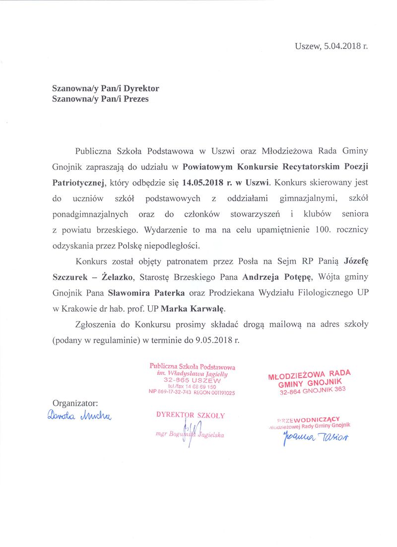 Powiatowy konkurs recytatorski poezji patriotycznej