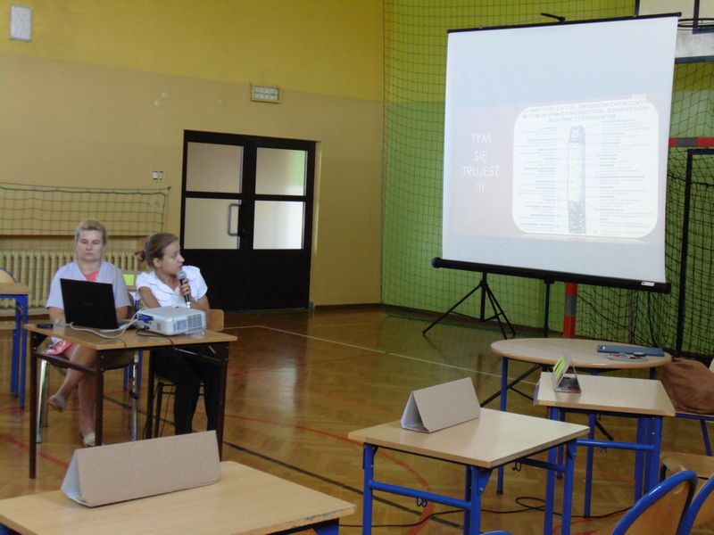 31 maja przypada Światowy Dzień bez Papierosa. W związku z tym wydarzeniem w naszej szkole odbyła się prelekcja nt. szkodliwości palenia papierosów. Specjalnym gościem spotkania była Pani Anna Jagusińska z Państwowego Powiatowego Inspektoratu Sanitarnego w Brzesku, która w bardzo przystępny i ciekawy sposób przypomniała, jakie zagrożenia niesie ze sobą palenie papierosów. Zwróciła uwagę, jak szkodliwy jest to nałóg zwłaszcza dla młodych ludzi, którzy sięgają po tę używkę. Podsumowaniem spotkania był konkurs wiedzy „Jeden z dziesięciu” przygotowany przez Pana Piotra Rzepę. Uczniowie z poszczególnych klas zmagali się z pytaniami dotyczącymi zdrowego stylu życia i szkodliwości wszelkich używek. Najlepiej poradziły sobie uczennice klasy III gimnazjum.