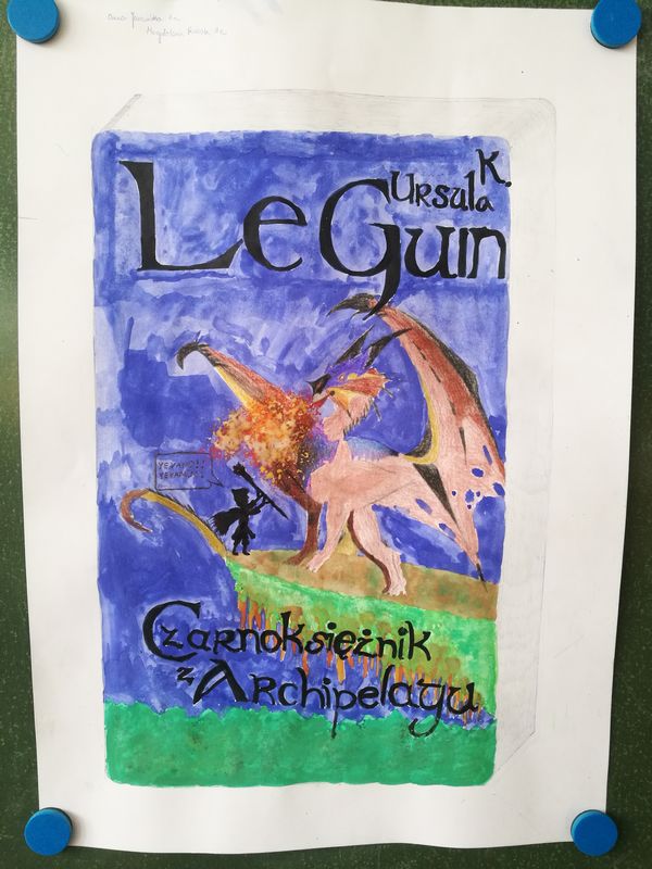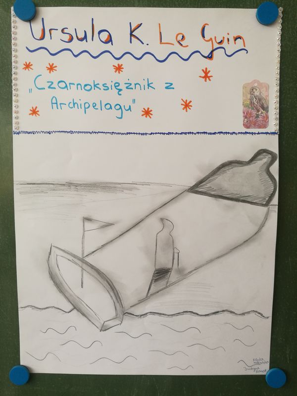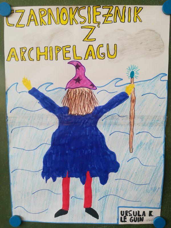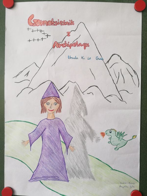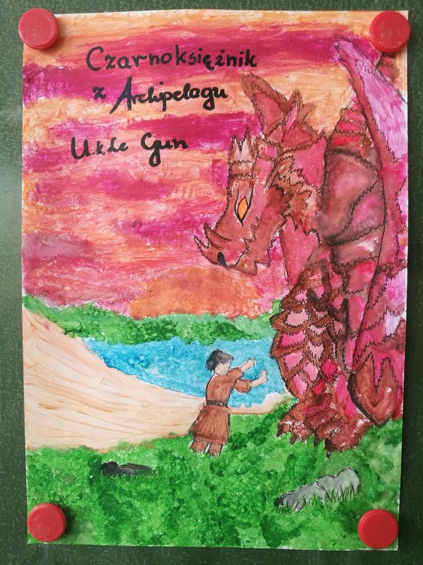 W ramach innowacji I ty możesz zostać aktorem uczniowie klasy IIa przygotowali kartę tytułową lektury „Czarnoksiężnik z Archipelagu”. Młodzież swoje przemyślenia dotyczące lektury przedstawiła w formie plastycznej. Prace zostały wykonane różnymi technikami.