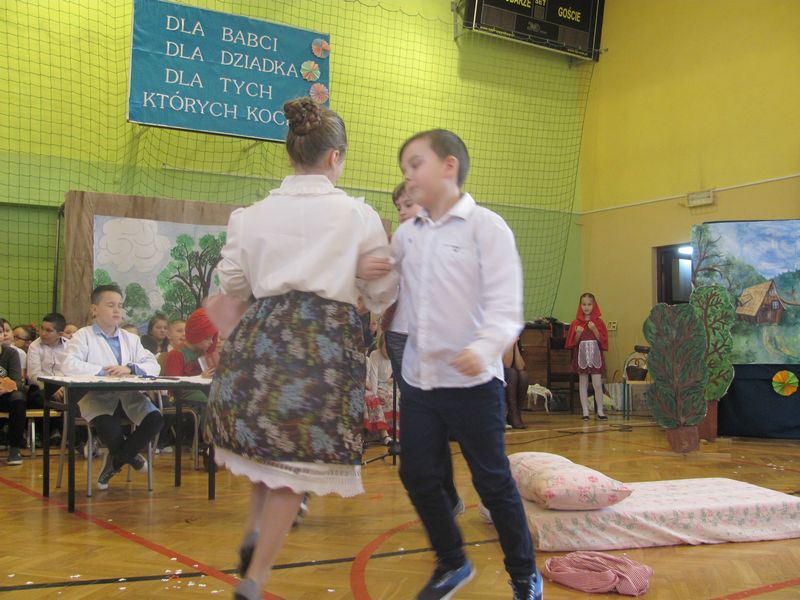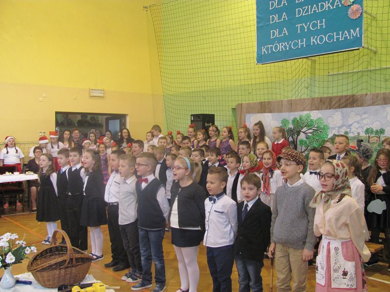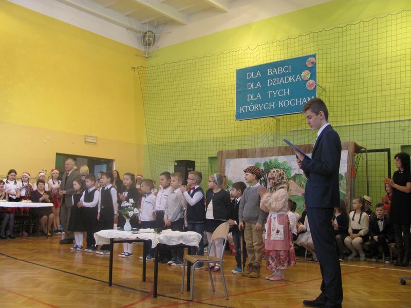 Dla wszystkich babć i dziadków to najważniejsze święto w roku. Choć przed chwilą minęły święta, to najwięcej miłości i prezentów babunie i dziadkowie otrzymują w dzień swojego święta. Uczniowie naszej szkoły jak co roku postanowili pokazać swoim najbliższym jak bardzo ich kochają. W dniu 23 stycznia 2018 r. dzieci z klas I – III przygotowały bogaty program artystyczny, który z radością został obejrzany przez licznie przybyłych babcie oraz dziadków . Uroczystość uświetnili swoją obecnością również przedstawiciele gminy, na czele z wójtem Sławomirem Paterkiem, kierownikiem Referatu Oświaty Andrzejem Stańczykiem, przewodniczącym Rady Gminy Januszem Zychem, sołtysami Uszwi i Zawady Uszewskiej oraz radnymi. Dzieci recytowały wiersze o swoich ukochanych babciach i dziadkach, składały im życzenia , a także śpiewały piosenki. Nie zabrakło również humorystycznych skeczy. Klasa III b z kolei przygotowała bajkę o „ Czerwonym Kapturku”, którego bohaterką jest bardzo przedsiębiorcza babcia. Wszyscy goście mogli również podziwiać taneczne talenty naszych uczniów, zarówno tych z klas młodszych jak i występy cheerleaderek z klas starszych. Na uroczystości gościnnie wystąpili także działający przy Świetlicy Wiejskiej , Mali Kolędnicy znad Uszwicy, którzy zaprezentowali wspaniały, świąteczny program artystyczny, nagrodzony gromkimi brawami. Babcie i dziadkowie świetnie się bawili podczas udziału w specjalnie dla nich przygotowanych konkursach. Na koniec wnukowie wręczyli im własnoręcznie przygotowne upominki oraz odśpiewali gromkie STO LAT.