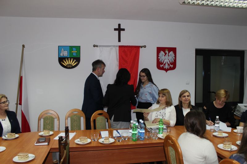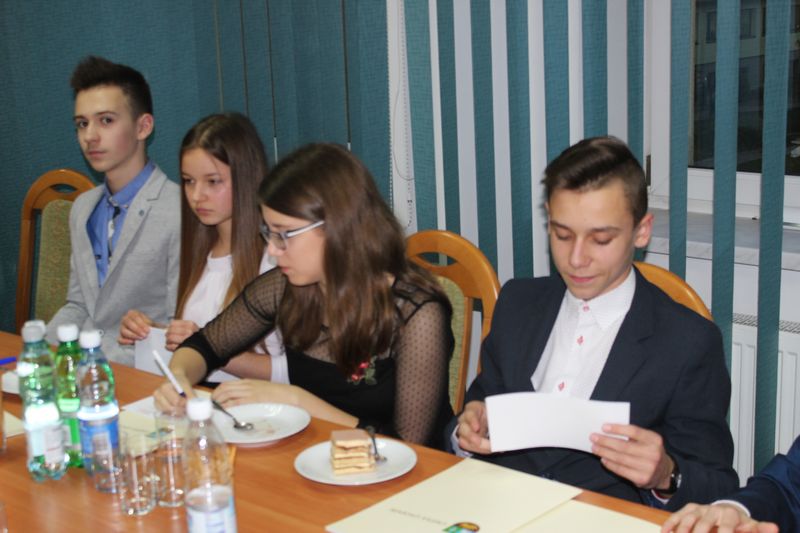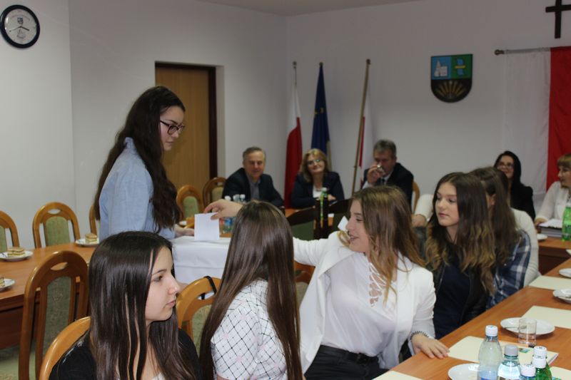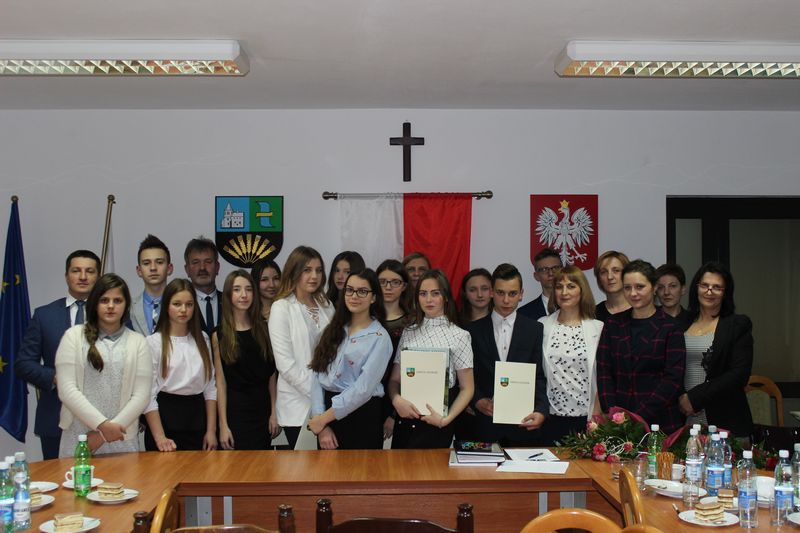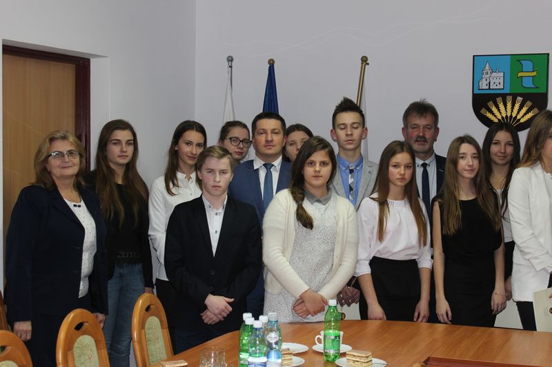 W piątek 1 grudnia odbyła się pierwsza sesja Młodzieżowej Rady Gminy Gnojnik. Uczestniczyli w niej wójt Gnojnika Pan Sławomir Paterek, sekretarz gminy Pani Anna Rachwalik, przewodniczący Rady Gminy Pan Janusz Zych oraz wiceprzewodnicząca Pani Danuta Sacha, która poprowadziła zebranie. Na spotkanie przybyli radni I kadencji, którzy otrzymali podziękowania za swoją pracę. Młodzież, która dopiero rozpoczyna przygodę z Młodzieżową Radą Gminy Gnojnik, złożyła ślubowanie i otrzymała zaświadczenia. Potem odbyły się wybory przewodniczącego, wiceprzewodniczącego oraz sekretarza MRG. Przewodniczącą została uczennica naszej szkoły Joanna Tasior, wiceprzewodniczącą Kinga Rams – również uczęszczająca do szkoły w Uszwi. Obu uczennicom gratulujemy!