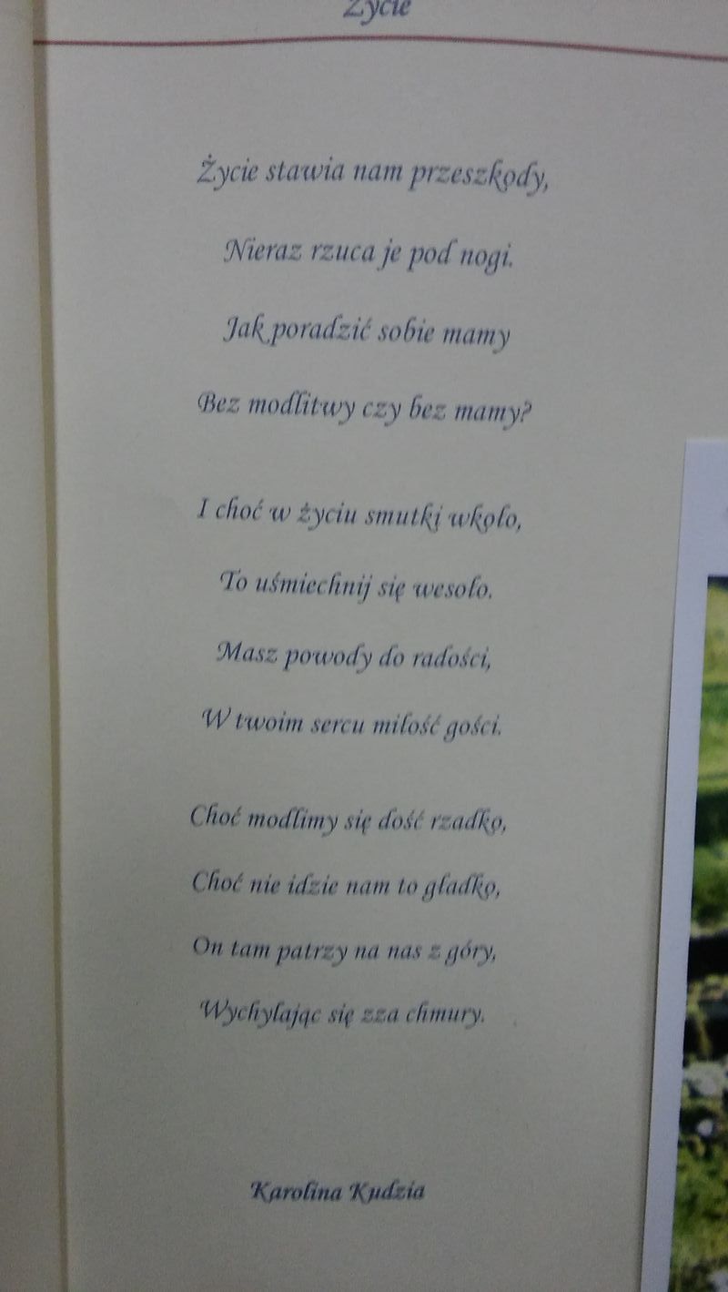 W Iwkowej Odbył się XII Konkurs Poetycko – Fotograficzny Moje myśli, moje uczucia, moje życie... Zadaniem uczestników konkursu było napisanie wiersza na dowolny temat i wykonanie fotografii nawiązującej do treści wiersza. Prace wykonały Anna Rzońca, Alicja Hosaniak oraz Karolina Kudzia. Jury w składzie: Marek Karwala (prorektor wydziału filologicznego UP w Krakowie), Adam Bujak (wybitny polski fotografik), Ryszard Ostrowski (wizytator Kuratorium Oświaty w Krakowie) oraz Bogusław Kamiński (wójt Iwkowej) dokonało oceny wszystkich prac. Wśród laureatów znalazła się Karolina Kudzia, która uzyskała wyróżnienie w dwóch kategoriach: Interesujące zdjęcie oraz Wyjątkowy wiersz. Poziom konkursu był wysoki, więc tym bardziej gratulujemy Karolinie sukcesu.