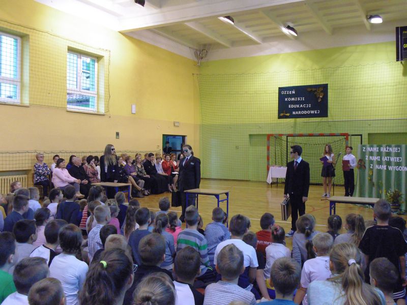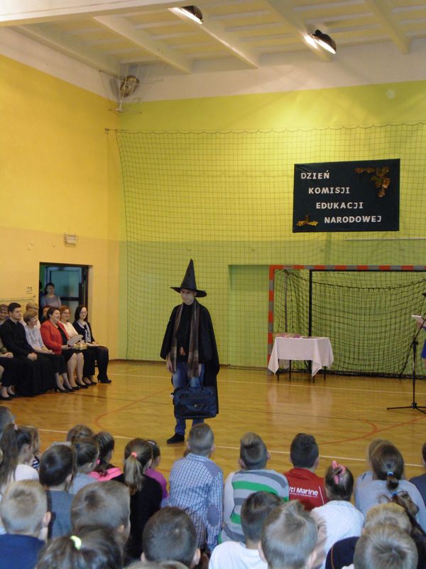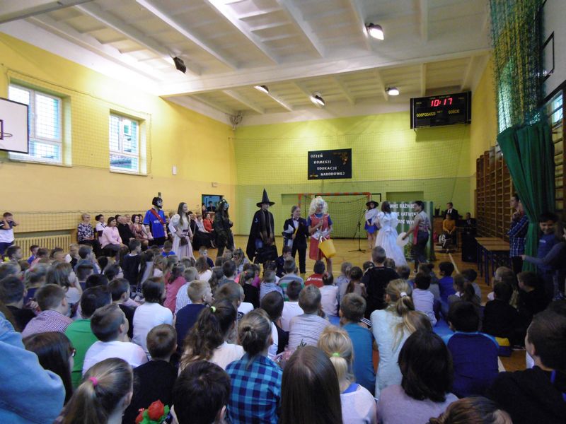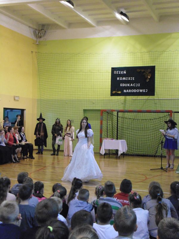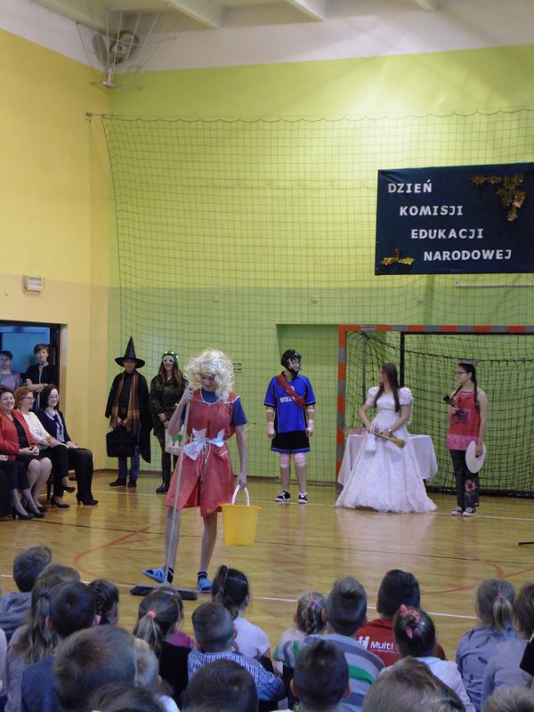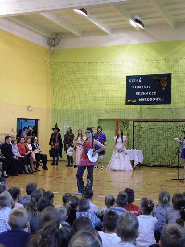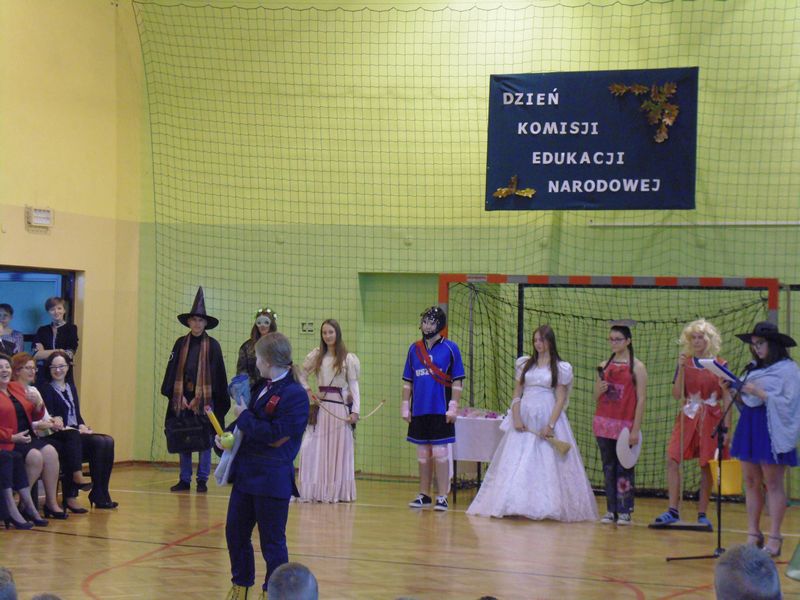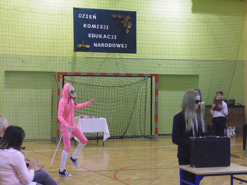 13 października obchodziliśmy Dzień Edukacji Narodowej. Okolicznościową część artystyczną przygotowali uczniowie klasy III gimnazjum i klasy VII a, którzy w humorystyczny sposób zaprezentowali najnowsze trendy mody nauczycielskiej. Mieliśmy okazję zobaczyć propozycje strojów dla nauczycieli: matematyki, języka polskiego, historii, biologii, zajęć artystycznych, wychowania fizycznego oraz dla dyrektora.