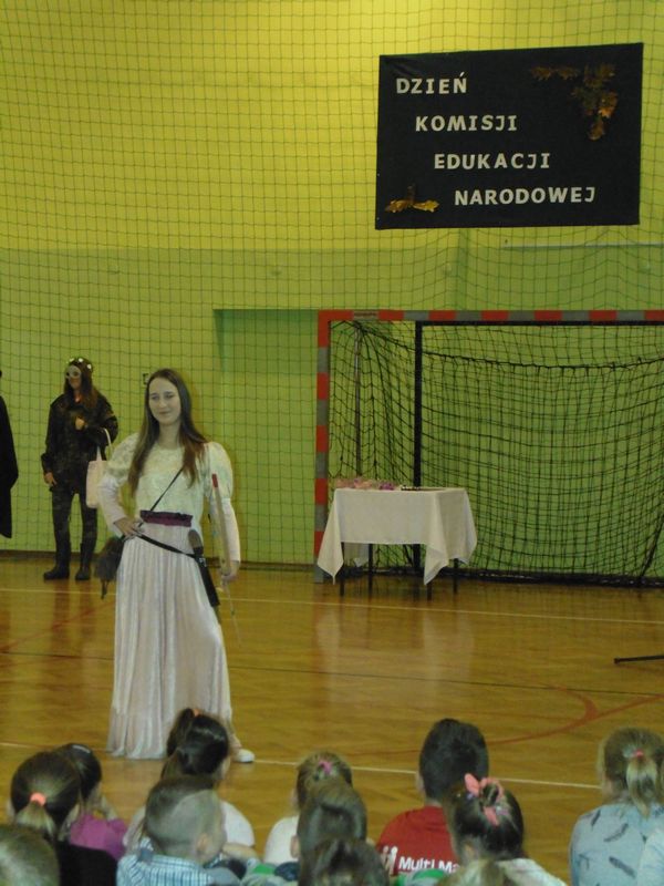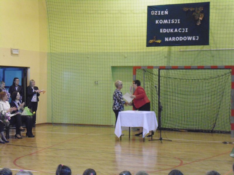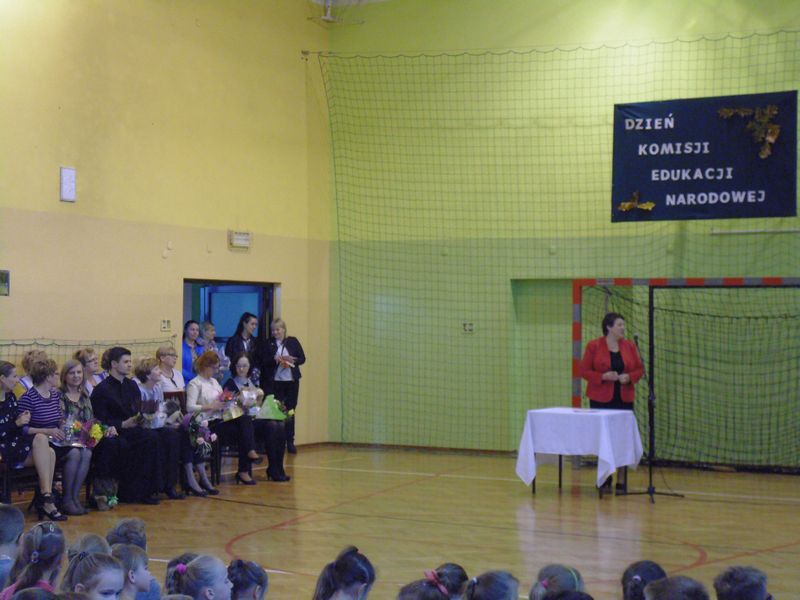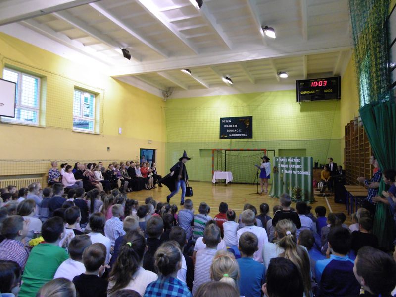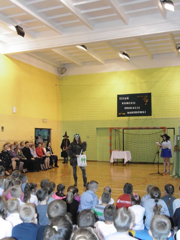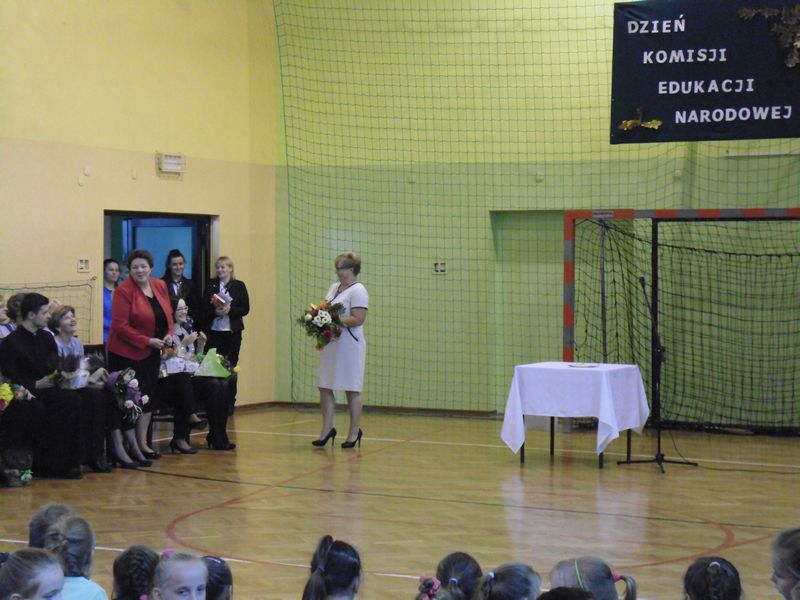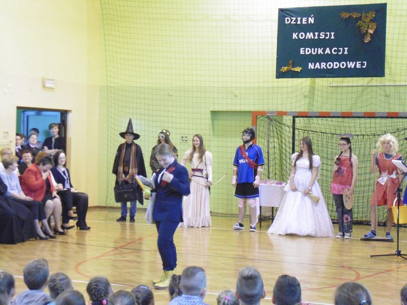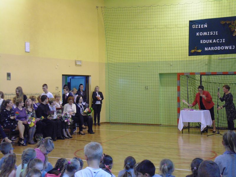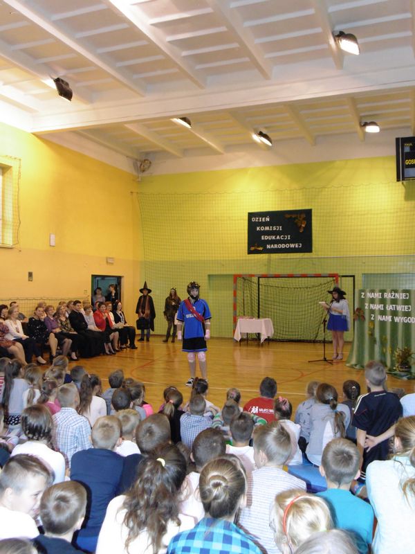 13 października obchodziliśmy Dzień Edukacji Narodowej. Okolicznościową część artystyczną przygotowali uczniowie klasy III gimnazjum i klasy VII a, którzy w humorystyczny sposób zaprezentowali najnowsze trendy mody nauczycielskiej. Mieliśmy okazję zobaczyć propozycje strojów dla nauczycieli: matematyki, języka polskiego, historii, biologii, zajęć artystycznych, wychowania fizycznego oraz dla dyrektora.