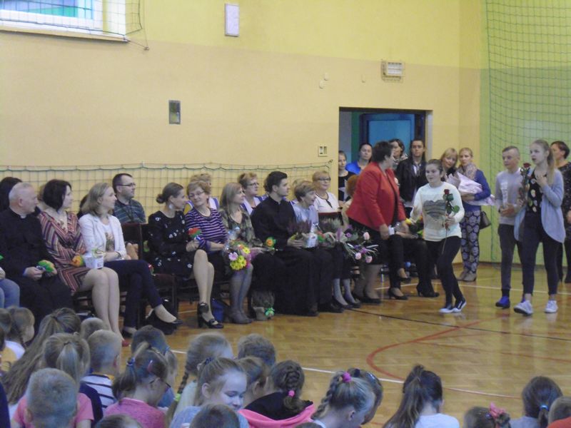Po występie przyszedł czas na wyrazy wdzięczności i życzenia dla wszystkich pracowników szkoły od uczniów a także przewodniczącej Rady Rodziców Pani Zofii Kleckiej.